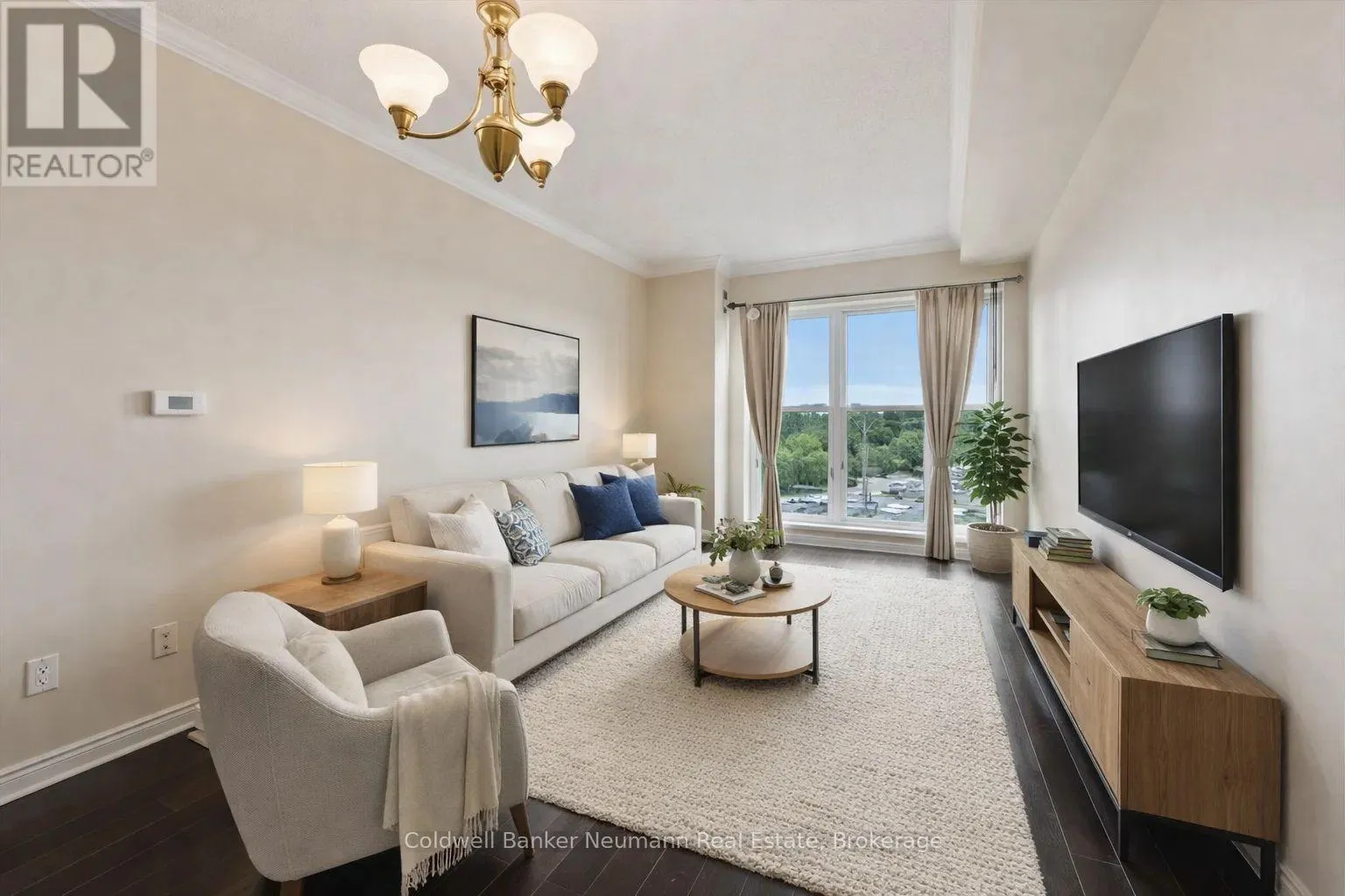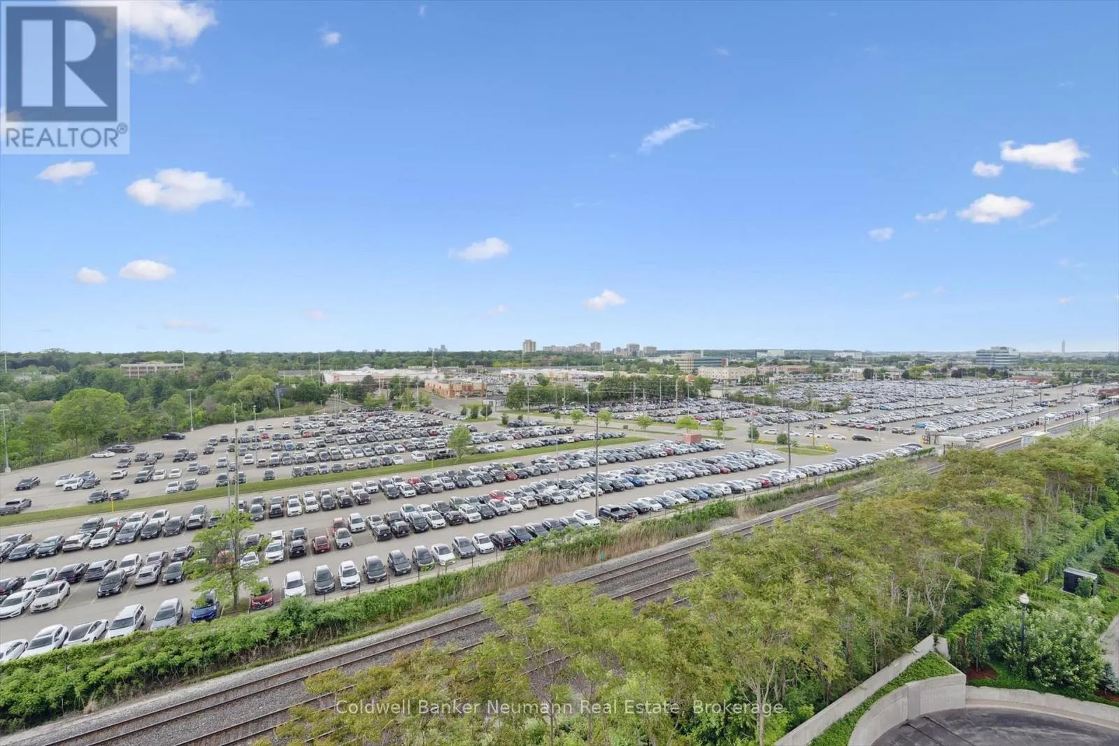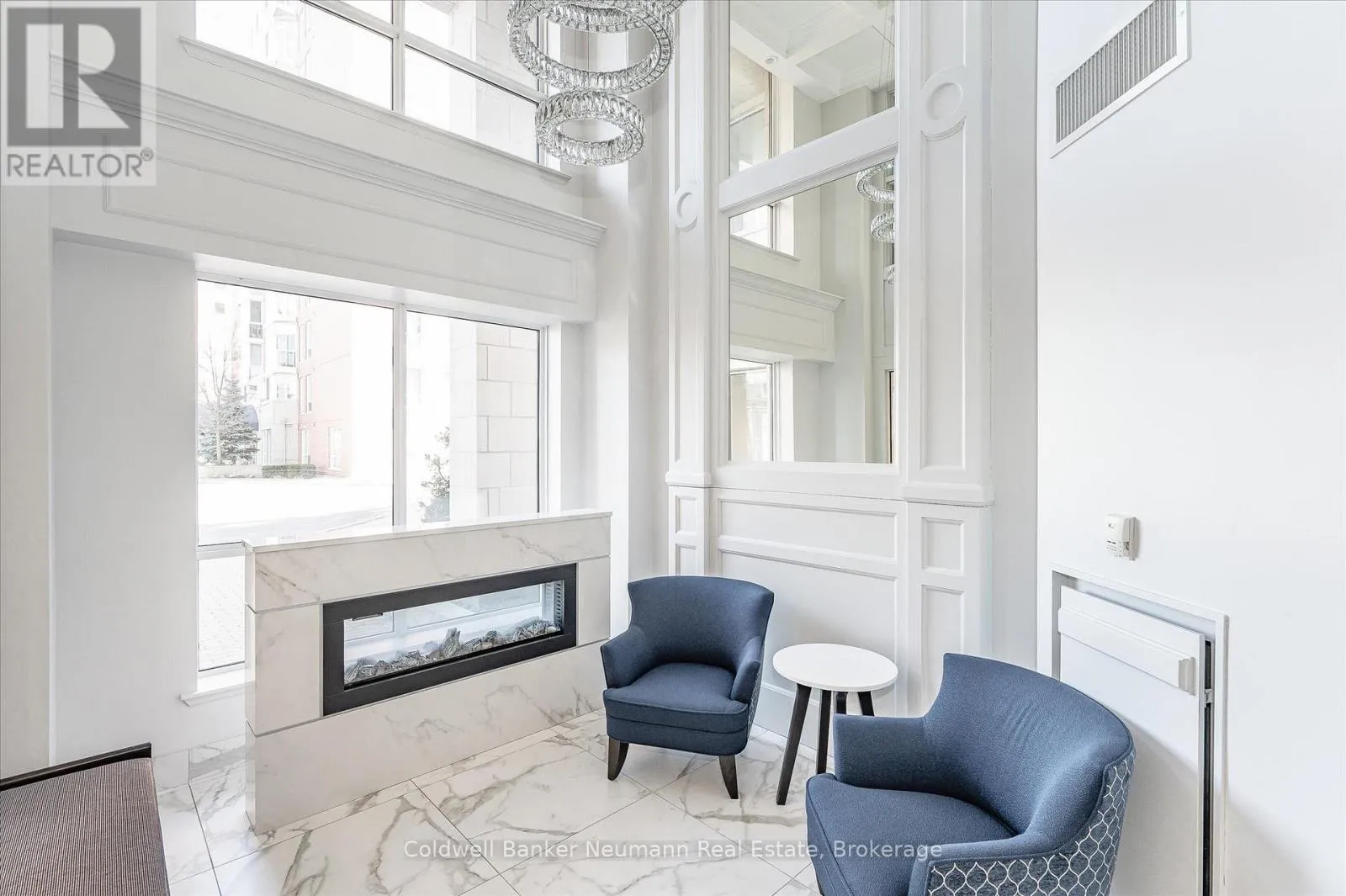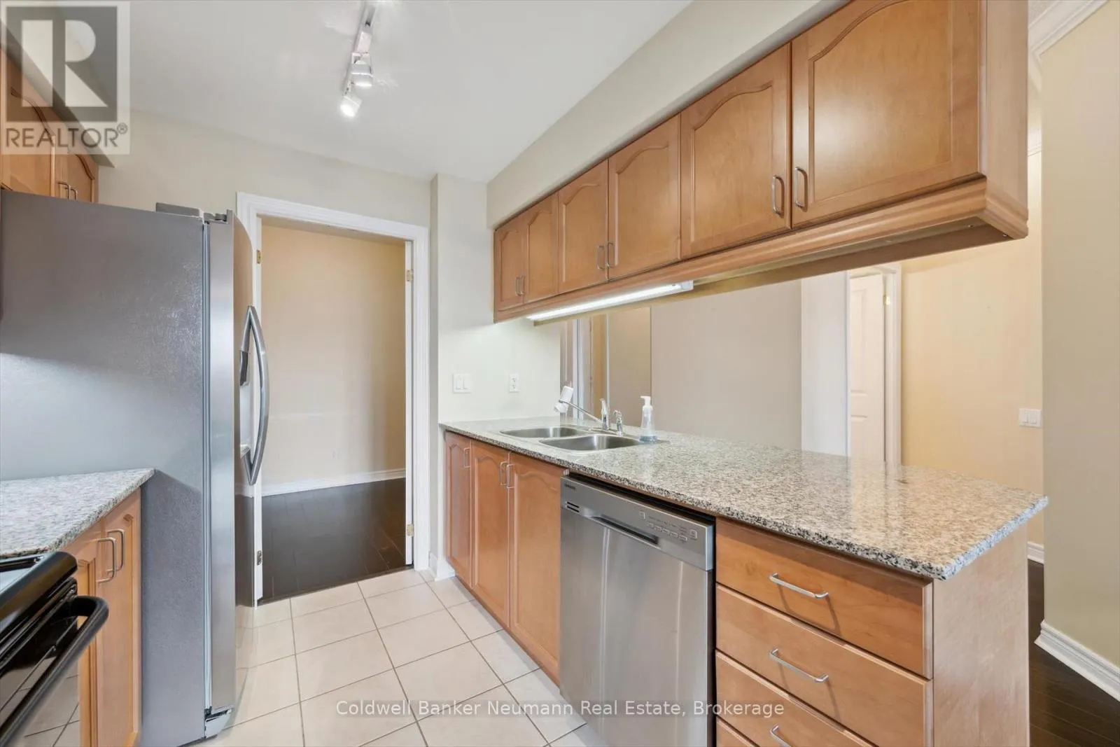 Cross Streets: Third building on Old Mill Road. ** Directions: Cornwall and Trafalgar. TWO PARKING SPACES! This 1-bedroom + den condo offers about 800 sq ft of well-designed space in a location that's hard to beat-just steps from the GO Station. It's a great option for anyone who wants an easy commute without giving up comfort at home. The galley-style kitchen is clean and practical, with granite counters, stainless steel appliances, and extra built-in storage. The living and dining area is open and bright, with floor-to-ceiling windows and clear views out over Oakville. The bedroom is a solid size with a walk-in closet, and the den gives you flexibility-home office, reading spot, or just some extra room to tuck things away. The building has everything you'd expect: indoor pool, gym, party room, sauna, plus secure entry with a 24-hour gatehouse. You also get two underground parking spaces, which is a nice bonus. You're within walking distance to the GO, Whole Foods, LCBO, and not far from downtown Oakville and the waterfront. Whether you're looking for something low-maintenance, an investment, or a place to downsize into, this one checks a lot of boxes. (id:27476)