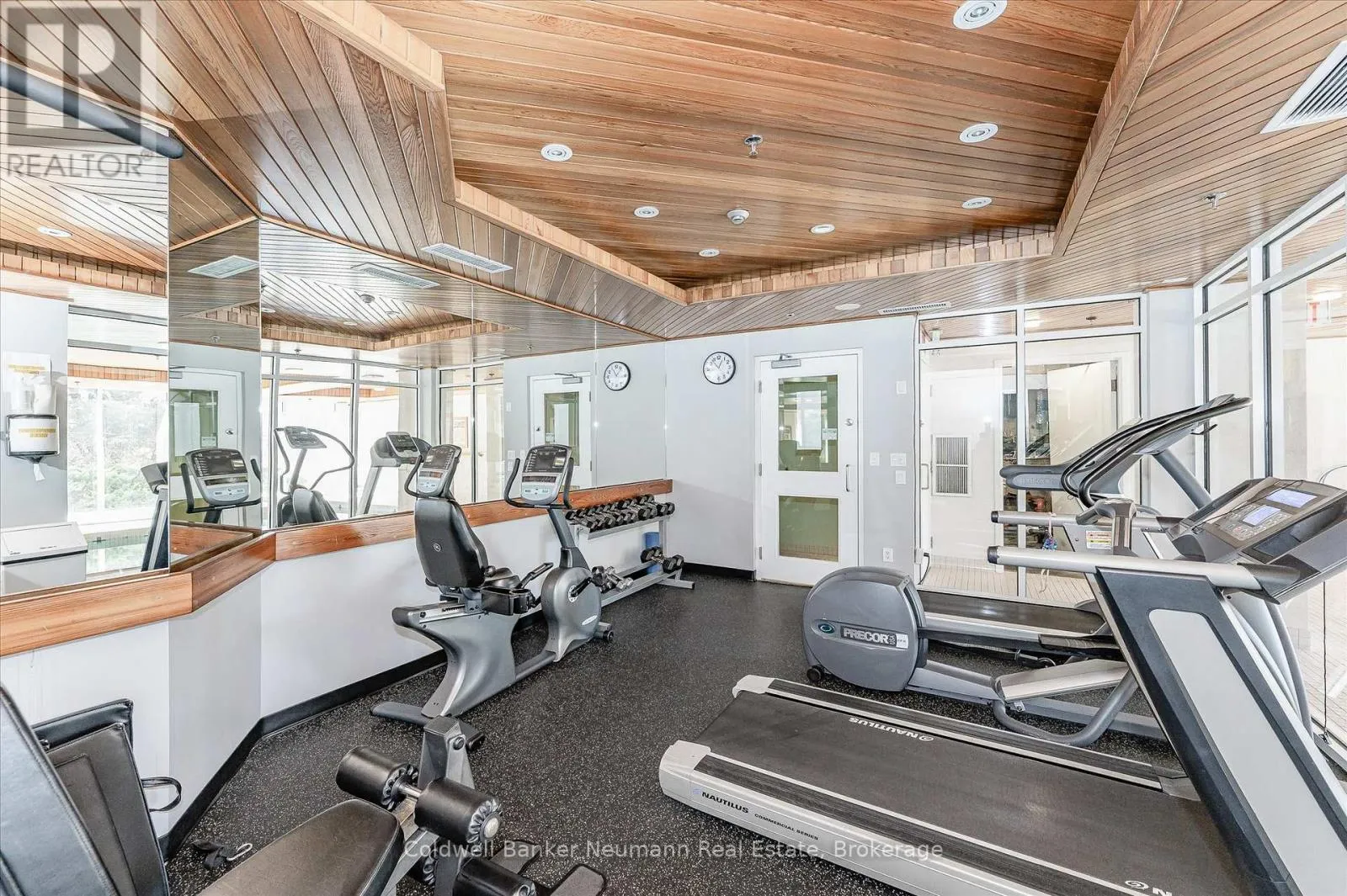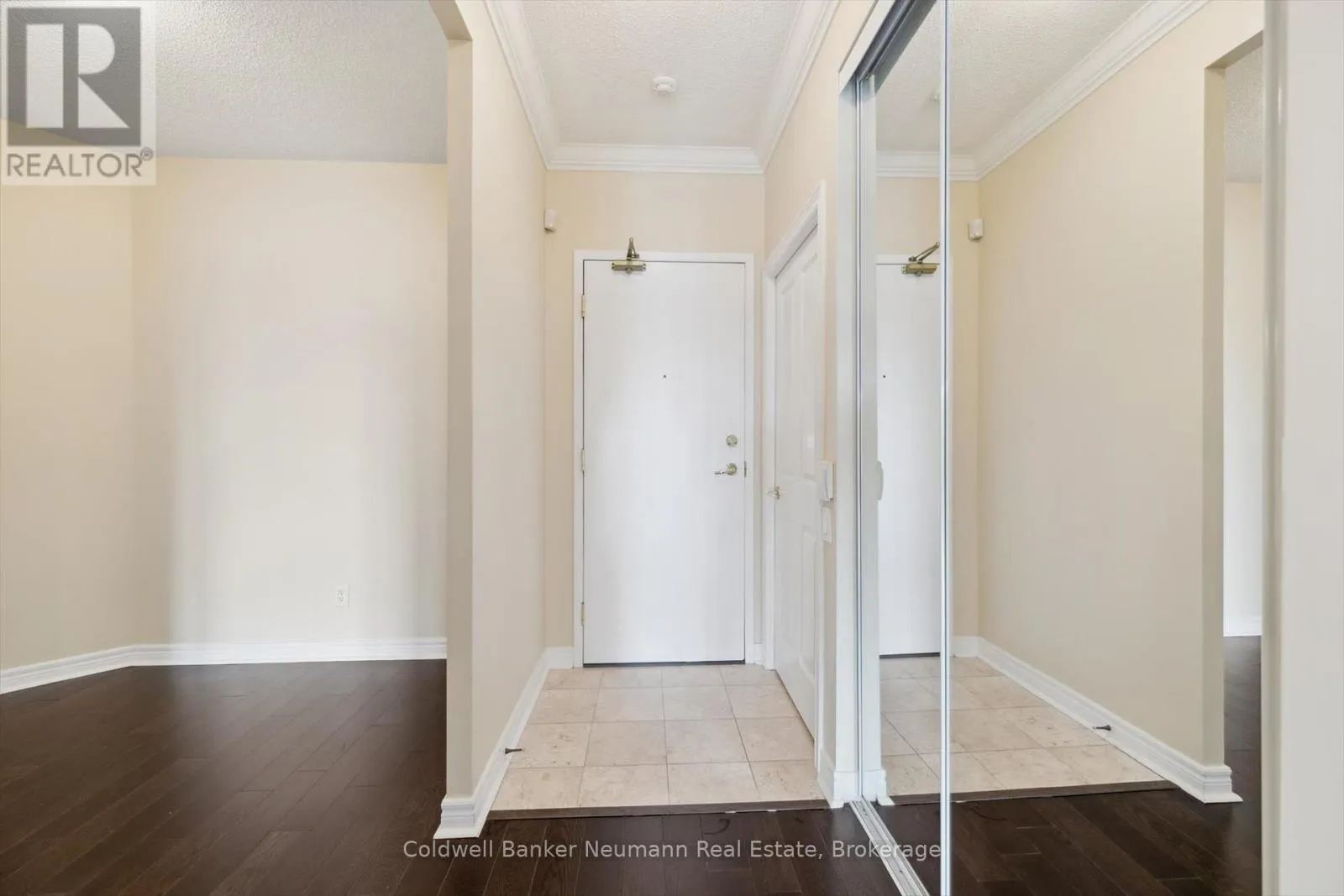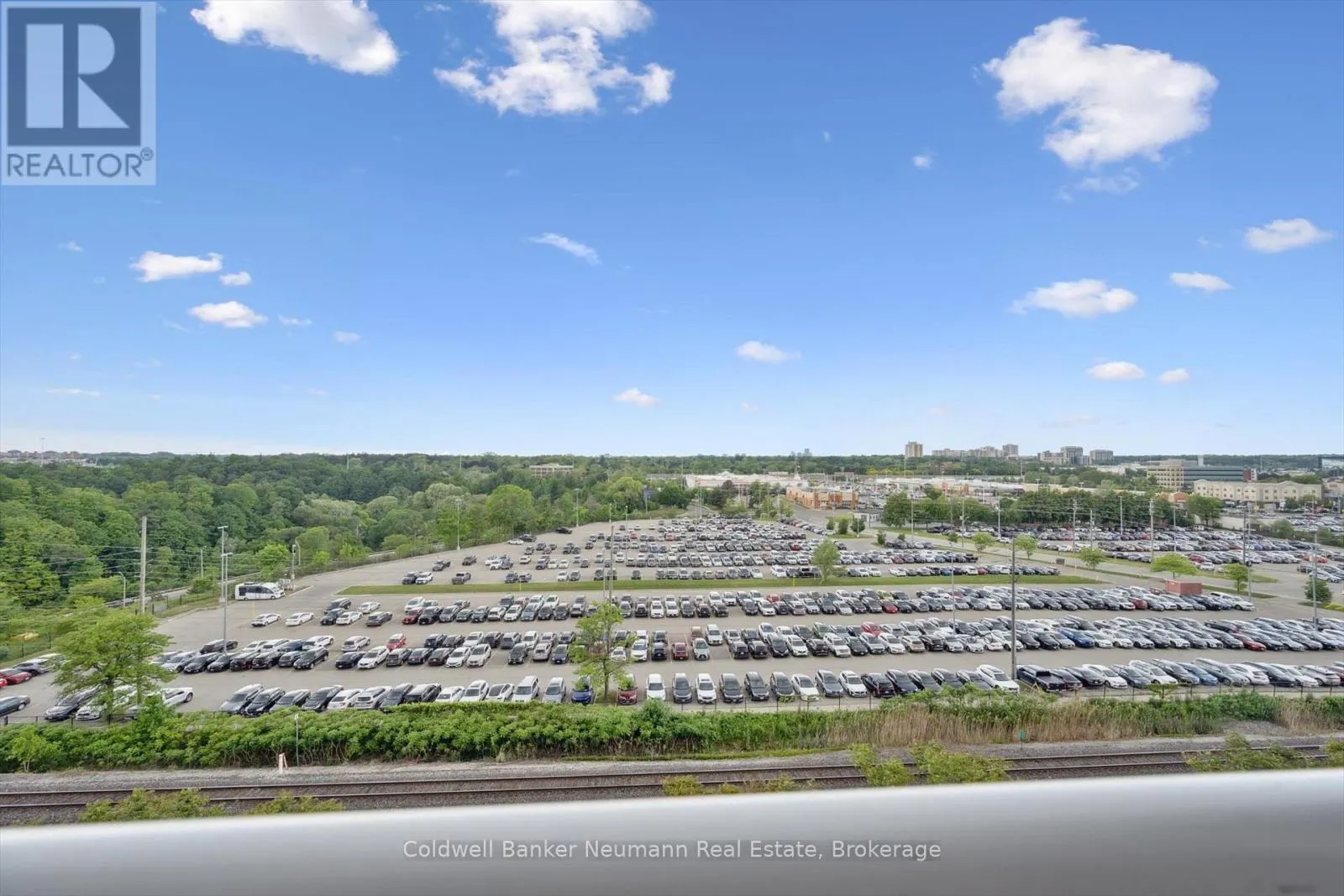 Cross Streets: Third building on Old Mill Road. ** Directions: Cornwall and Trafalgar. TWO PARKING SPACES! This 1-bedroom + den condo offers about 800 sq ft of well-designed space in a location that's hard to beat-just steps from the GO Station. It's a great option for anyone who wants an easy commute without giving up comfort at home. The galley-style kitchen is clean and practical, with granite counters, stainless steel appliances, and extra built-in storage. The living and dining area is open and bright, with floor-to-ceiling windows and clear views out over Oakville. The bedroom is a solid size with a walk-in closet, and the den gives you flexibility-home office, reading spot, or just some extra room to tuck things away. The building has everything you'd expect: indoor pool, gym, party room, sauna, plus secure entry with a 24-hour gatehouse. You also get two underground parking spaces, which is a nice bonus. You're within walking distance to the GO, Whole Foods, LCBO, and not far from downtown Oakville and the waterfront. Whether you're looking for something low-maintenance, an investment, or a place to downsize into, this one checks a lot of boxes. (id:27476)