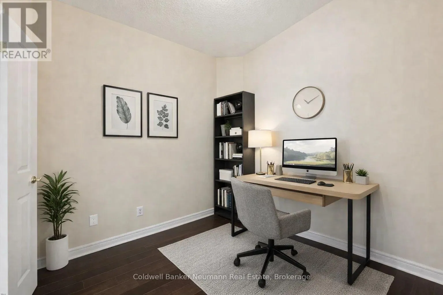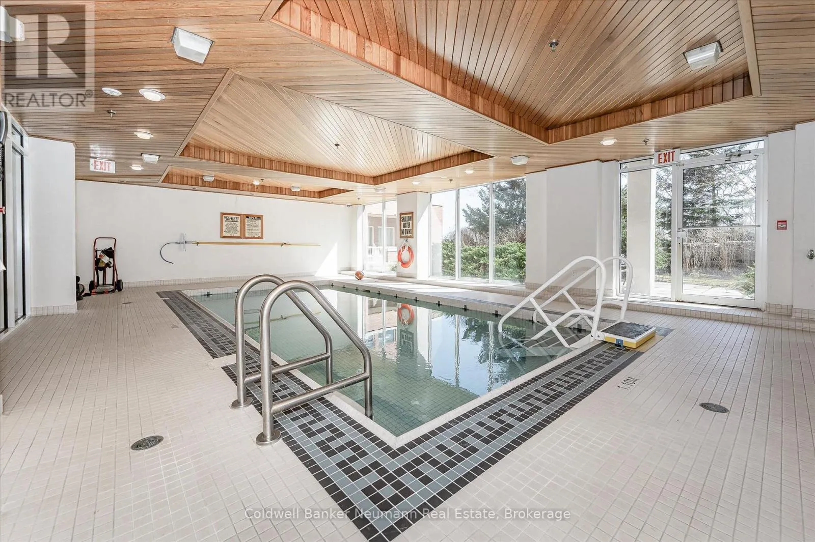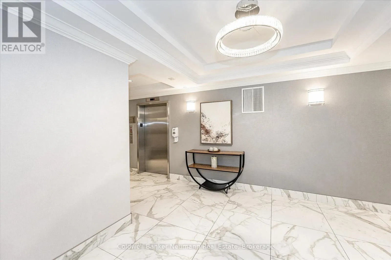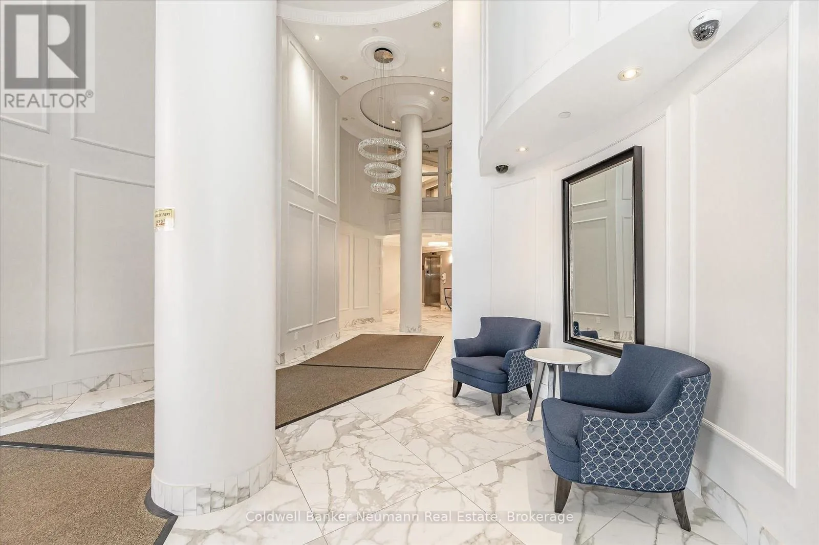 Cross Streets: Third building on Old Mill Road. ** Directions: Cornwall and Trafalgar. TWO PARKING SPACES! This 1-bedroom + den condo offers about 800 sq ft of well-designed space in a location that's hard to beat-just steps from the GO Station. It's a great option for anyone who wants an easy commute without giving up comfort at home. The galley-style kitchen is clean and practical, with granite counters, stainless steel appliances, and extra built-in storage. The living and dining area is open and bright, with floor-to-ceiling windows and clear views out over Oakville. The bedroom is a solid size with a walk-in closet, and the den gives you flexibility-home office, reading spot, or just some extra room to tuck things away. The building has everything you'd expect: indoor pool, gym, party room, sauna, plus secure entry with a 24-hour gatehouse. You also get two underground parking spaces, which is a nice bonus. You're within walking distance to the GO, Whole Foods, LCBO, and not far from downtown Oakville and the waterfront. Whether you're looking for something low-maintenance, an investment, or a place to downsize into, this one checks a lot of boxes. (id:27476)