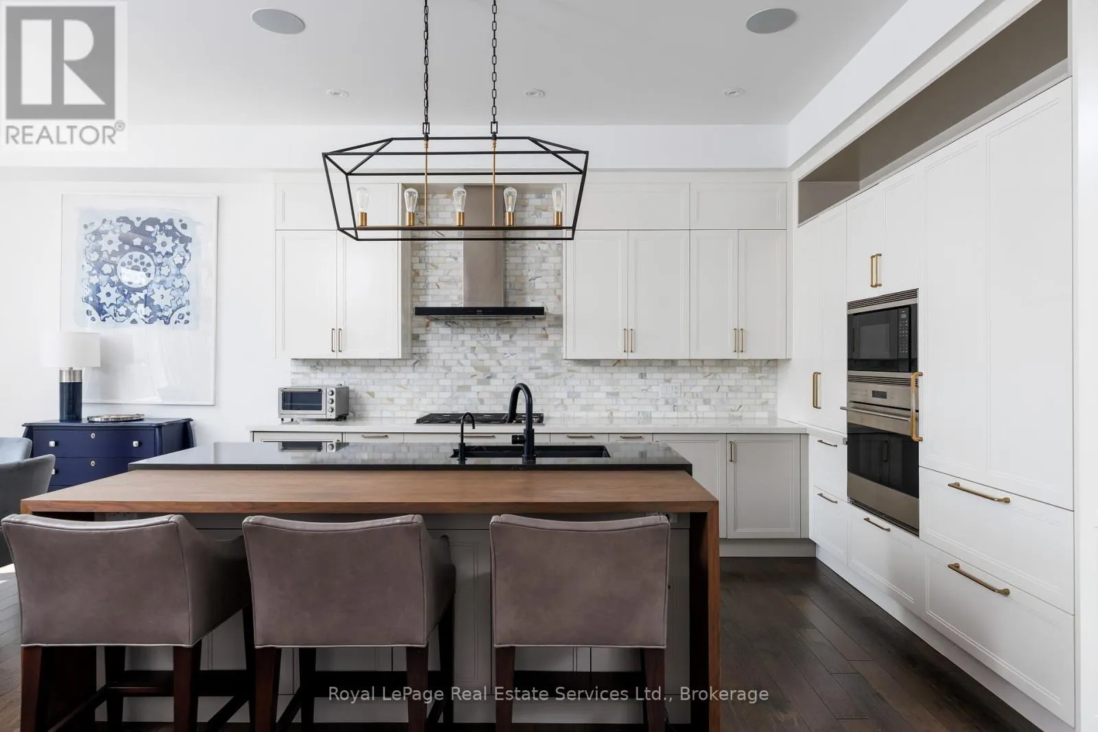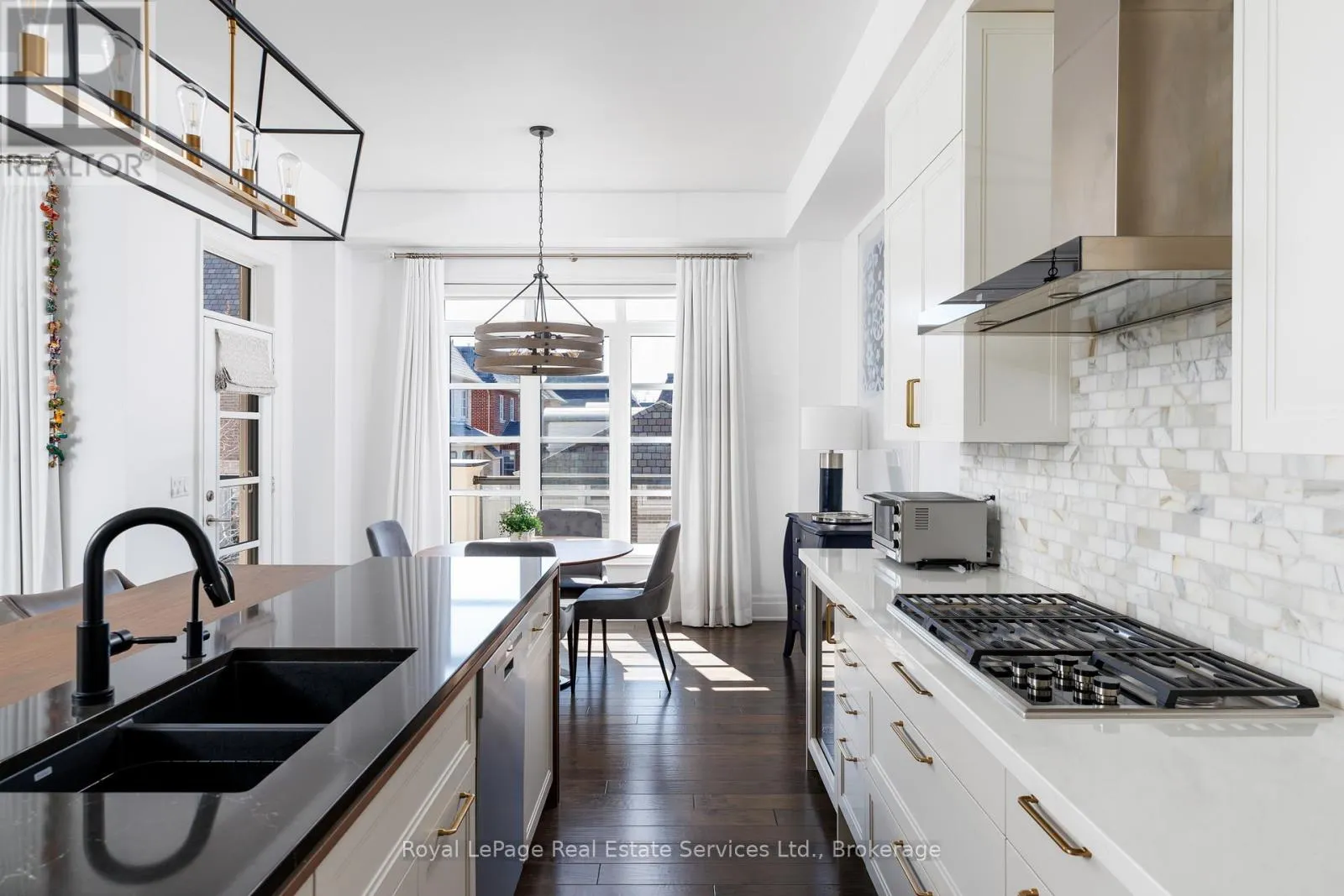 Cross Streets: Dorval Drive / Ortona Gate. ** Directions: Q.E.W, South on Dorval Drive, North of Rebecca Street. Exceptional End-Unit townhome in Oakville's prestigious Royal Oakville Club, where refined design meets effortless luxury living. Offering 4341 livable square feet, home elevator to all levels, custom finishes throughout, and sprawling rooftop terrace with sunny West Exposure, and one of the few townhomes in the development that doesn't back onto others. At the heart of the home is the stunning Downsview kitchen complete with a premium appliance package (Subzero fridge, wolf gas range, hood vent, wolf wall oven, built-in wolf microwave, bosch dishwasher), sleek cabinetry with custom organization, and an expansive layout designed with Cambria Quartz countertops with integrated walnut overhang for both everyday living and elegant entertaining. The principal spaces are enhanced by built-in speakers, Sonos sound system, 2-way gas fireplace, designer lighting, and walk-out to one of three outdoor terraces. The primary suite offers a 5-piece ensuite, walk-in closet, and private balcony to enjoy your morning coffee. The second level is complete with two further bedrooms with impressive vaulted-ceilings and a thoughtfully designed laundry room equipped with a built-in dishwasher, refrigerator, folding counter, laundry sink, and generous linen storage. Ground level features a fourth bedroom/home office with soundproof windows, sitting room, and spacious mudroom with second laundry, closet organizers, and access to the double car garage with epoxy flooring, EV charger, and central vacuum. Enjoy your evenings entertaining on the expansive third-level terrace with unobstructed views. Timeless in design and meticulously curated, this home caters to those seeking elevated finishes paired with effortless, low-maintenance living. Welcome Home (id:27476)