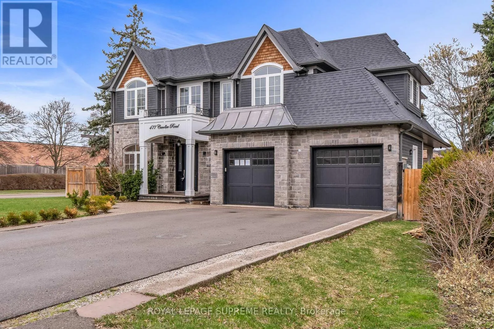 Constance Dr/ Candler Rd Custom-built home in a highly desirable Southeast Oakville location. Set on an expansive corner lot, this impressive two-storey residence offers over 3,000 sq. ft. of beautifully finished living space-ideal for growing families. A refined transitional design is showcased throughout, beginning with the elegant living and dining rooms just off the welcoming front foyer. The thoughtfully designed chef's kitchen features, stunning two-toned cabinetry, and seamless flow into the spacious family room, complete with a gas fireplace and sliding doors leading to a fully fenced backyard with a covered porch-perfect for entertaining. Upstairs, the bright and airy primary suite boasts large windows, a private balcony, walk-in closet, and a well-appointed ensuite. Three additional generously sized bedrooms offer ample closet space and convenient washroom access. Lower level provides exceptional versatility with a large recreation room, home theatre, gym, fifth bedroom, and an additional washroom. Ideally located within walking distance to Oakville Trafalgar High School, Maple Grove Public School, and a wide range of everyday amenities, this home offers both comfort and convenience in one of Oakville's most sought-after neighbourhoods. Property sold as is. (id:27476)