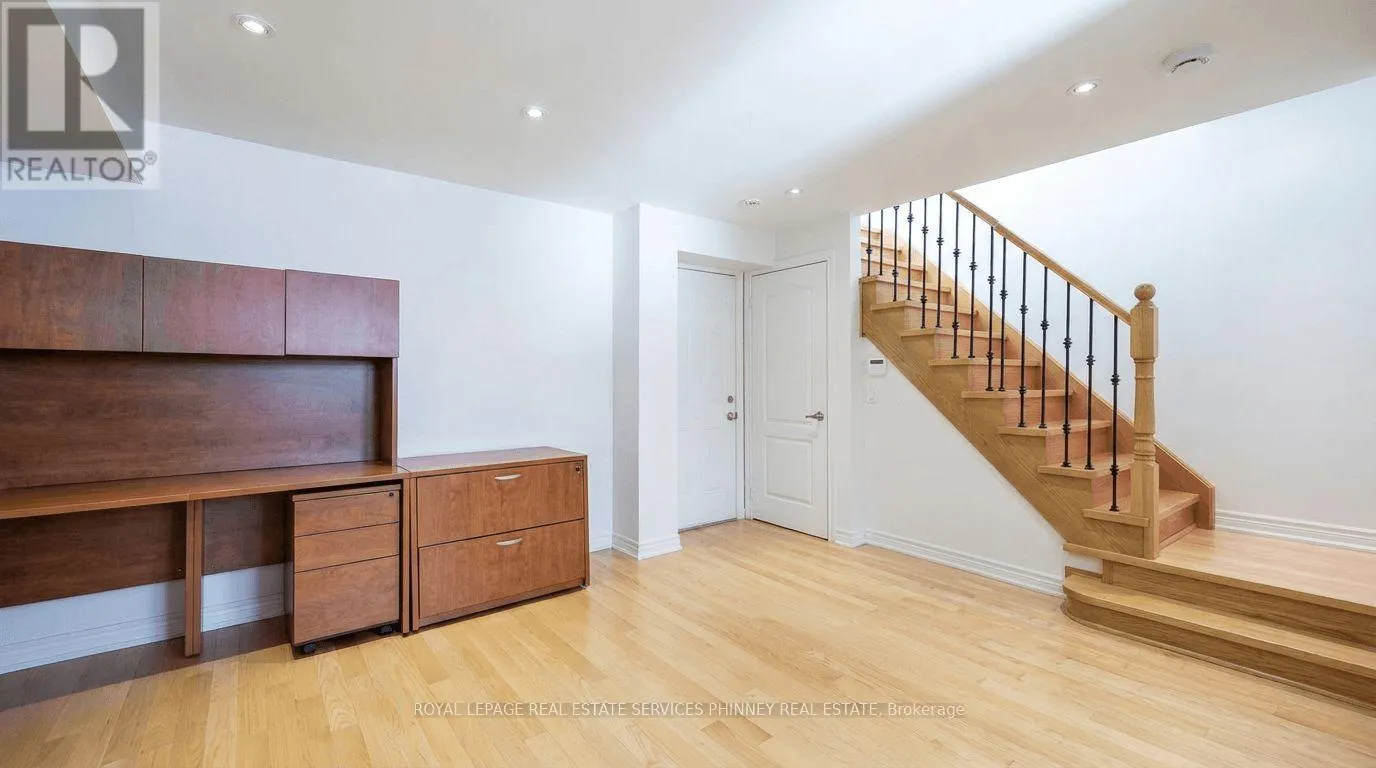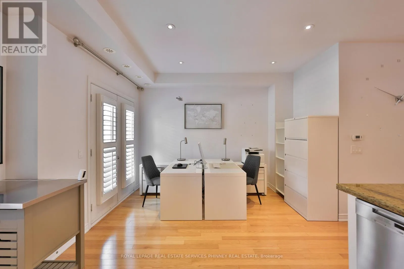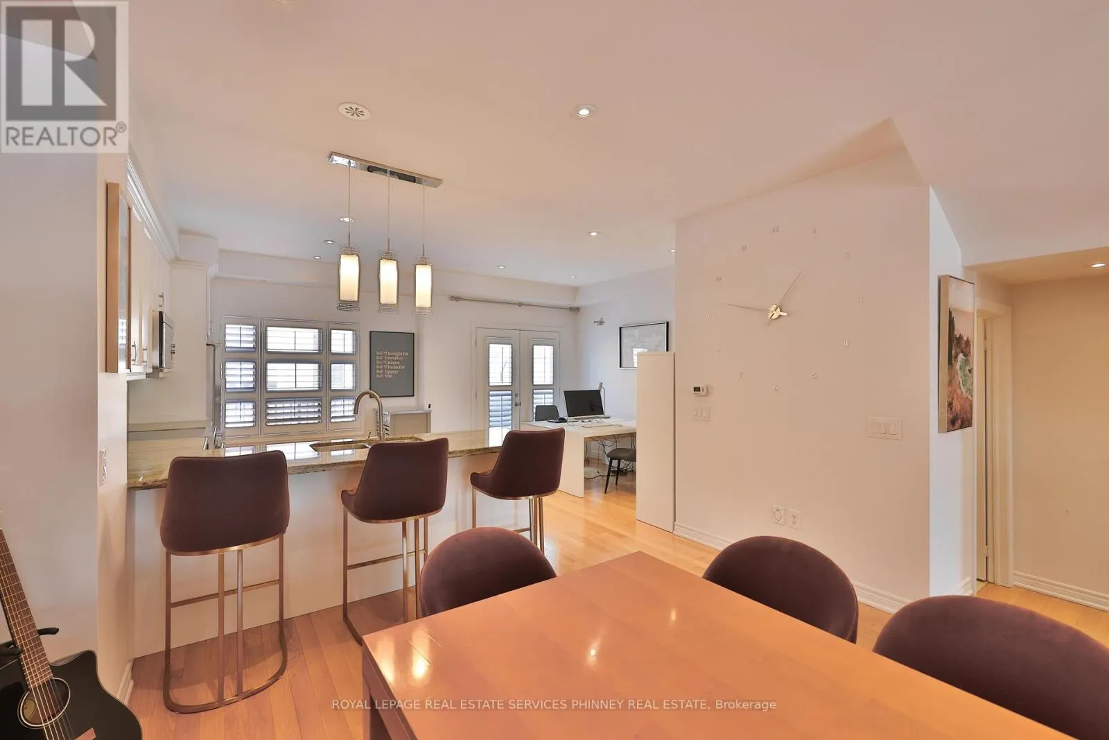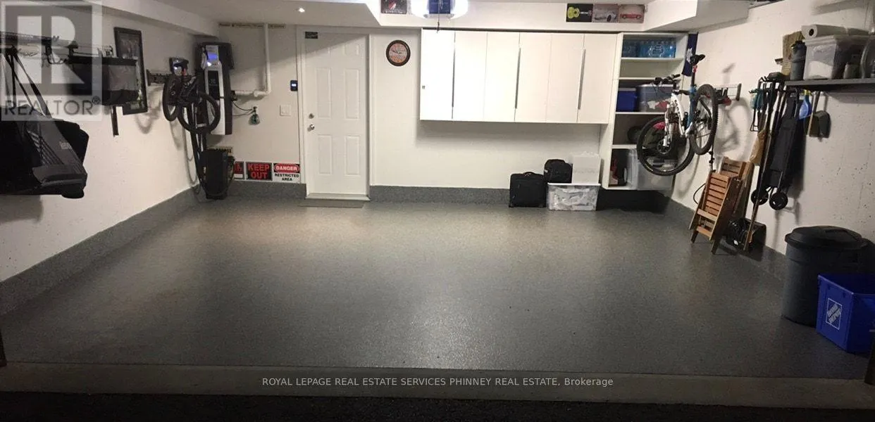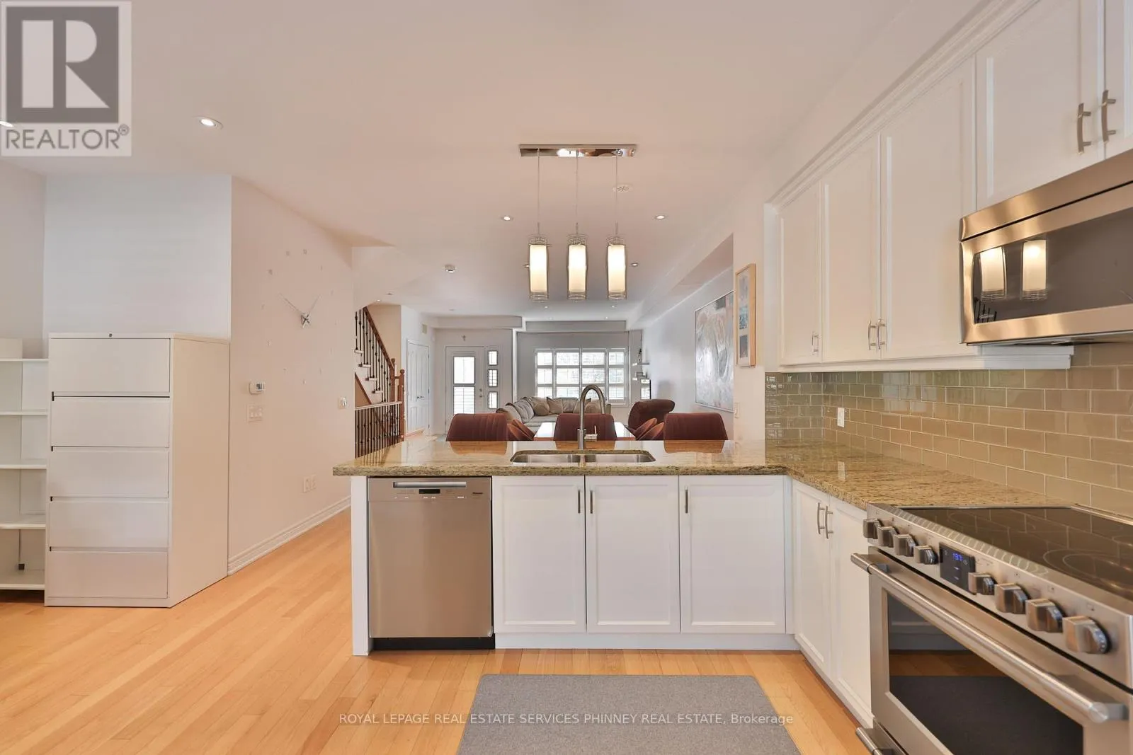 Prince Michael / Dundas Welcome to this beautifully appointed 3-bedroom, 3-bath executive townhome in sought-after Joshua Creek, perfectly positioned in a premium location within the complex facing private parkland and green space. This light-filled home is bright and airy with an open-concept main level featuring 9-foot ceilings, spacious living and dining areas, and an eat-in kitchen (currently configured with a convenient work from home office). Enjoy upgraded granite countertops, stainless steel appliances, hardwood flooring throughout, and a walk-out to the private back deck.Upstairs, the primary suite features a walk-in closet with custom organizers, a 4-piece ensuite, and a walk-out to a private balcony. Two additional bedrooms, a full 4-piece bath, and upper-level laundry for added convenience. The finished lower level offers ample storage and direct walk out access to the updated garage. Enjoy amenities in the nearby condominium building including the indoor pool, fitness, billiards, theatre and party rooms. Ideally located steps to shops, restaurants, and everyday amenities, centrally located with easy access to major highways and situated in an excellent school district. This exceptional home combines style, convenience, and an unbeatable location (id:27476)
