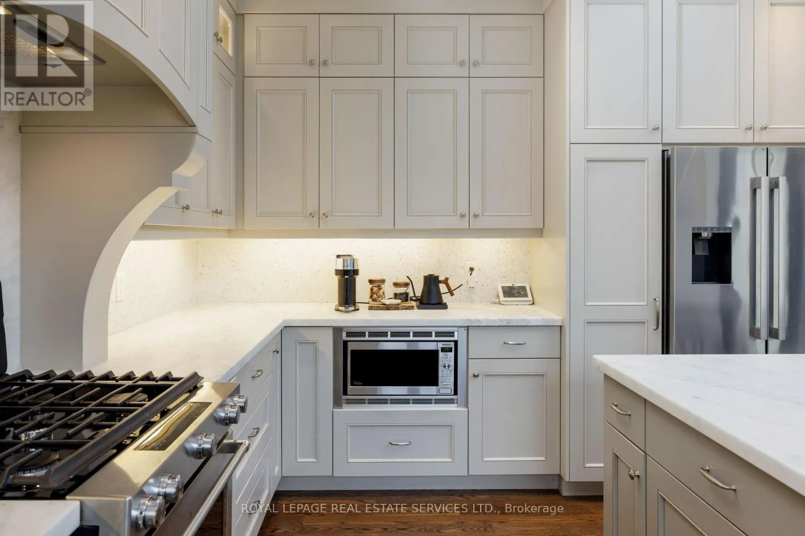 Cross Streets: Queen Mary & Glenmanor. ** Directions: Speers - Queen Mary - Glenmanor. Welcome to this exceptional, fully reimagined bungalow in Old Oakville's coveted West River neighbourhood, ideally situated near Sixteen Mile Creek and steps to vibrant, walkable Kerr Village. Set on a premium 60' x 149' mature lot, this 3+1 bedroom, 3.5 bathroom residence showcases outstanding curb appeal with a stucco and stone exterior, custom mouldings, lush gardens, new concrete work, ambient soffit lighting, and an extended driveway accommodating up to 8 vehicles, plus a rare tandem double garage with inside entry and dual yard access. The private, fully fenced backyard offers a tranquil, park-like setting with textured concrete entertaining spaces, winding pathways, a hot tub, and a custom pergola beneath mature trees. Inside, refined finishes include hardwood floors, crown mouldings, pot lighting, built-in speakers, custom window coverings, and three fireplaces. A stunning addition with 10' ceilings anchors the open-concept design, featuring a grand great room with a gas fireplace and custom mantel, an elegant dining area with herringbone hardwood and a walkout, and a chef-inspired, custom kitchen with honed Calacatta marble countertops, an oversized island with a built-in dinette, valance lighting, premium stainless steel appliances and a convection oven. The main level offers three spacious bedrooms and 2.5 luxurious baths, including a serene primary retreat with an electric fireplace (2026), custom walk-in closet, and spa-like 5-piece ensuite with a clawfoot tub and separate glass shower. The professionally finished basement with separate side entrance provides excellent suite potential, complete with expansive recreation space, gym or fourth bedroom, laundry, and full bath. Ideally located within walking distance to parks, Lake Ontario, downtown Oakville, and minutes to the GO Train and QEW, this turnkey home delivers upscale living with exceptional convenience. (id:27476)