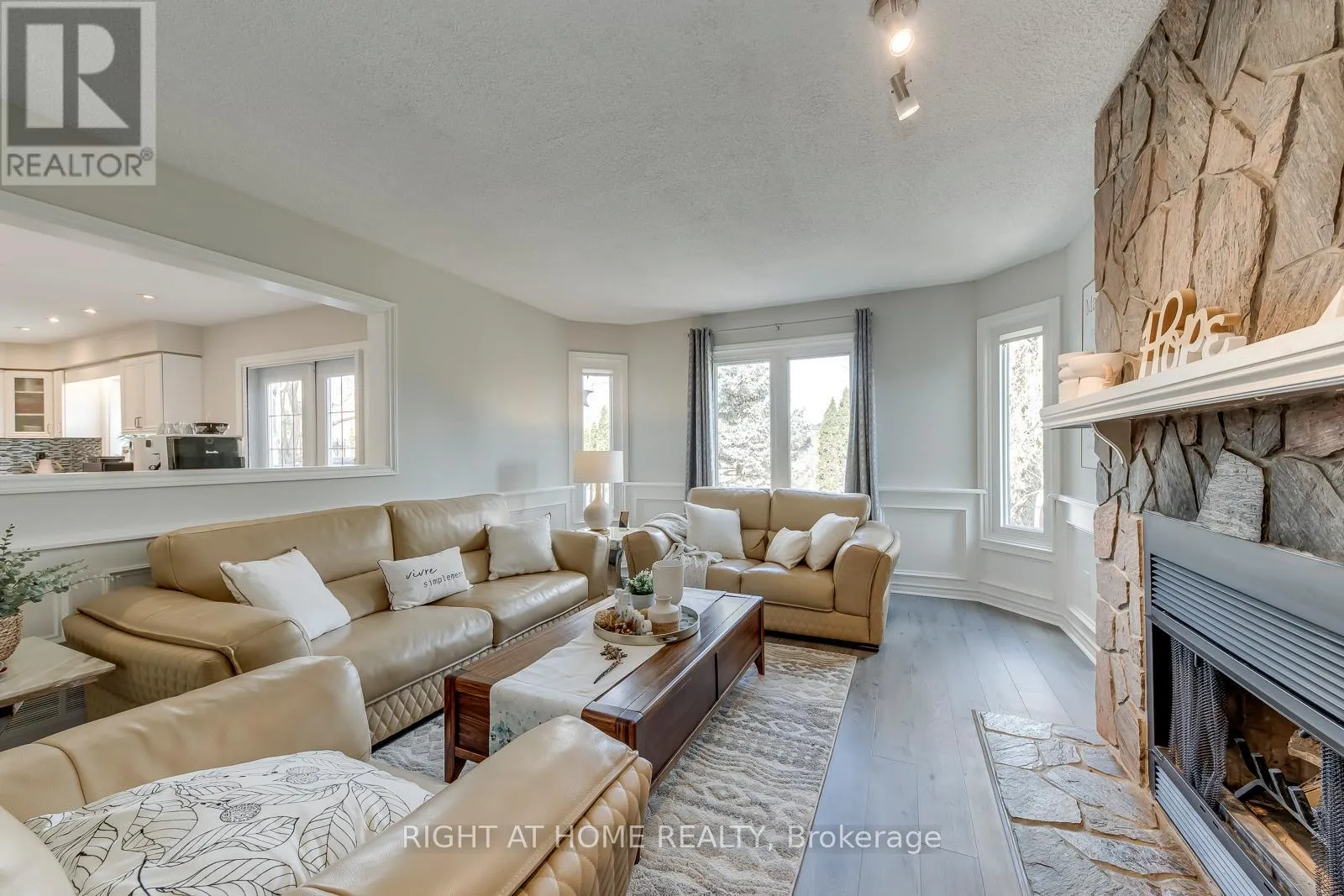 Cross Streets: Upper Middle Rd E & Ninth Line. ** Directions: Take Hwy 403: Exit at Upper Middle Rd E, Turn right, then turn right onto Bayshire Dr. Backs onto Ravine! Rare find in prestigious Joshua Creek, Oakville! This beautifully maintained executive 5-bedroom family home offers 3,314 sq. ft. of elegant above-ground living space with quality upgrades throughout. The main level features formal living and dining rooms with hardwood flooring and crown moulding, a sun-filled gourmet kitchen with granite countertops, custom cabinetry and greenhouse window, opening to the breakfast area and family room with wood-burning fireplace. Upstairs, a skylit hallway leads to a generous primary retreat with walk-in closet and 5-piece ensuite, plus four additional bedrooms, some with vaulted ceilings. The fully finished walk-out lower level includes a rec/games room, sauna, change room and storage-ideal for extended family or in-law suite potential. Step outside to a spectacular private backyard backing onto a peaceful ravine, complete with in-ground pool, hot tub, putting green, and lush gardens that bloom from spring magnolias and lilacs to summer hydrangeas and fiery autumn foliage. Top-rated schools: Joshua Creek P.S. & Iroquois Ridge H.S. Minutes to parks, trails, shopping, QEW & GO Transit. A rare opportunity-don't miss it! (id:27476)