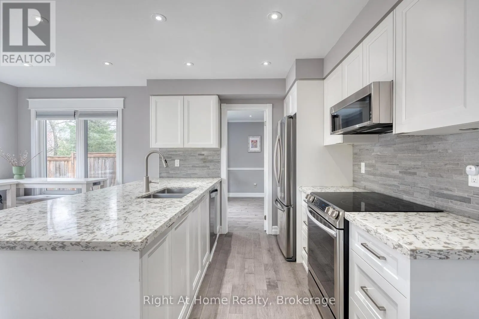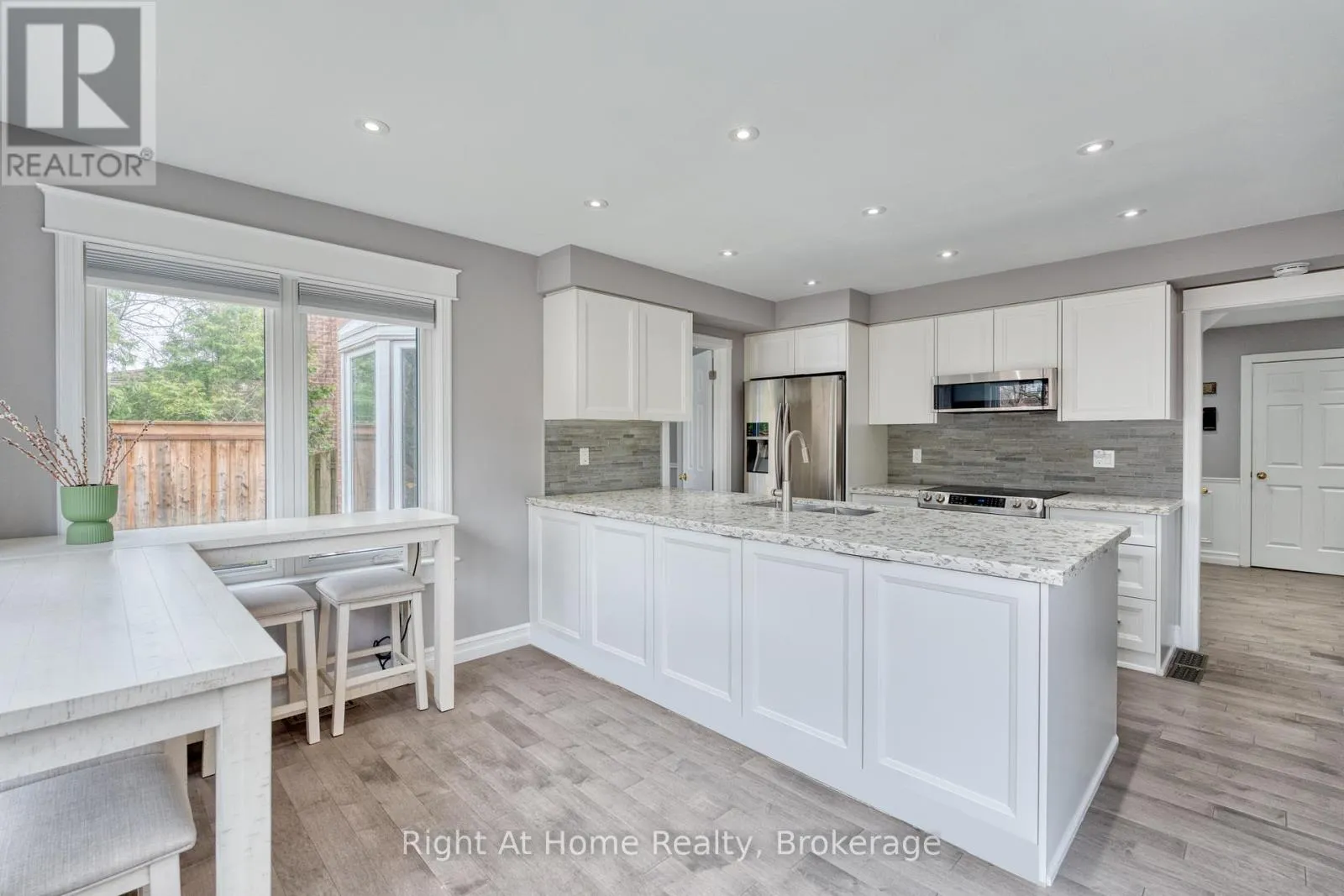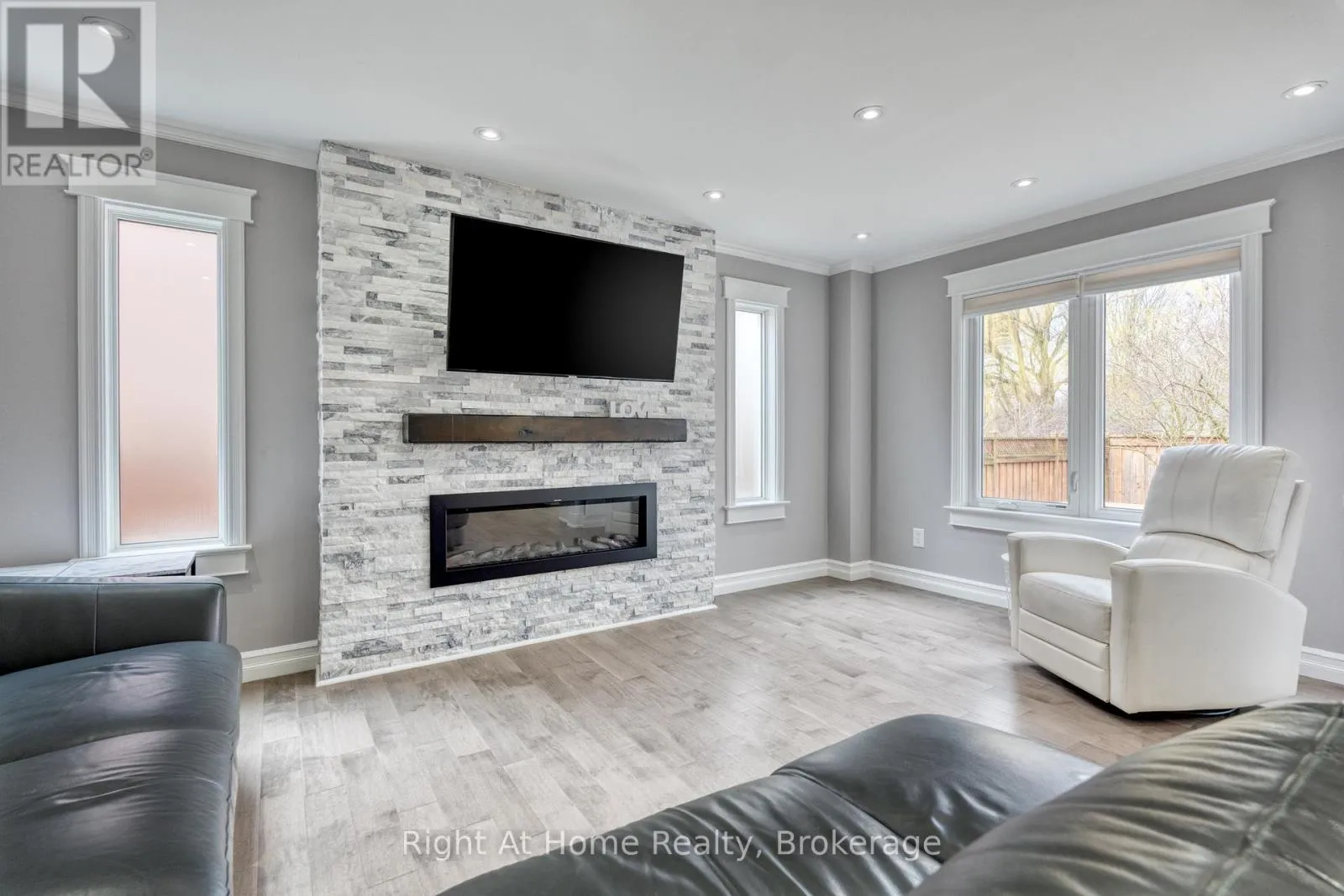 Cross Streets: Munn's Ave and River Oaks Blvd W. ** Directions: Neyagawa to River Oaks, property is on the left hand. Welcome to this beautifully upgraded home in the desirable River Oaks community. Facing green space and backing onto 16 Mile Trail System, this home offers the perfect balance of privacy and family comfort, with neighbours only to the sides. This amazing carpet free, 4 bedrooms, 4 bathrooms home has gone through many upgrades in recent years: new kitchen (2019) with stainless steel appliances (dishwasher 2026), modern hardwood floor main & second level (2022), new windows (except 2 bay windows & front 2nd level) & patio sliding door (2029), gorgeous front door (2021), bathrooms (2022), stairs (2022), 2 sides fencing (2019) & amazing interlocking stone work front & backyard (2021), new furnace (2023), washer & dryer & cabinetry in laundry (2020), new electric fireplace & feature stone wall around it (2022), tons of pot lights on main floor (2022), painted in designer colour, and the list goes on. The inviting main floor showcases a living room leading to dining room, a separate family room with a new stone accent wall and fireplace, hardwood floors throughout & crown molding. The sun bathed chef kitchen boasts modern cabinetry with granite counters, SS appliances and upgraded backsplash, while the patio door opens to the private backyard. Iron picket upgraded stairs leading upstairs to 4 generous size bedrooms , beautiful 2 bathrooms. The spacious primary retreat has 2 custom build-in white wardrobes. The finished basement provides versatile space with modern floors, birch wood staircase , cozy gas fireplace, convenient office/bedroom & a 3 pieces bathroom. The concrete driveway with the interlocking stone work & great landscaping adds to this home curb appeal. Newer roof (2018), newer soffits, fascia and gutters (2015) - per previous owner. This home is surrounded by top rated schools, parks and trails, steps to transit, close proximity to shopping and Oakville Trafalgar Hospital. Amazing home in one of Oakville's most established neighbourhoods. (id:27476)