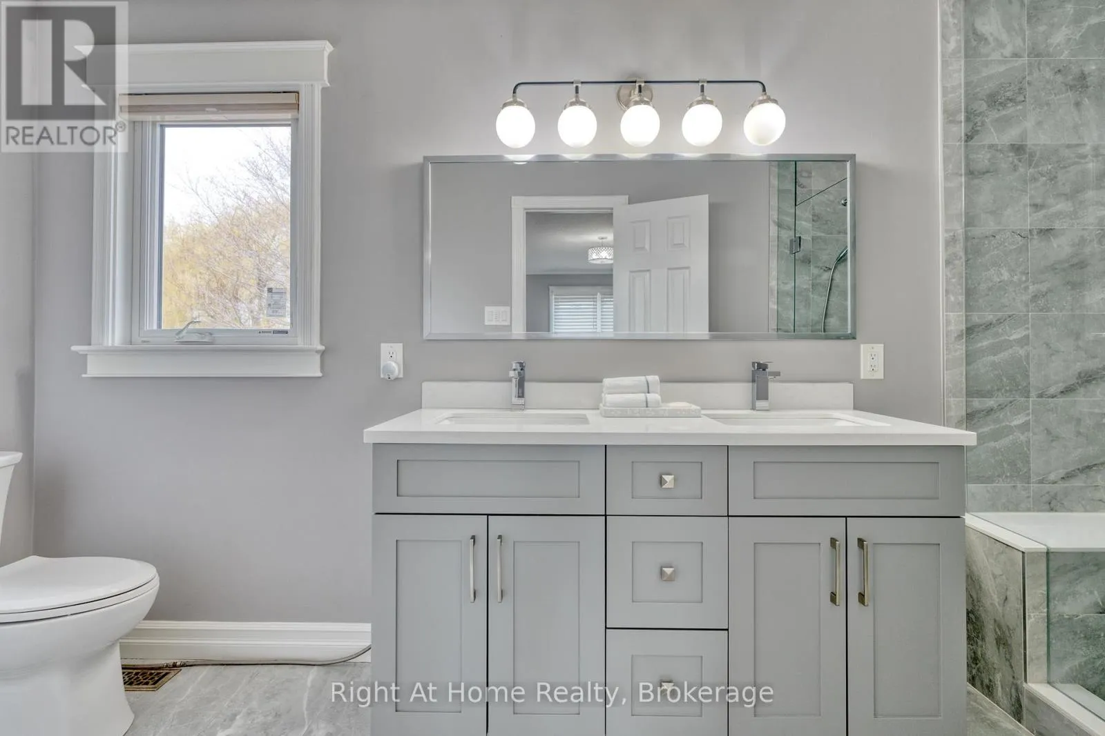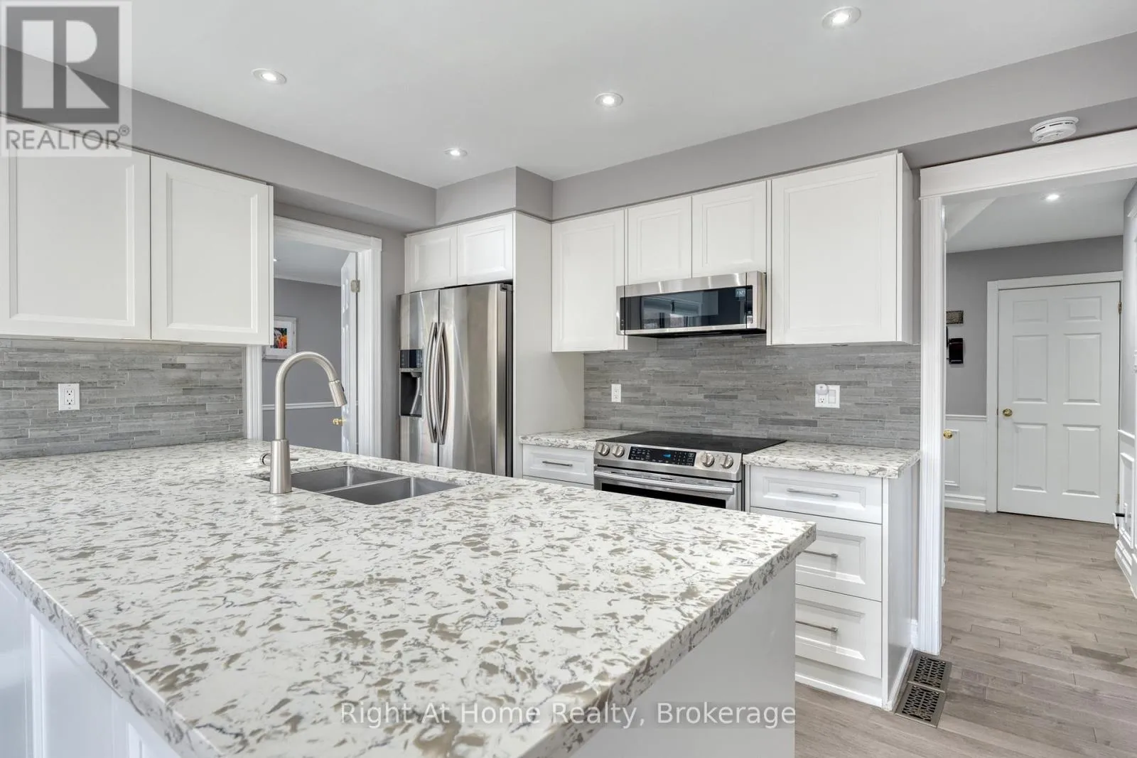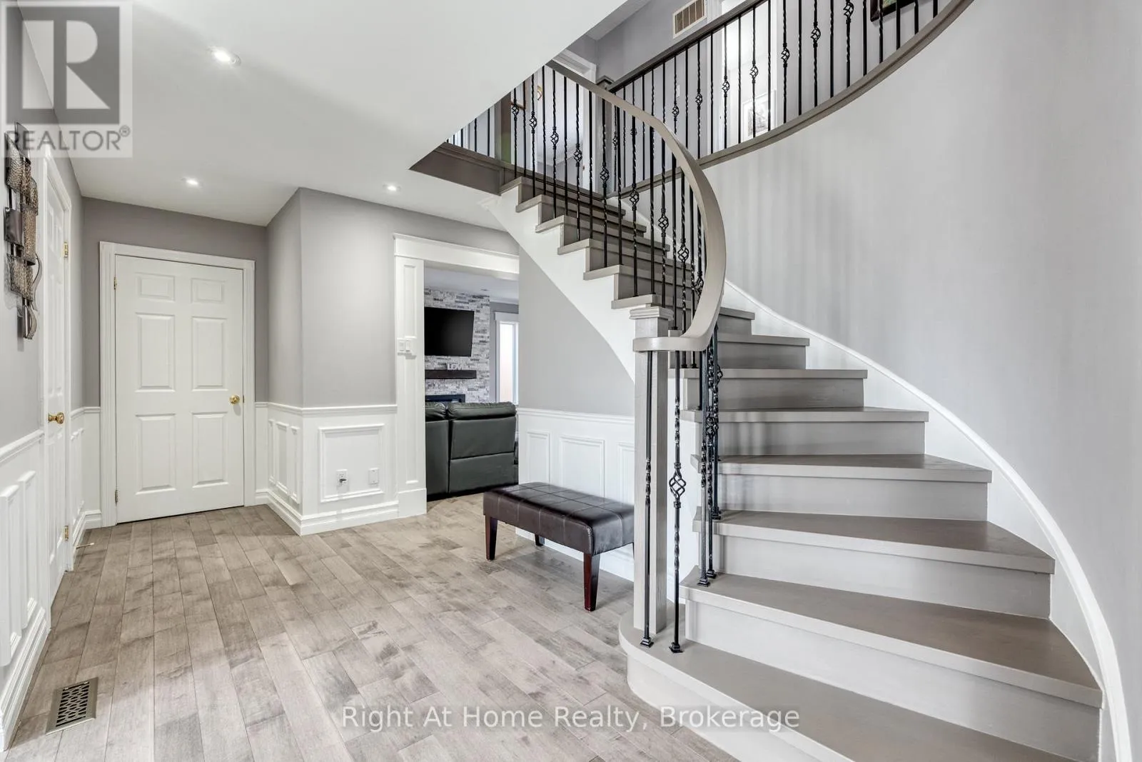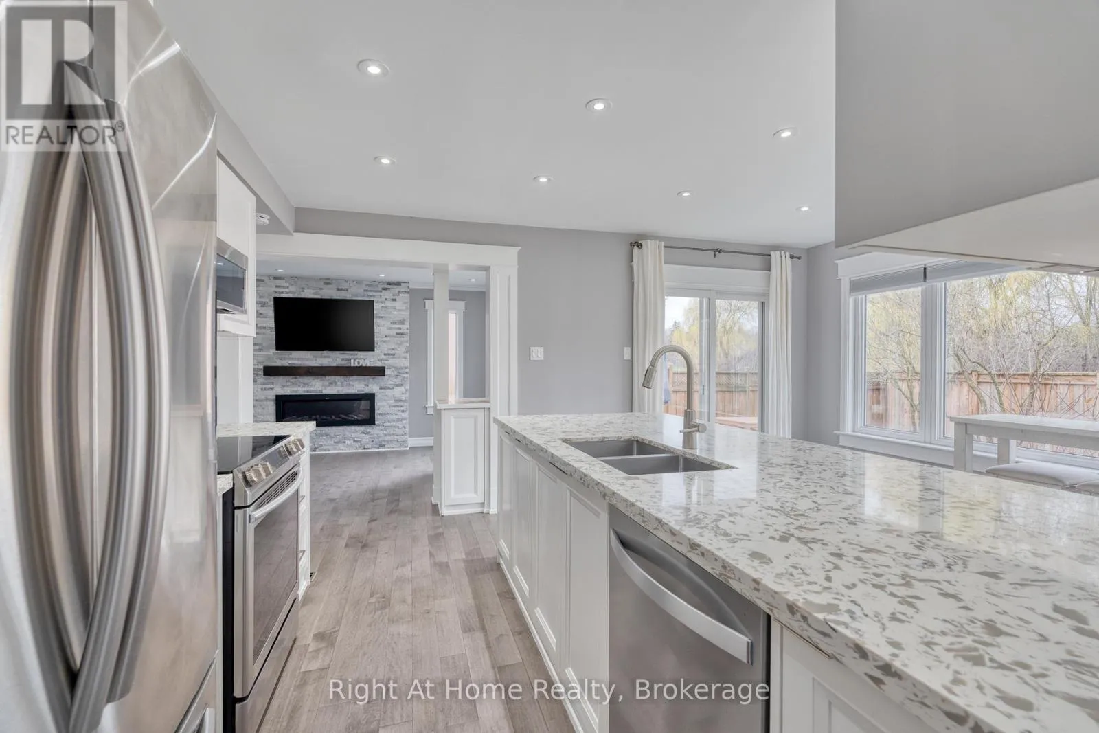Cross Streets: Munn's Ave and River Oaks Blvd W. ** Directions: Neyagawa to River Oaks, property is on the left hand. Welcome to this beautifully upgraded home in the desirable River Oaks community. Facing green space and backing onto 16 Mile Trail System, this home offers the perfect balance of privacy and family comfort, with neighbours only to the sides. This amazing carpet free, 4 bedrooms, 4 bathrooms home has gone through many upgrades in recent years: new kitchen (2019) with stainless steel appliances (dishwasher 2026), modern hardwood floor main & second level (2022), new windows (except 2 bay windows & front 2nd level) & patio sliding door (2029), gorgeous front door (2021), bathrooms (2022), stairs (2022), 2 sides fencing (2019) & amazing interlocking stone work front & backyard (2021), new furnace (2023), washer & dryer & cabinetry in laundry (2020), new electric fireplace & feature stone wall around it (2022), tons of pot lights on main floor (2022), painted in designer colour, and the list goes on. The inviting main floor showcases a living room leading to dining room, a separate family room with a new stone accent wall and fireplace, hardwood floors throughout & crown molding. The sun bathed chef kitchen boasts modern cabinetry with granite counters, SS appliances and upgraded backsplash, while the patio door opens to the private backyard. Iron picket upgraded stairs leading upstairs to 4 generous size bedrooms , beautiful 2 bathrooms. The spacious primary retreat has 2 custom build-in white wardrobes. The finished basement provides versatile space with modern floors, birch wood staircase , cozy gas fireplace, convenient office/bedroom & a 3 pieces bathroom. The concrete driveway with the interlocking stone work & great landscaping adds to this home curb appeal. Newer roof (2018), newer soffits, fascia and gutters (2015) - per previous owner. This home is surrounded by top rated schools, parks and trails, steps to transit, close proximity to shopping and Oakville Trafalgar Hospital. Amazing home in one of Oakville's most established neighbourhoods. (id:27476)