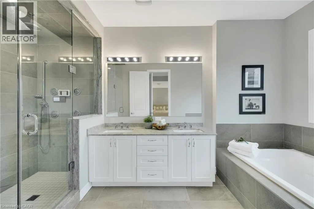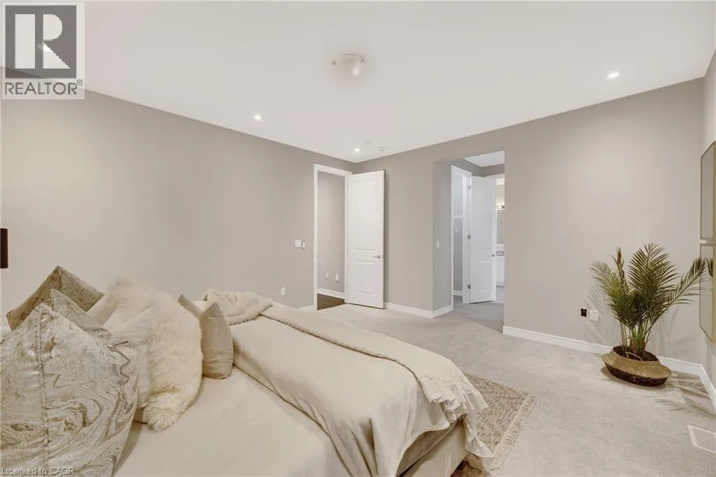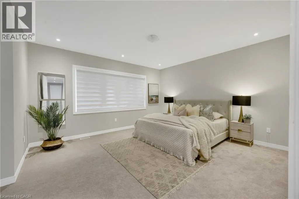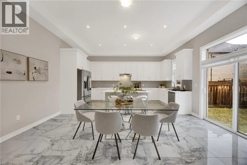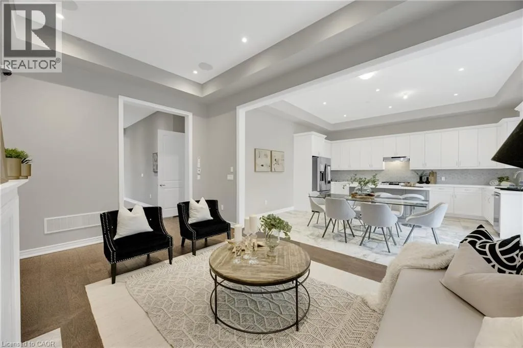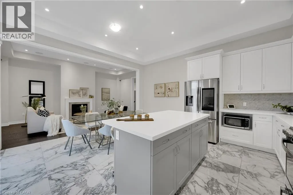 Welcome to an exceptional residence in the prestigious Seven Oaks enclave of the highly sought-after GO Glenorchy community, known for scenic parks, top-rated schools, and easy access to highways and amenities. This elegant home features 11-foot ceilings, 8-foot doors, and rich oak hardwood flooring, creating a bright, sophisticated feel. The open-concept main floor includes a cozy gas fireplace and a stylish kitchen with a large island, ideal for everyday living and entertaining. Thoughtful upgrades include automated window coverings, rough-in ceiling speakers, and a custom staircase with black birds nest style steel spindles. The primary suite offers dual walk-in closets and a spa-like ensuite with double sinks, marble tile, a Moen spa system, and frameless glass shower. Spacious bedrooms provide flexibility for family or work-from-home needs. The fully fenced backyard offers privacy for relaxation or entertaining. Built in 2022 by Fernbrook Homes and covered by Tarion Warranty, this home blends modern design with lasting quality. Book your private showing today! (id:27476)