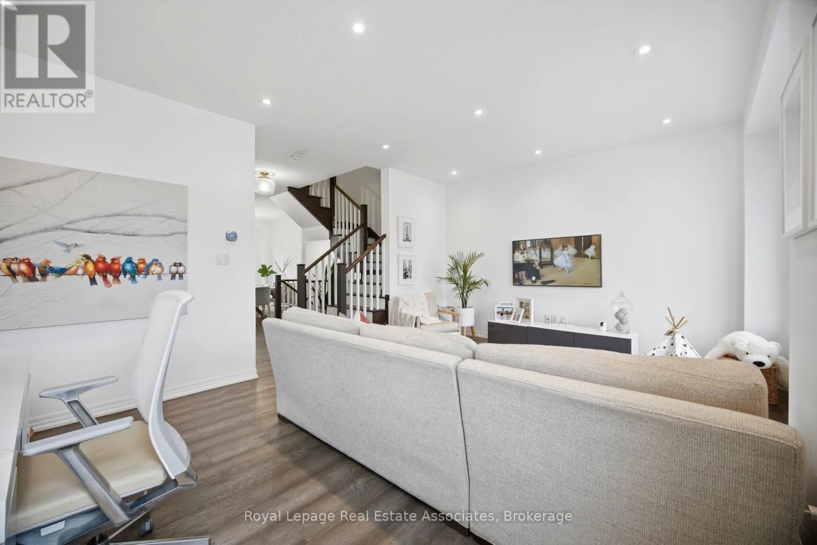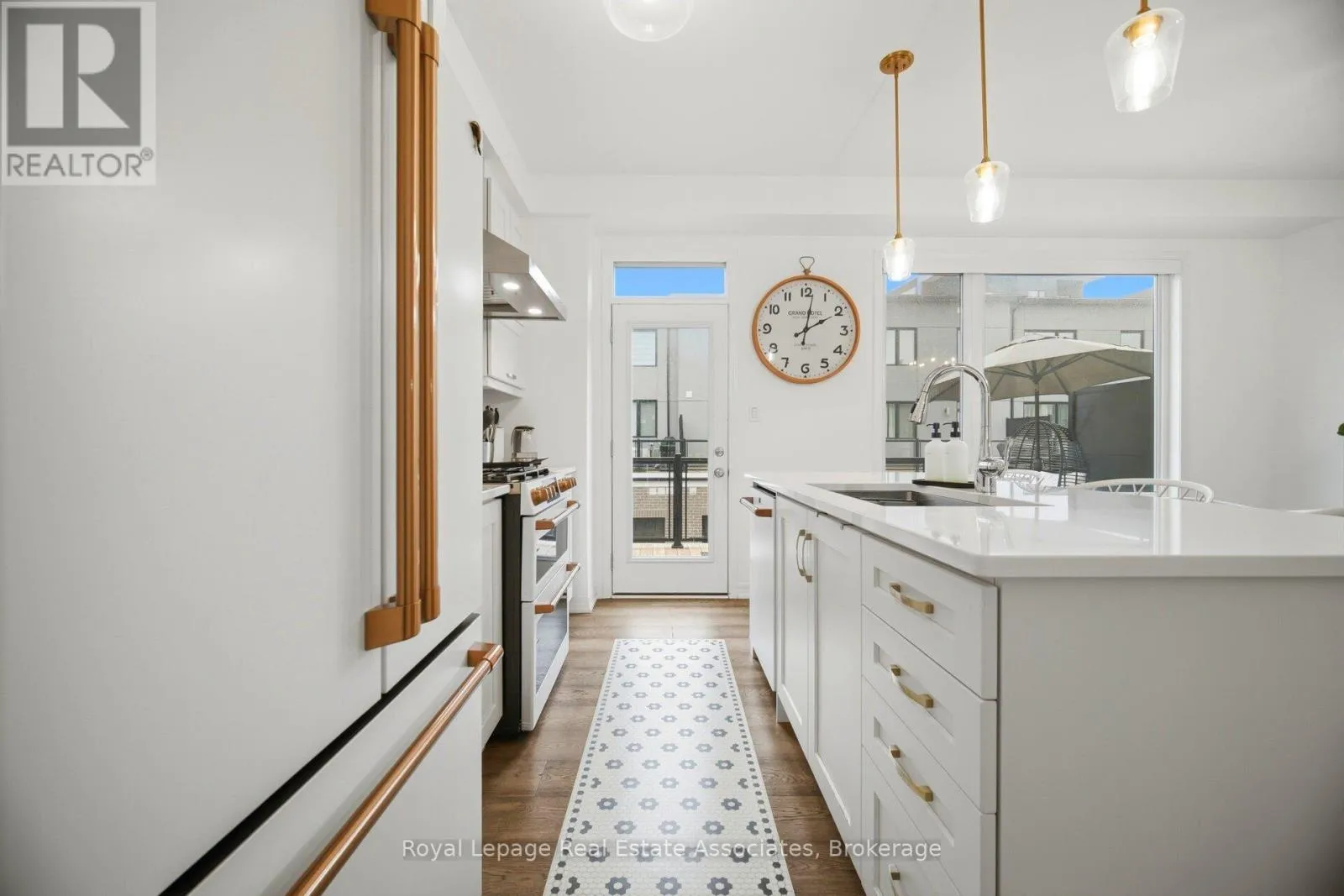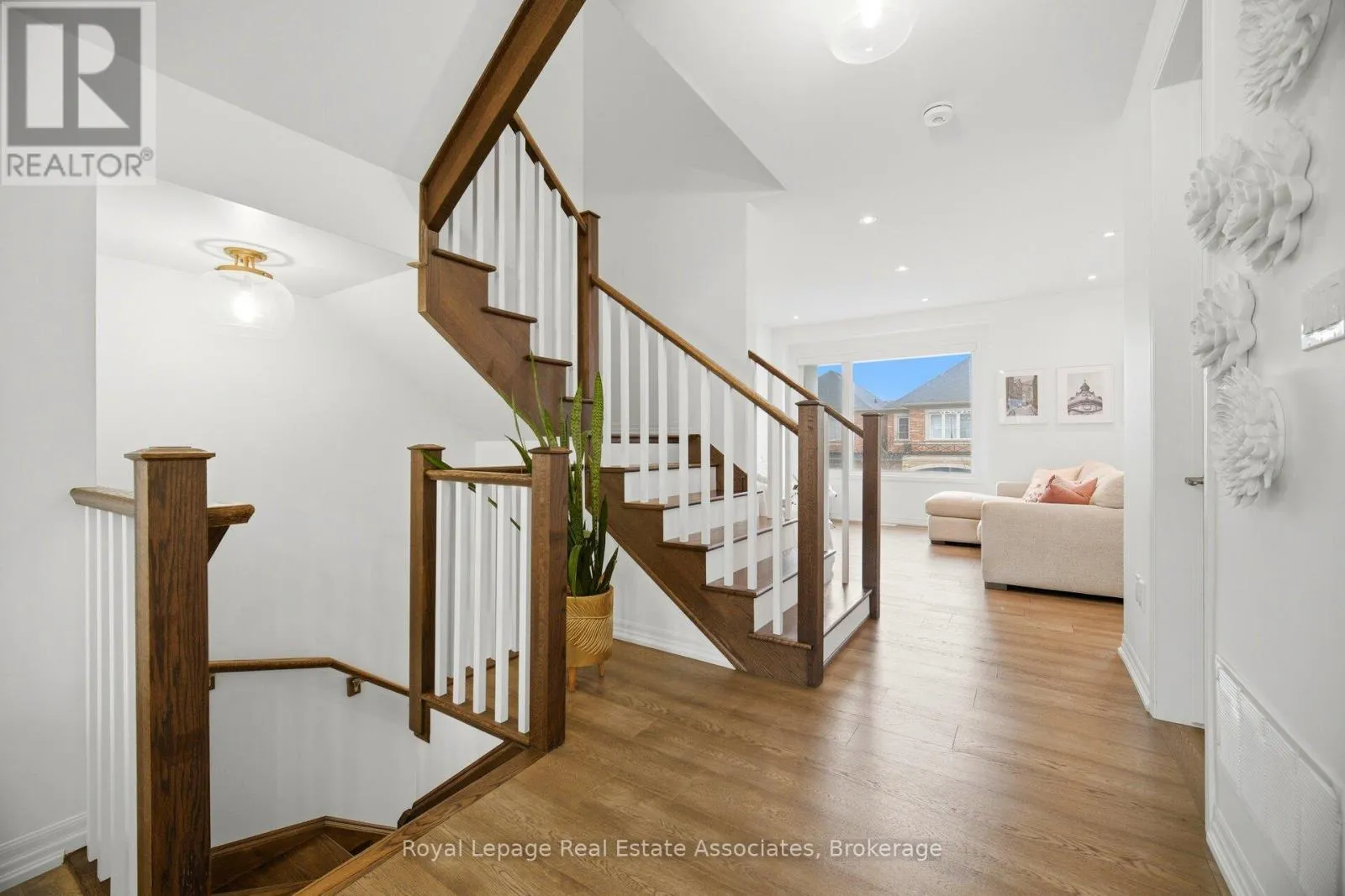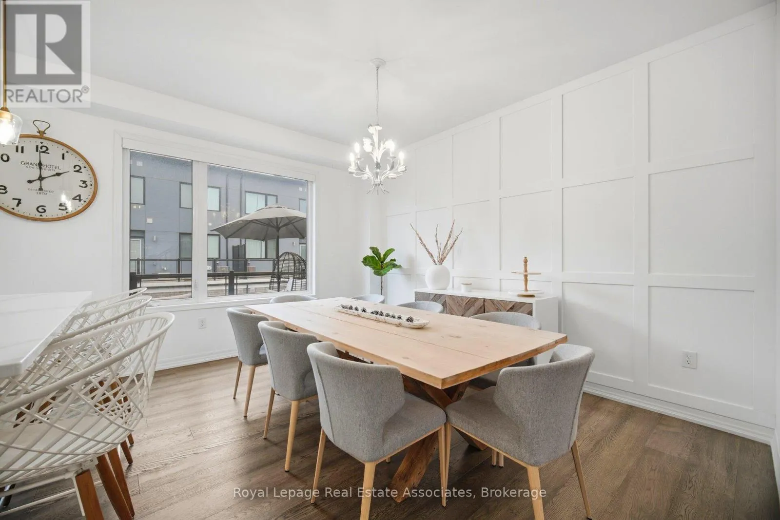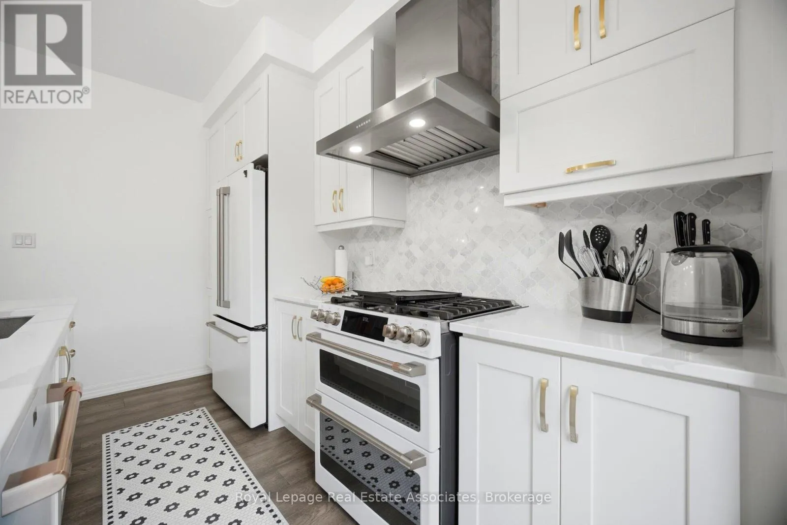 Dundas St E - Post Road - Huguenot Welcome to this exceptional H O M E in the prestigious Joshua Meadows / Uptown Core community of North Oakville, where refined design meets modern convenience with 2064 SQFT. A Perfectly positioned just moments from major highways, top-rated schools, upscale shopping, dining, and scenic parks and trails.This beautifully curated home showcases a sophisticated, carpet-free main and second level, complemented by 9-foot ceilings and an upgraded staircase that adds architectural elegance. The space is further enhanced by pot lighting and designer light fixtures throughout, creating a bright and elevated atmosphere. The main floor offers a seamless blend of style and functionality, complete with a chic powder room featuring a contemporary vanity, and remote-controlled window coverings for added comfort and convenience.At the heart of the home is a stunning, chef-inspired kitchen featuring premium GE Café appliances, including a 6-burner gas range, double-door refrigerator, dishwasher, and sleek range hood - perfect for both everyday living and upscale entertaining. The space is further elevated with a walk-out to a spacious private balcony, offering an ideal setting for outdoor dining, relaxation, or hosting guests. Walk up to the 3rd level Retreat to the luxurious primary suite, complete with remote-controlled window coverings, a spa-inspired 3-piece ensuite, and a custom-designed walk-in closet with built-in organizers. Additional bedrooms are thoughtfully appointed, offering both comfort and practicality, along with access to a beautifully finished 4-piece bathroom.Additional premium features include an Ecobee smart thermostat, three mounted TV brackets, garage door opener, and a well-equipped two-car garage with integrated tire storage. An exceptional opportunity to own a refined, move-in-ready home in one of Oakville's most desirable and rapidly growing communities. (id:27476)