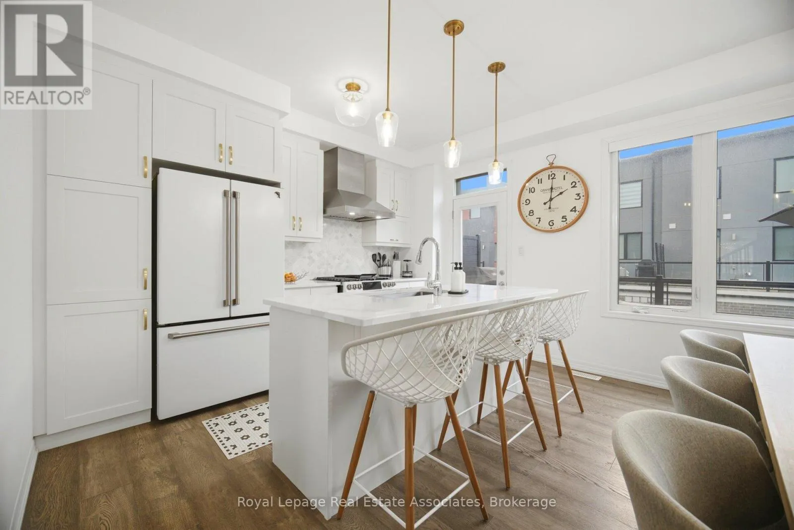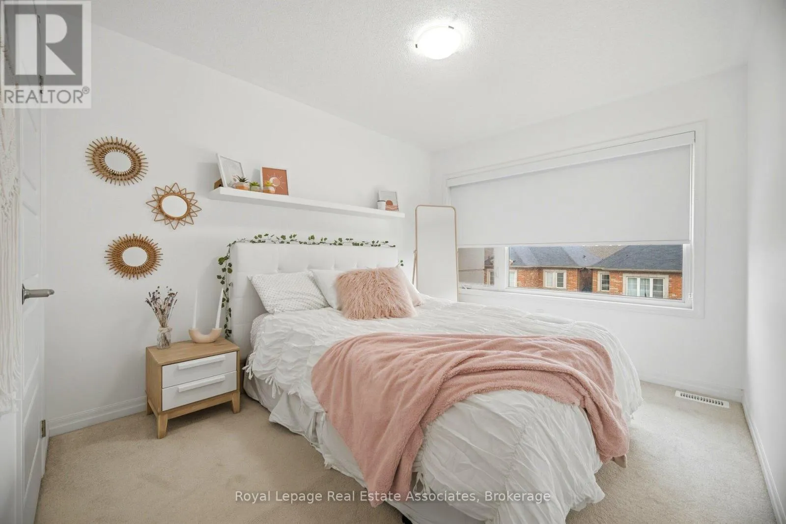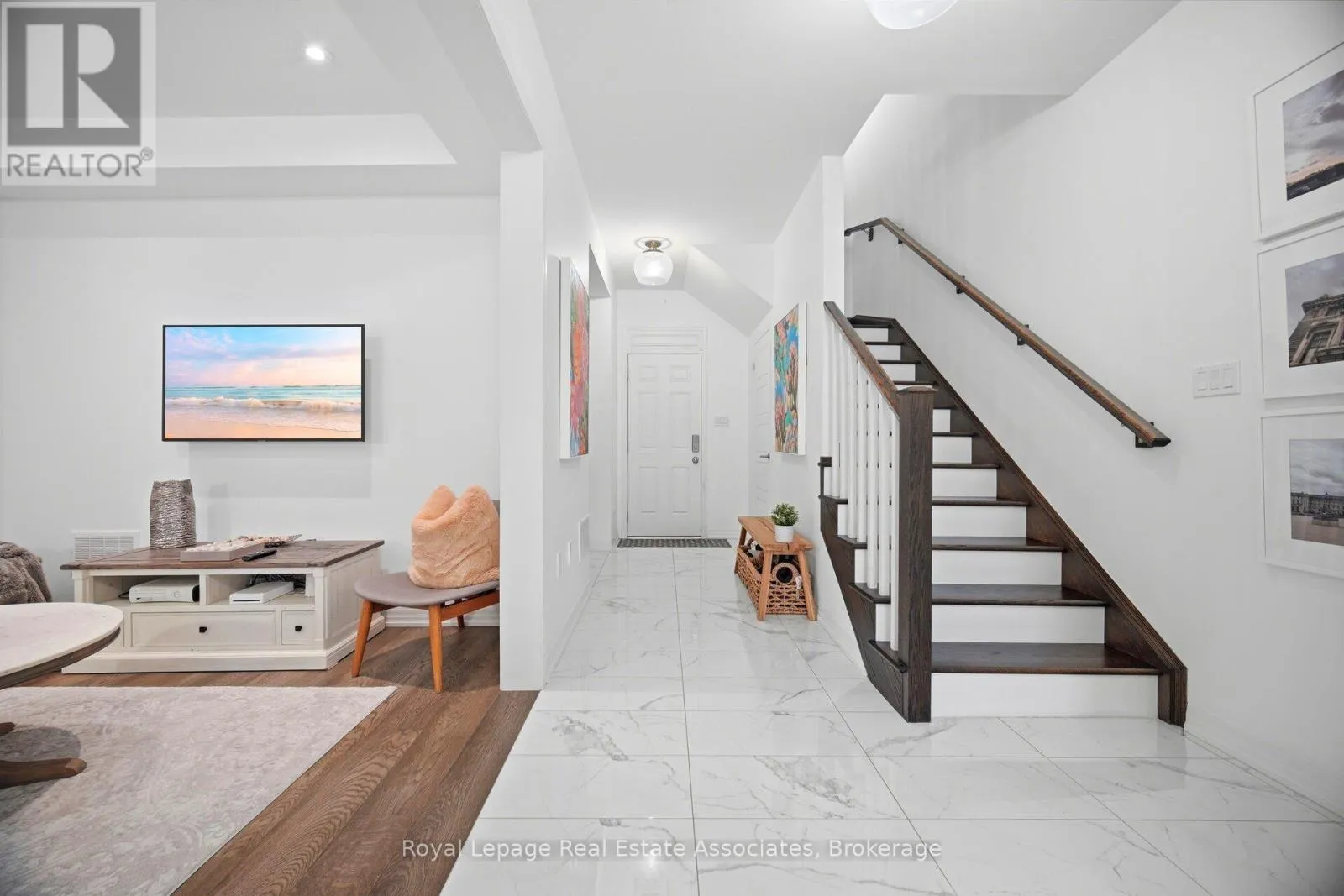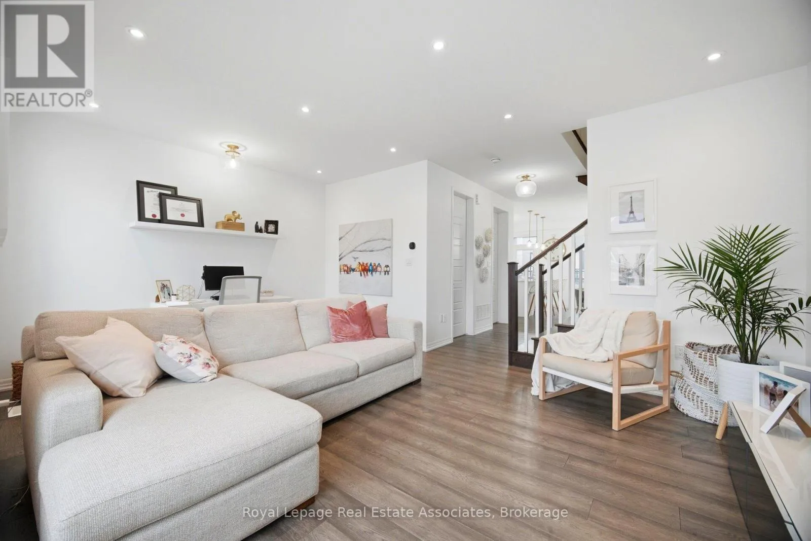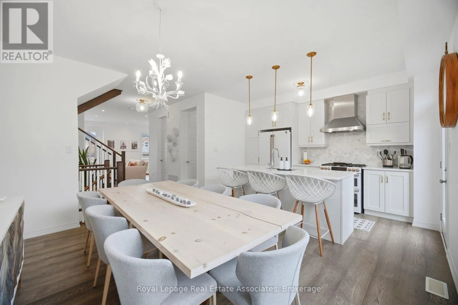 Dundas St E - Post Road - Huguenot Welcome to this exceptional H O M E in the prestigious Joshua Meadows / Uptown Core community of North Oakville, where refined design meets modern convenience with 2064 SQFT. A Perfectly positioned just moments from major highways, top-rated schools, upscale shopping, dining, and scenic parks and trails.This beautifully curated home showcases a sophisticated, carpet-free main and second level, complemented by 9-foot ceilings and an upgraded staircase that adds architectural elegance. The space is further enhanced by pot lighting and designer light fixtures throughout, creating a bright and elevated atmosphere. The main floor offers a seamless blend of style and functionality, complete with a chic powder room featuring a contemporary vanity, and remote-controlled window coverings for added comfort and convenience.At the heart of the home is a stunning, chef-inspired kitchen featuring premium GE Café appliances, including a 6-burner gas range, double-door refrigerator, dishwasher, and sleek range hood - perfect for both everyday living and upscale entertaining. The space is further elevated with a walk-out to a spacious private balcony, offering an ideal setting for outdoor dining, relaxation, or hosting guests. Walk up to the 3rd level Retreat to the luxurious primary suite, complete with remote-controlled window coverings, a spa-inspired 3-piece ensuite, and a custom-designed walk-in closet with built-in organizers. Additional bedrooms are thoughtfully appointed, offering both comfort and practicality, along with access to a beautifully finished 4-piece bathroom.Additional premium features include an Ecobee smart thermostat, three mounted TV brackets, garage door opener, and a well-equipped two-car garage with integrated tire storage. An exceptional opportunity to own a refined, move-in-ready home in one of Oakville's most desirable and rapidly growing communities. (id:27476)