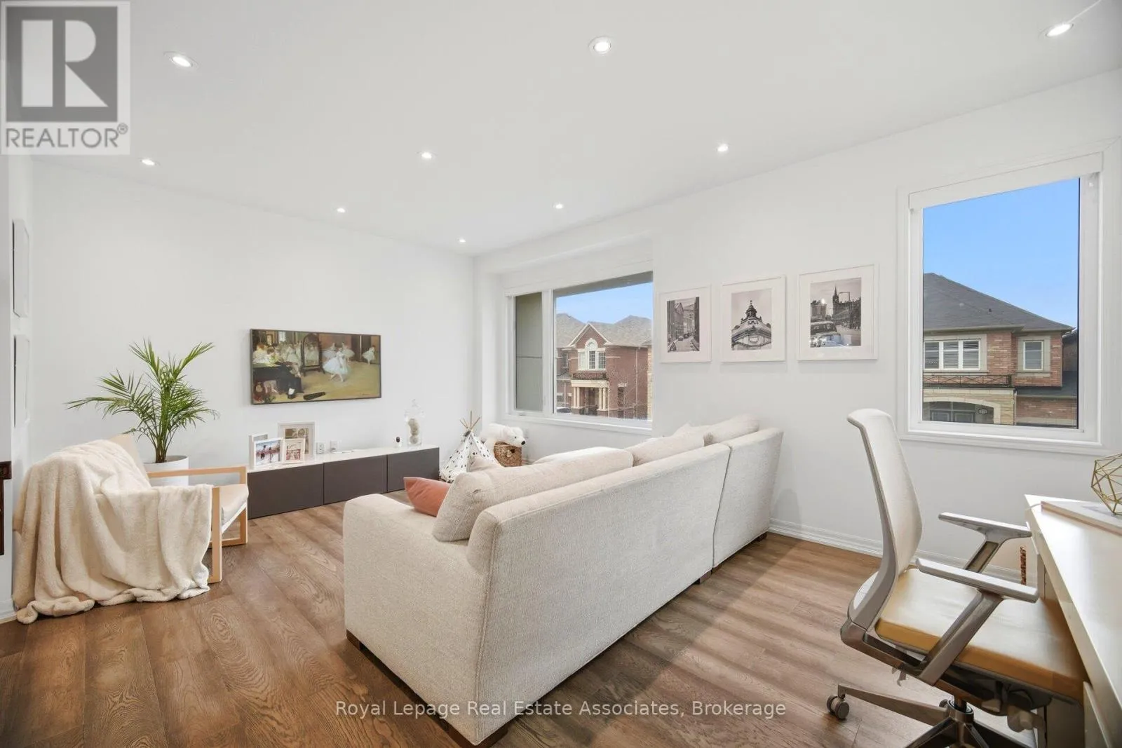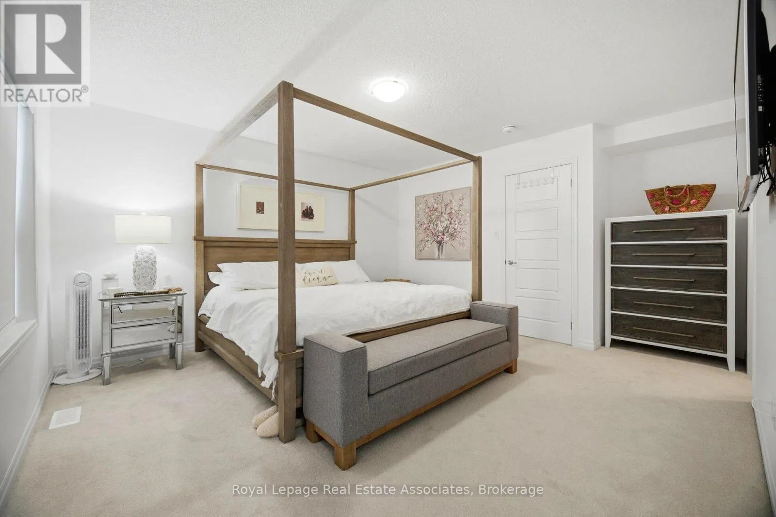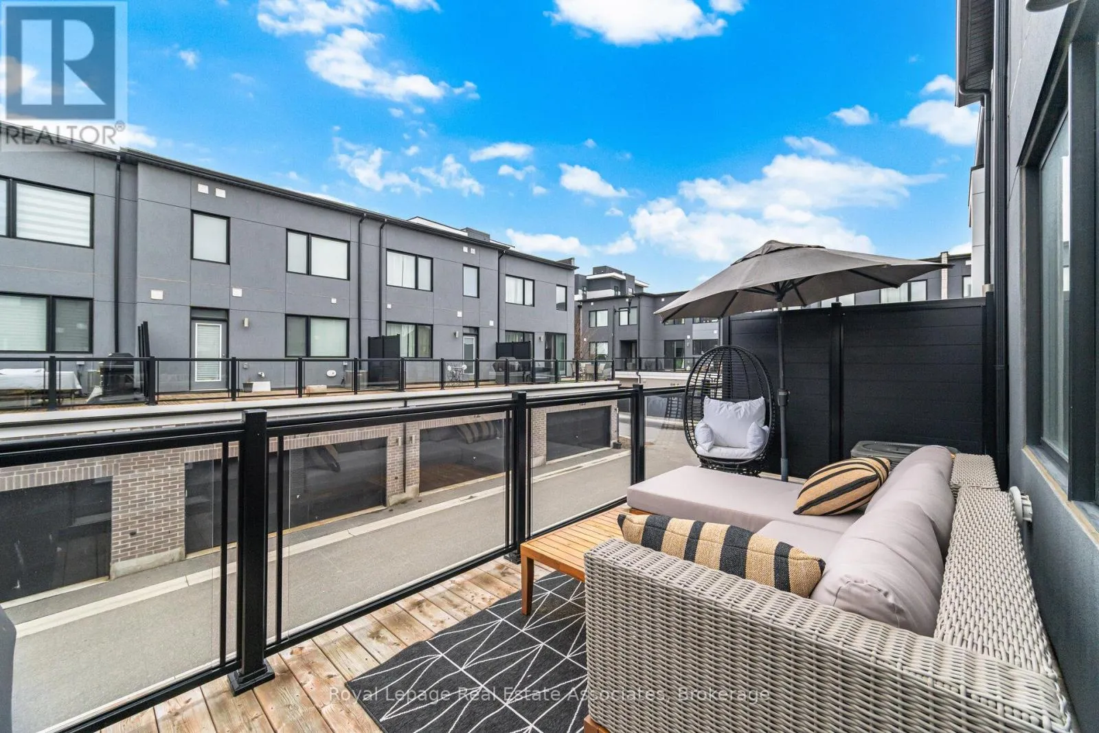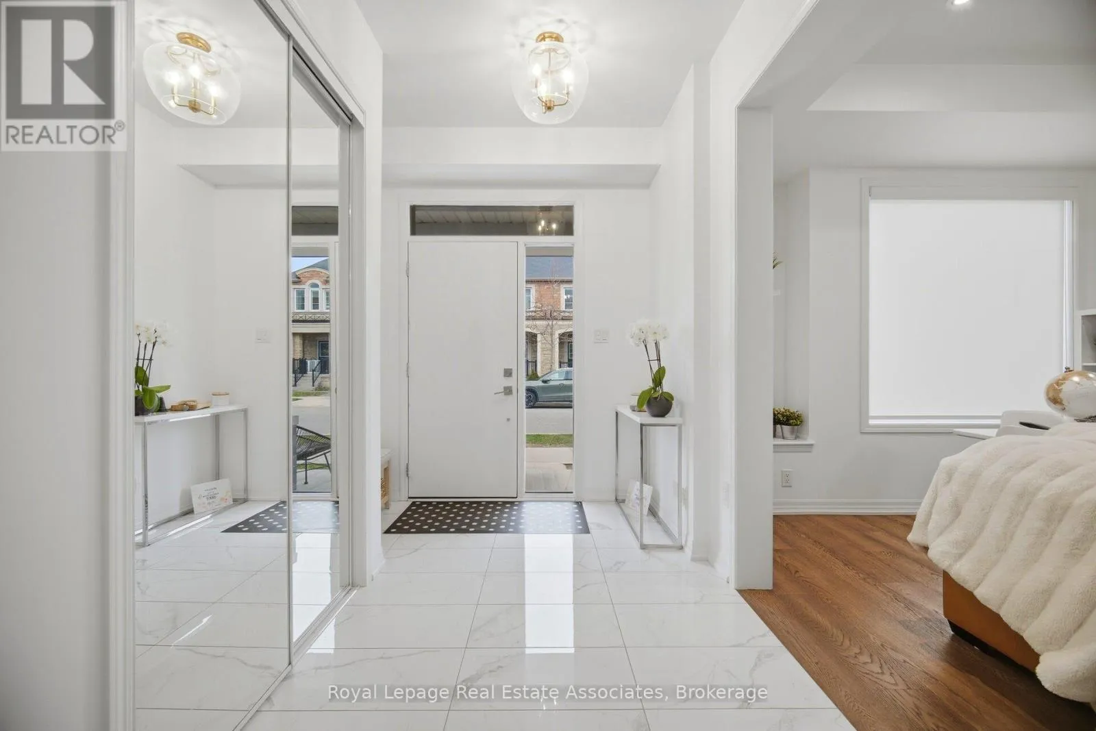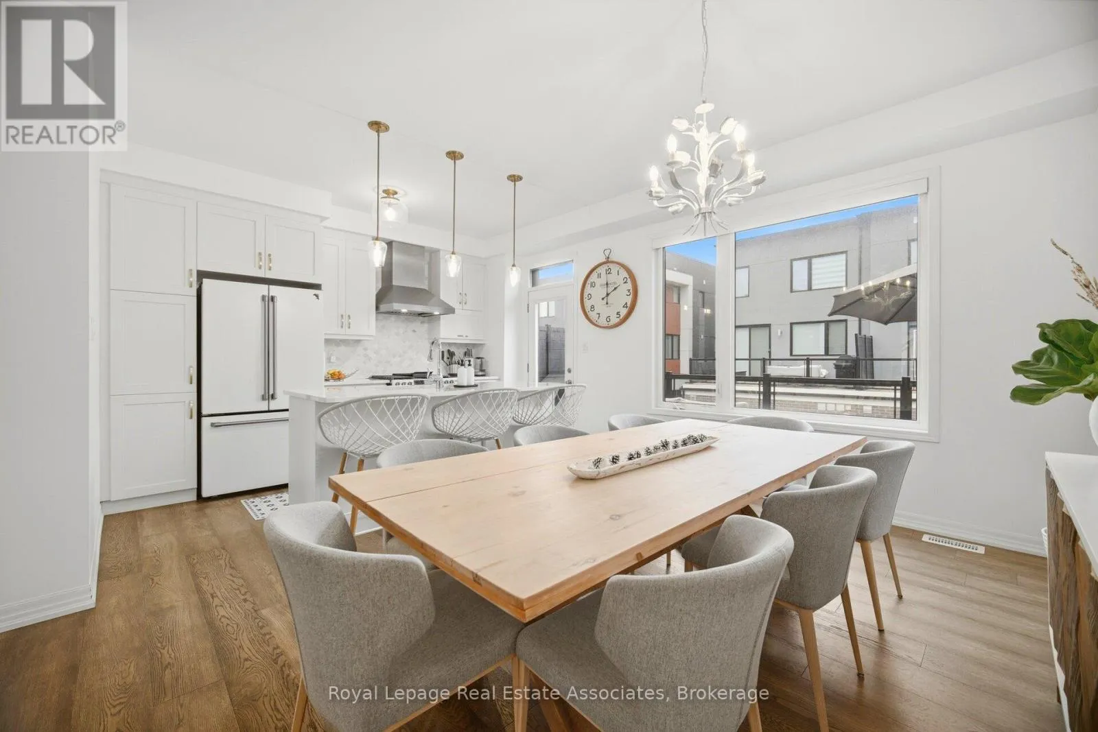 Dundas St E - Post Road - Huguenot Welcome to this exceptional H O M E in the prestigious Joshua Meadows / Uptown Core community of North Oakville, where refined design meets modern convenience with 2064 SQFT. A Perfectly positioned just moments from major highways, top-rated schools, upscale shopping, dining, and scenic parks and trails.This beautifully curated home showcases a sophisticated, carpet-free main and second level, complemented by 9-foot ceilings and an upgraded staircase that adds architectural elegance. The space is further enhanced by pot lighting and designer light fixtures throughout, creating a bright and elevated atmosphere. The main floor offers a seamless blend of style and functionality, complete with a chic powder room featuring a contemporary vanity, and remote-controlled window coverings for added comfort and convenience.At the heart of the home is a stunning, chef-inspired kitchen featuring premium GE Café appliances, including a 6-burner gas range, double-door refrigerator, dishwasher, and sleek range hood - perfect for both everyday living and upscale entertaining. The space is further elevated with a walk-out to a spacious private balcony, offering an ideal setting for outdoor dining, relaxation, or hosting guests. Walk up to the 3rd level Retreat to the luxurious primary suite, complete with remote-controlled window coverings, a spa-inspired 3-piece ensuite, and a custom-designed walk-in closet with built-in organizers. Additional bedrooms are thoughtfully appointed, offering both comfort and practicality, along with access to a beautifully finished 4-piece bathroom.Additional premium features include an Ecobee smart thermostat, three mounted TV brackets, garage door opener, and a well-equipped two-car garage with integrated tire storage. An exceptional opportunity to own a refined, move-in-ready home in one of Oakville's most desirable and rapidly growing communities. (id:27476)