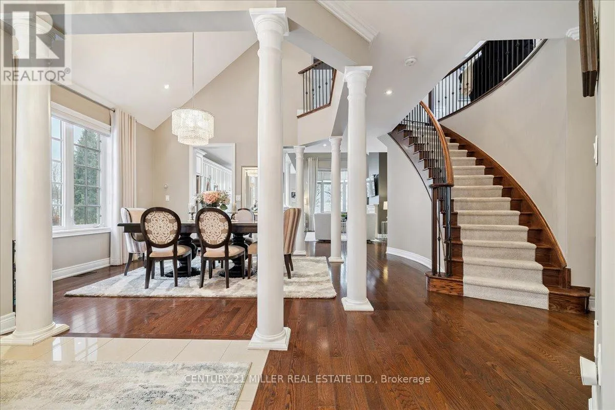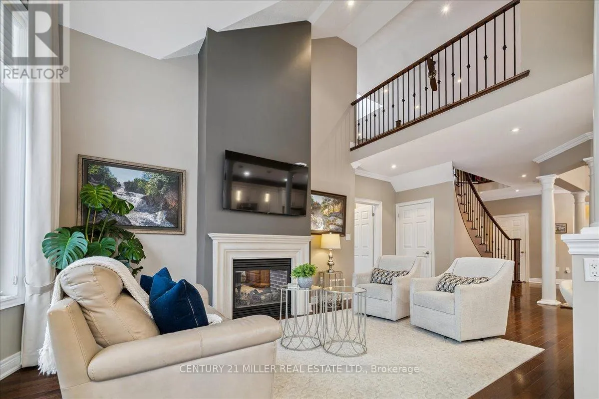 Colonel William Parkway/Liptay Ave Tucked within an exclusive enclave, this rare and sought-after bungaloft offers premium sunset rear exposure overlooking Bronte Creek Provincial Park. With over 3,900 sq. ft. of bright, open living space, this executive family home showcases hardwood floors, pot lights, and upgraded fixtures throughout. A formal dining room with cathedral ceilings flows into the stunning living room with soaring ceilings and a gas fireplace, seamlessly connected to the designer kitchen featuring two-tone cabinetry, stainless steel appliances, granite counters, island with breakfast bar, backsplash, valance lighting, and walkout to a private yard with lush greenery and exposed aggregate patio. The main floor primary suite offers a walk-in closet, two-way fireplace, and spa-like ensuite with double sinks, soaker tub, and glass shower. A versatile second main-level bedroom or home office features semi-ensuite access to an updated 3-piece bathroom with heated floors, while the convenient main floor laundry enhances everyday functionality. Upstairs, a bright loft with skylight overlooks the living and dining areas below, along with an additional bedroom and a well-appointed 4-piece bath. The professionally finished lower level offers a spacious rec room with a separate family room area featuring an electric fireplace, a breakfast area, and a dedicated gym space, along with two additional bedrooms, a 4-piece bath, and a separate storage room. Double garage with inside entry, double driveway and exposed aggregate walkway. Close to hiking and biking trails, parks, schools, shopping. Minutes to Bronte GO Station, near Oakville Trafalgar Hospital and easy access to QEW and 407. Furnace (2020). (id:27476)