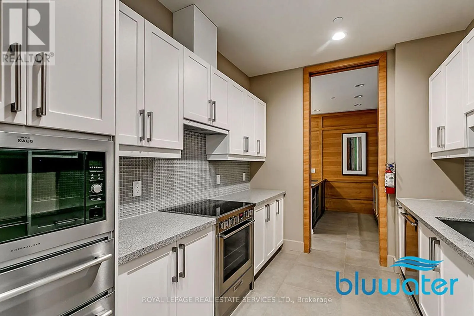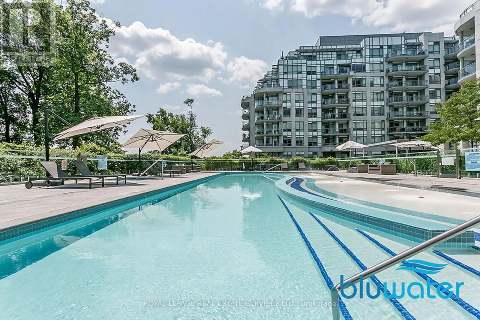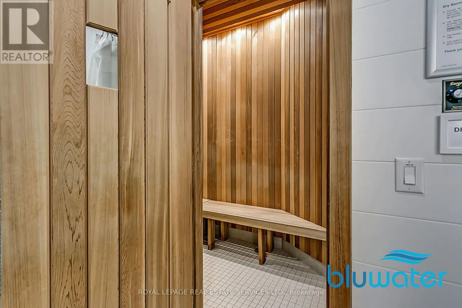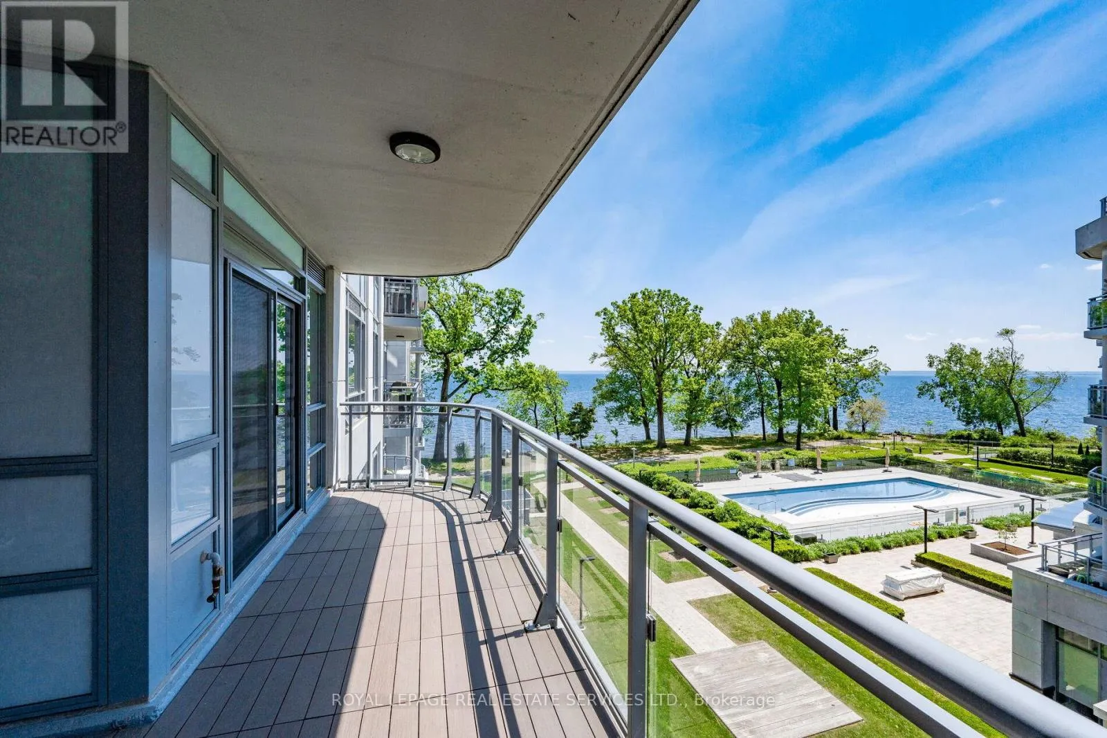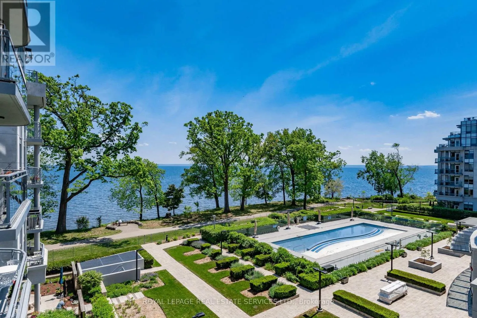 Burloak Drive To Lakeshore Road W Welcome to Bluwater Condominiums, known for its exceptional standard of lakeside living, outstanding lifestyle amenities, and beautifully designed surroundings. This stunning 2-bedroom plus den, 2-bathroom suite offers approximately 1,150 square feet of refined living space, with breathtaking views of Lake Ontario and manicured gardens from every window and the private balcony. The home showcases tasteful designer finishes throughout, featuring 9-foot ceilings, hardwood flooring, tray ceilings, pot lights, elegant light fixtures, and custom Hunter Douglas blinds. The gourmet kitchen is thoughtfully designed with custom cabinetry, extended upper cabinets, high-end appliances, granite countertops, under-cabinet lighting, and a convenient breakfast bar. The open-concept living and dining area is perfect for entertaining, complete with a Dimplex electric fireplace, floor-to-ceiling windows, and a walkout to an oversized balcony. The spacious primary bedroom includes a large walk-in closet, an additional closet, and direct balcony access. The spa-inspired 5-piece ensuite features a glass walk-in shower, soaker tub, and double vanity. A well-sized second bedroom with a double-door closet and a versatile open-concept den provide additional comfort and flexibility. Additional highlights include a stylish 3-piece main bathroom, a double-door hallway closet, and a large laundry/storage room. The unit also comes with two side-by-side underground parking spaces, a storage locker, and a gas line for a BBQ. Residents enjoy resort-style amenities, including 24/7 concierge service, an outdoor pool, indoor hot tub and sauna, fitness centre, yoga studio, party room, guest suite, social activities, outdoor dining and lounge areas, and underground visitor parking. Experience luxurious lakeside living at its finest. (id:27476)