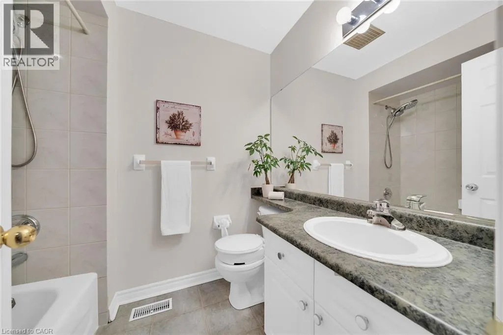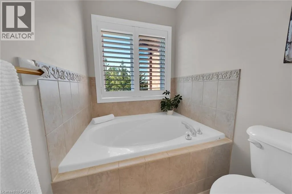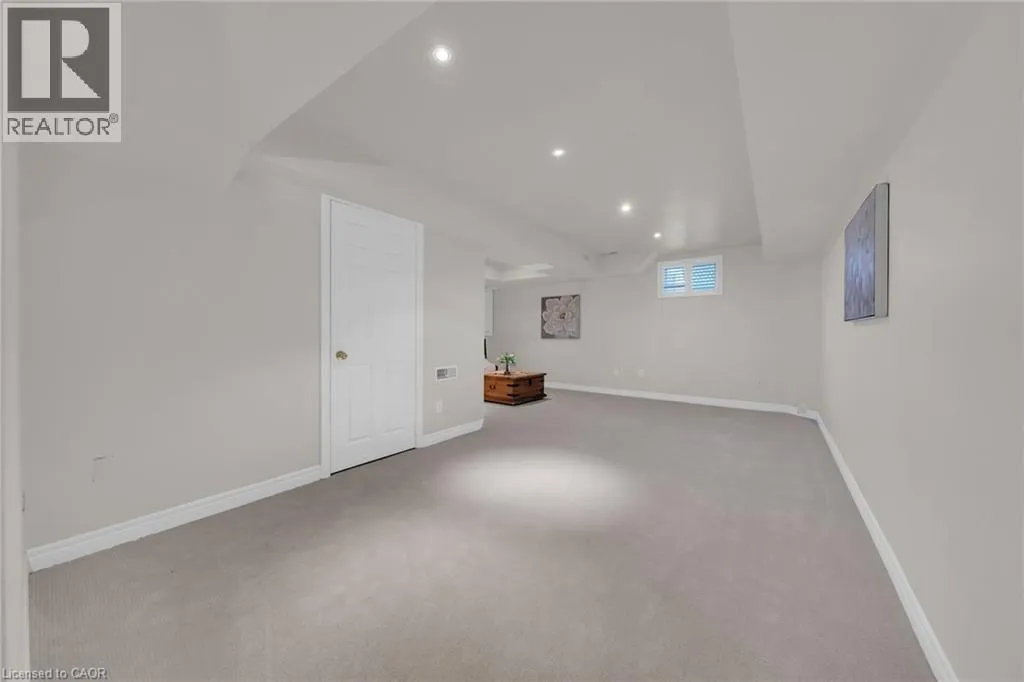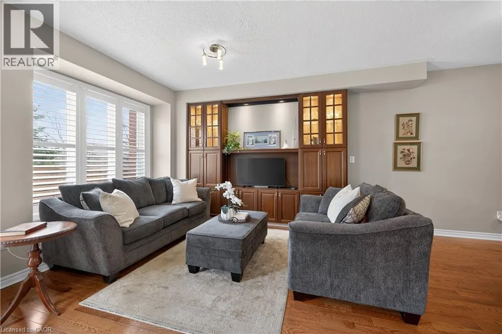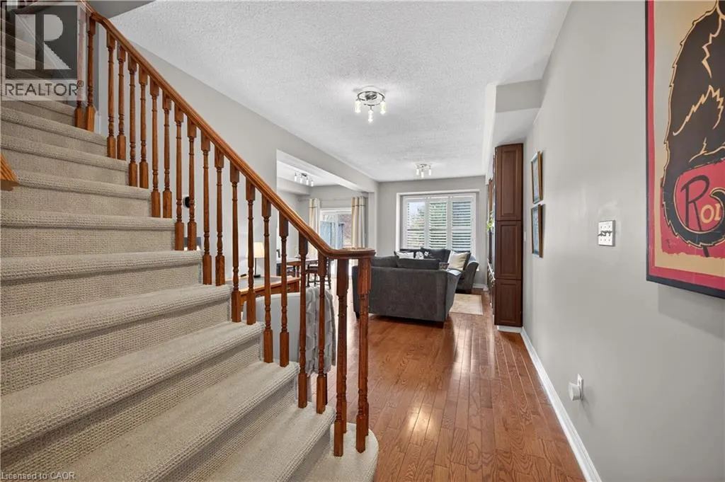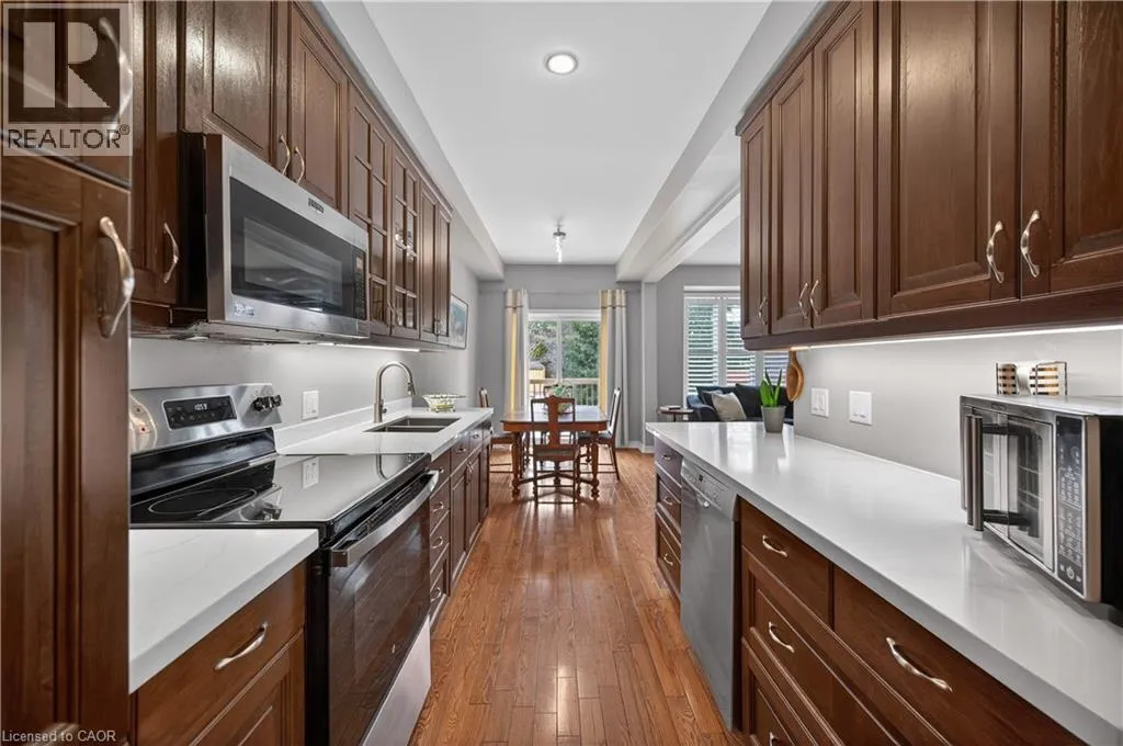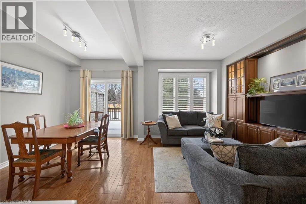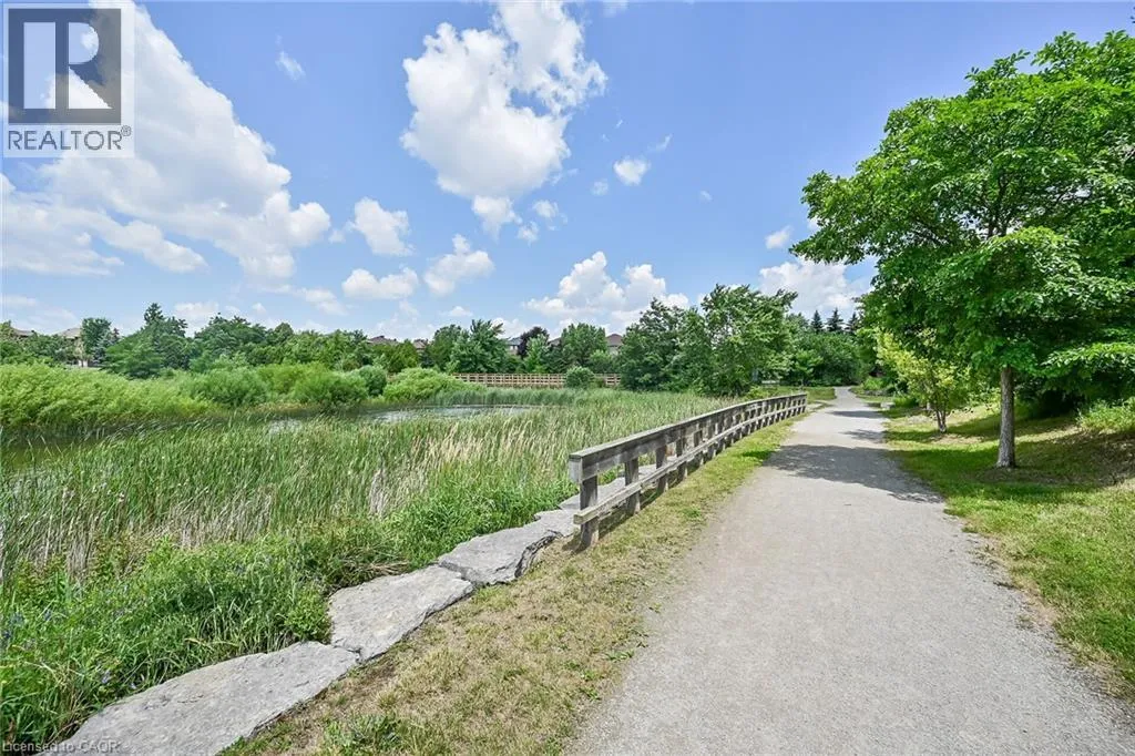 Off Eighth Line, North of Glenashton This is a beautifully maintained home in one of Oakvilleâs most attractive small private enclaves of town houses tucked away overlooking Morrison Creek. Immaculate, it has an open concept main level with hardwood floors and custom California shutters throughout. Walking in through the convenient garage interior door leads to the ground floor. The modern kitchen has fine quartz countertops, under-cabinet lighting and plenty of cupboard storage. A feature of the spacious living/dining room is the custom entertainment unit with built in lighting. Sliding glass doors, lead out from the dining area to a private deck and ground level patio with green space around and beyond. The upstairs landing has a large double linen closet. The three generous bedrooms have clothes closets in two, with a walk-in and a double closet in the master bedroom along with a four piece ensuite bathroom. The versatile finished basement has lots of potential for adaptation with a private full bathroom and plenty of room. The location in N.E. Oakville is directly connected to the Morrison Creek trail system and parks, close to Iroquois Ridge Community Center and local schools. The QEW, the 403 and the GO station are al within easy reach for the daily commute. This turn-key home is ready for you. (id:27476)