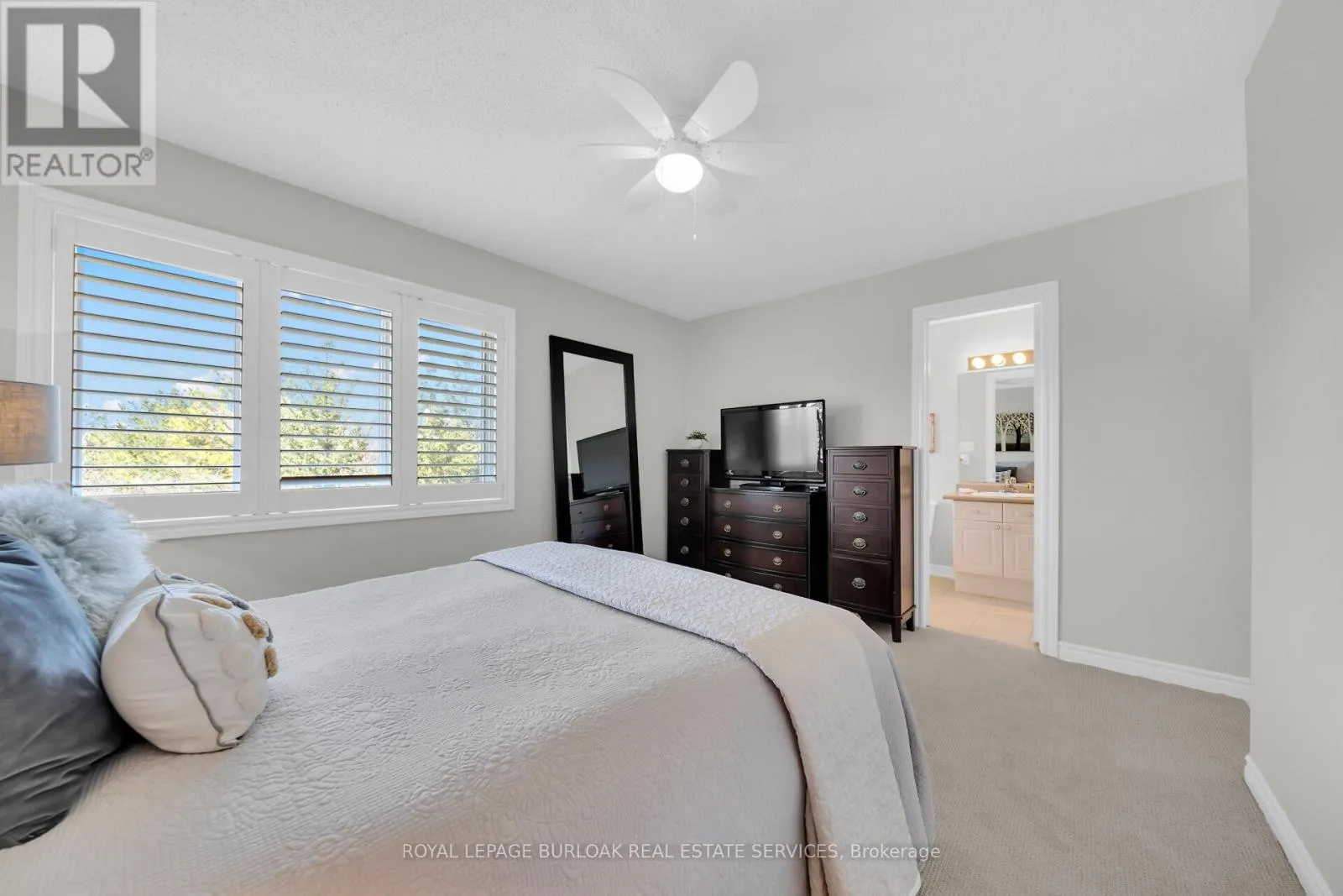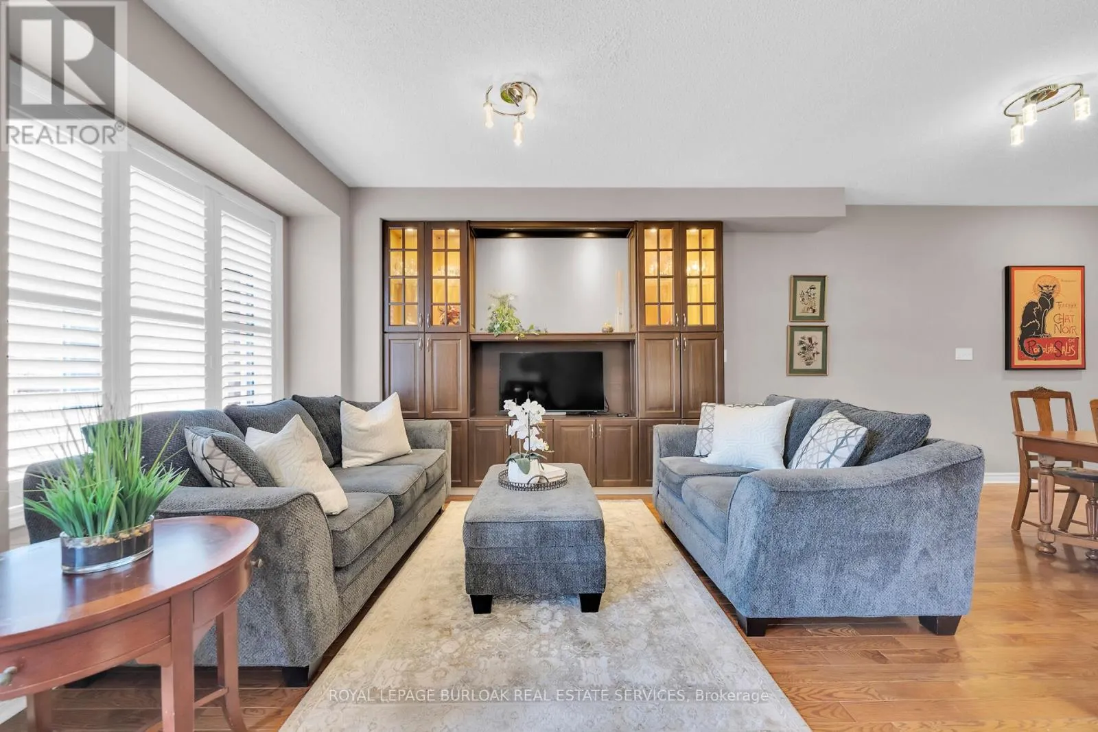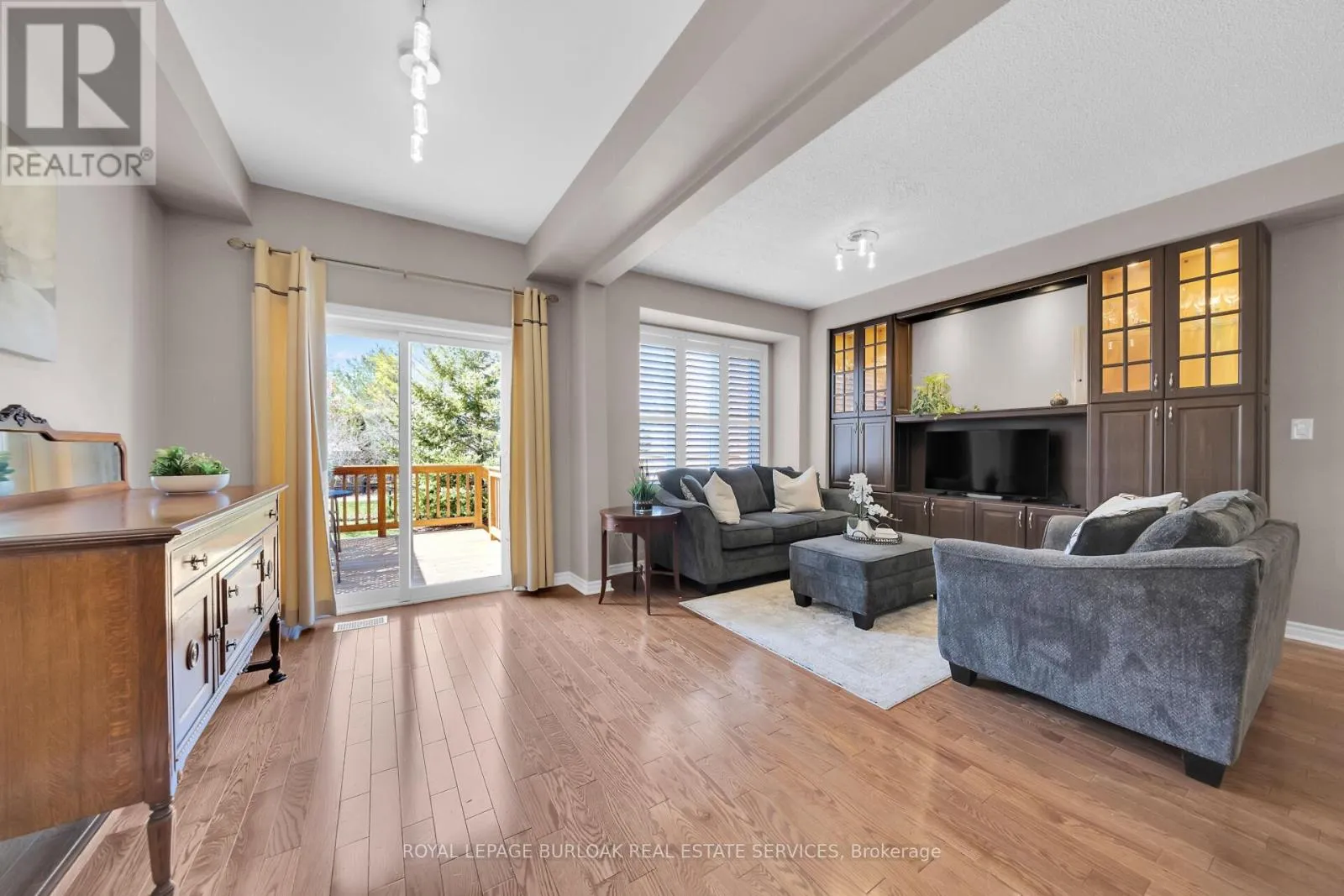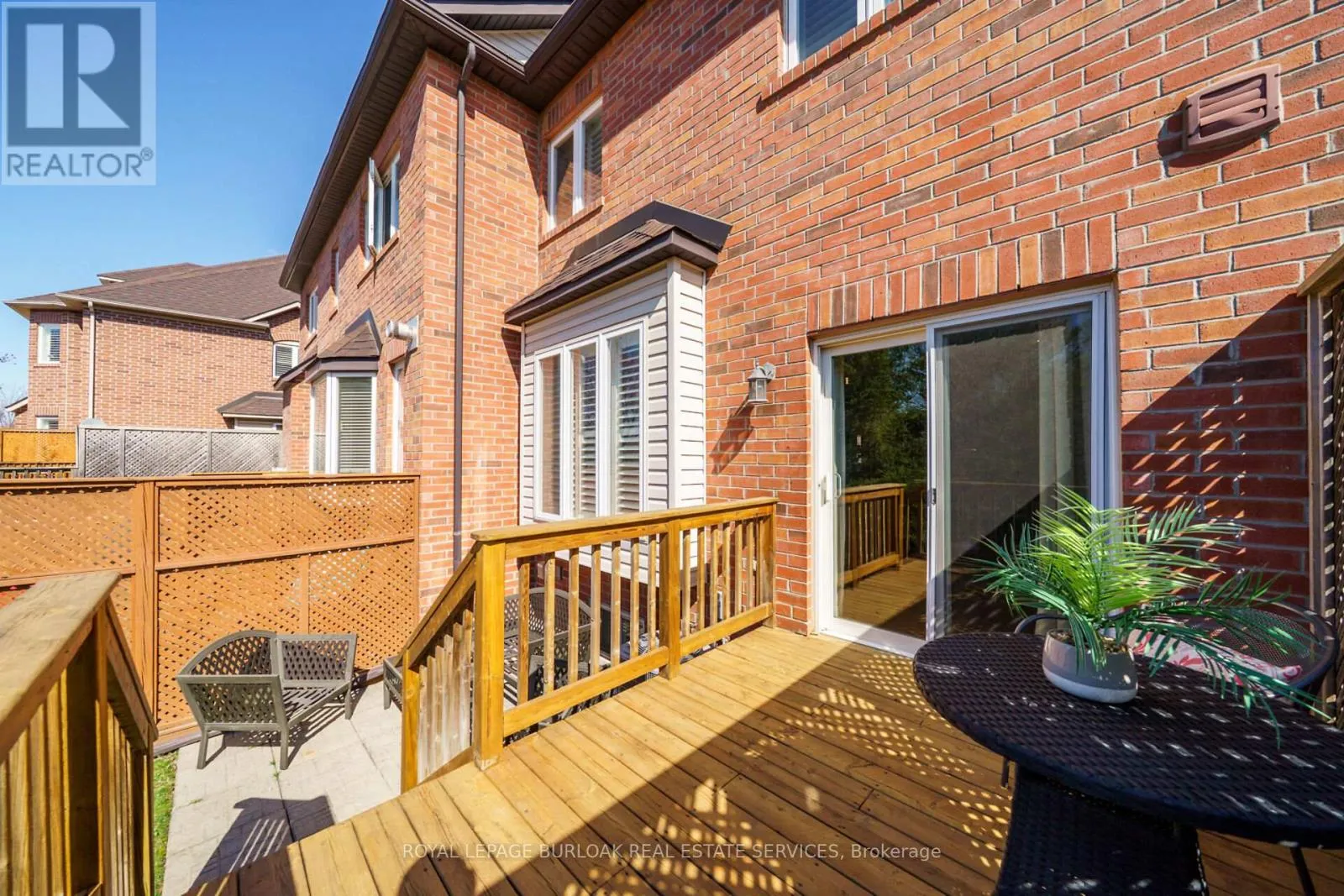 Cross Streets: Eighth Line & North Ridge Trail. ** Directions: Off Eighth Line, North of Glenashton. This is a beautifully maintained home in one of Oakville's most attractive small private enclaves of town houses tucked away overlooking Morrison Creek. Immaculate, it has an open concept main level with hardwood floors and custom California shutters throughout. Walking in through the convenient garage interior door leads to the ground floor. The modern kitchen has fine quartz countertops, under-cabinet lighting and plenty of cupboard storage. A feature of the spacious living/dining room is the custom entertainment unit with built in lighting. Sliding glass doors, lead out from the dining area to a private deck and ground level patio with green space around and beyond. The upstairs landing has a large double linen closet. The three generous bedrooms have clothes closets in two, with a walk-in and a double closet in the master bedroom along with a four piece ensuite bathroom. The versatile finished basement has lots of potential for adaptation with a private full bathroom and plenty of room. The location in N.E. Oakville is directly connected to the Morrison Creek trail system and parks, close to Iroquois Ridge Community Center and local schools. The QEW, the 403 and the GO station are al within easy reach for the daily commute. This turn-key home is ready for you. (id:27476)