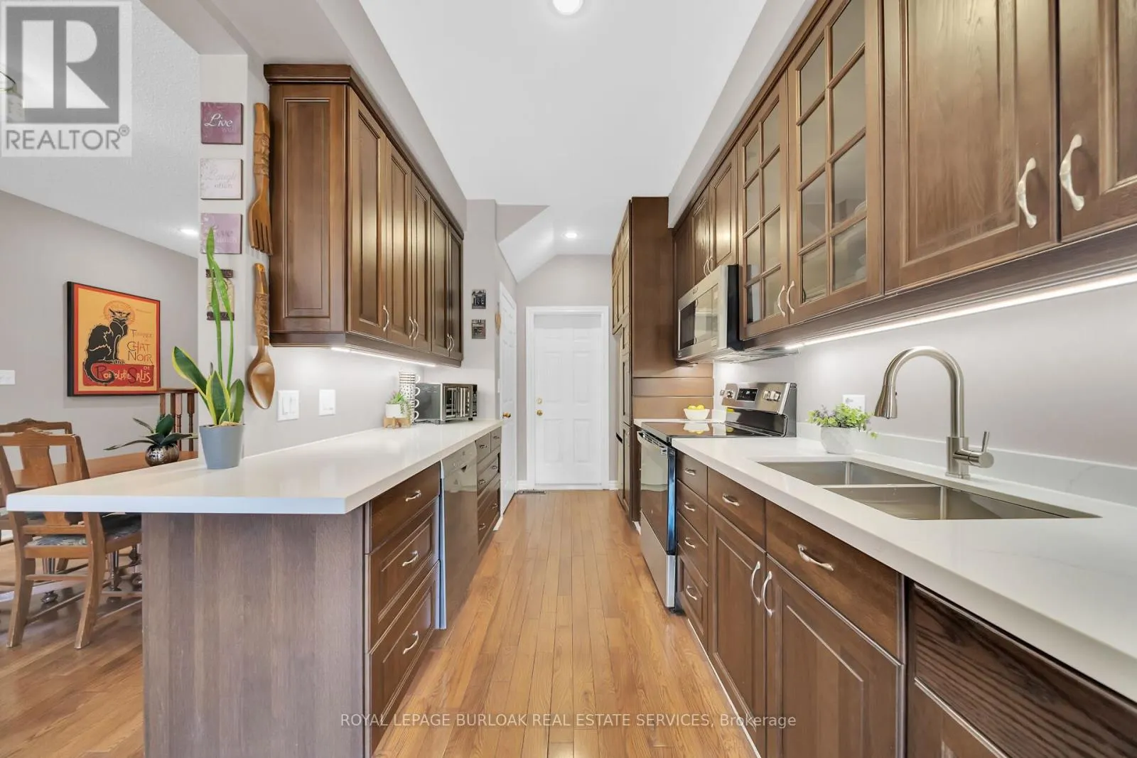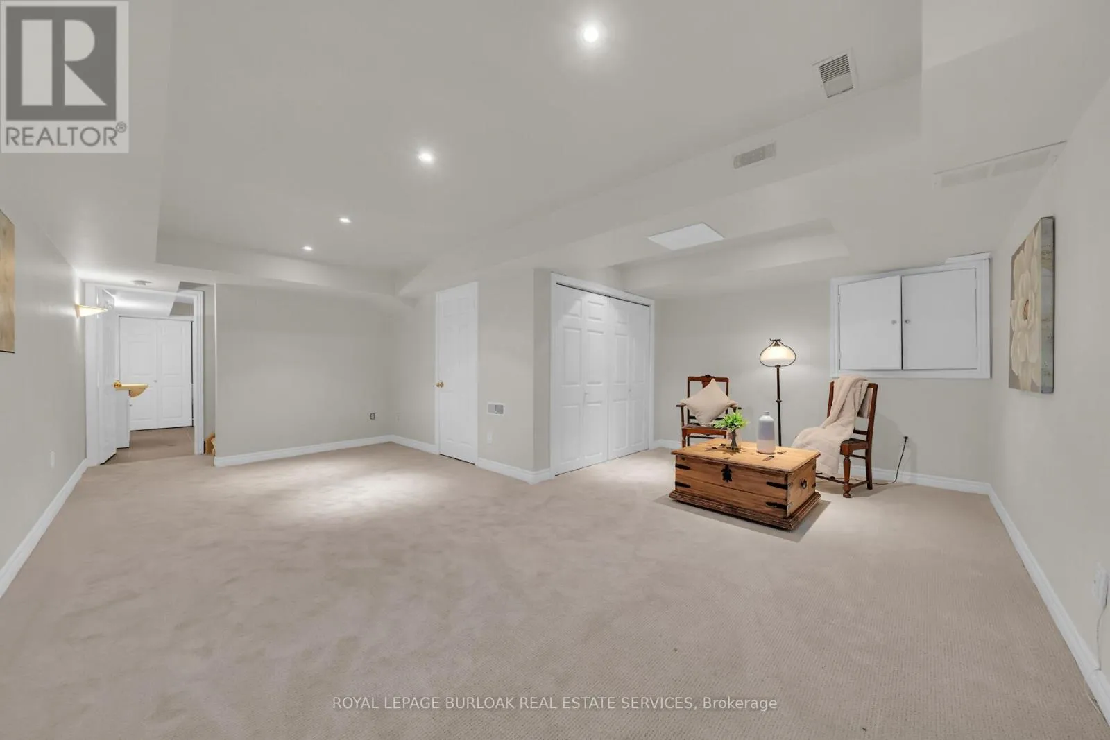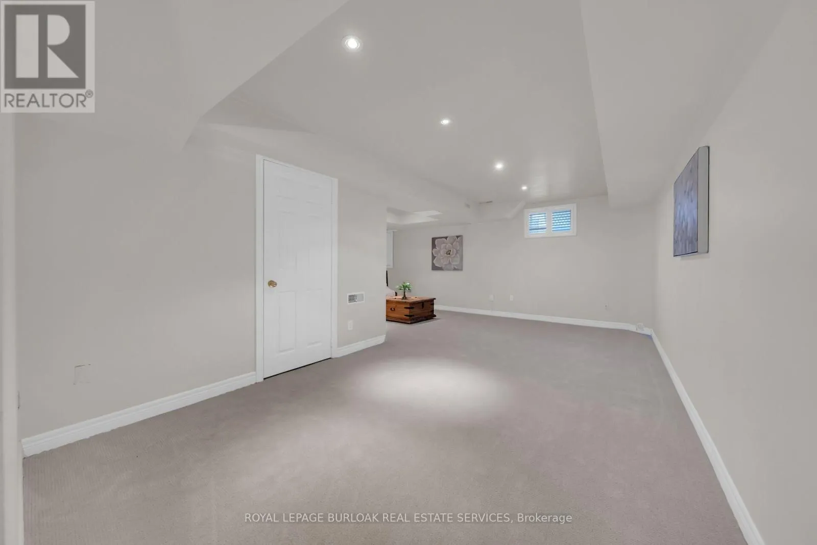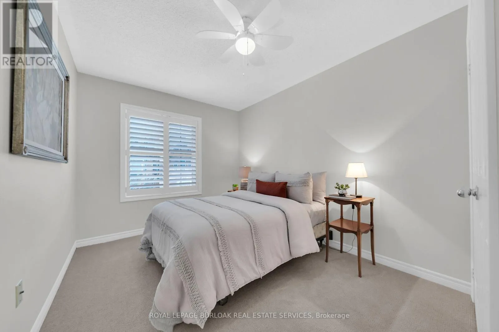 Cross Streets: Eighth Line & North Ridge Trail. ** Directions: Off Eighth Line, North of Glenashton. This is a beautifully maintained home in one of Oakville's most attractive small private enclaves of town houses tucked away overlooking Morrison Creek. Immaculate, it has an open concept main level with hardwood floors and custom California shutters throughout. Walking in through the convenient garage interior door leads to the ground floor. The modern kitchen has fine quartz countertops, under-cabinet lighting and plenty of cupboard storage. A feature of the spacious living/dining room is the custom entertainment unit with built in lighting. Sliding glass doors, lead out from the dining area to a private deck and ground level patio with green space around and beyond. The upstairs landing has a large double linen closet. The three generous bedrooms have clothes closets in two, with a walk-in and a double closet in the master bedroom along with a four piece ensuite bathroom. The versatile finished basement has lots of potential for adaptation with a private full bathroom and plenty of room. The location in N.E. Oakville is directly connected to the Morrison Creek trail system and parks, close to Iroquois Ridge Community Center and local schools. The QEW, the 403 and the GO station are al within easy reach for the daily commute. This turn-key home is ready for you. (id:27476)