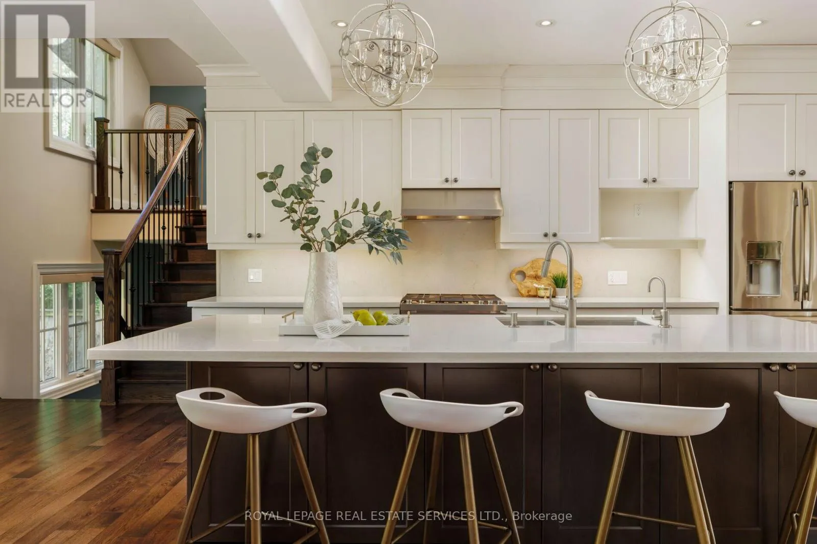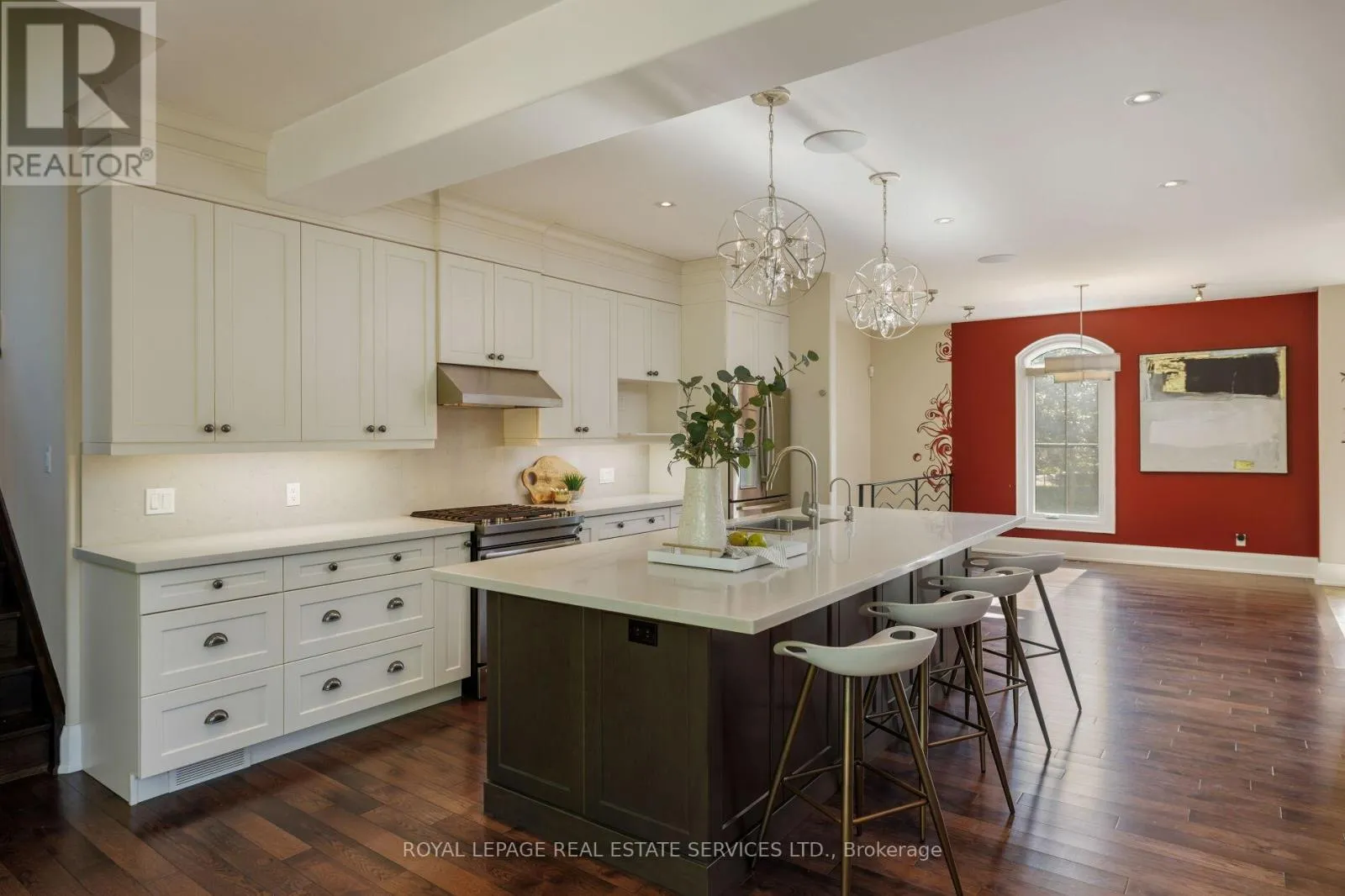 Cross Streets: Bridge & Sunset Dr. ** Directions: Rebecca- Sunset- Bridge. A remarkable lifestyle awaits in Oakville's highly sought-after West Oakville community, where every convenience is just steps away. This exquisite custom raised bungaloft, redesigned in 2016 by Keeren Designs, backs directly onto the scenic Donovan Bailey Trail & is only a 3-minute walk to the Queen Elizabeth Park Community & Cultural Centre. Enjoy nearby Bronte Harbour, Lake Ontario, waterfront parks, & Bronte Village's shops & restaurants, all just minutes away, with quick commuter access to Bronte GO Station & the QEW/403. Showcasing undeniable curb appeal, this luxury home features a stucco facade with accent shutters, stone steps leading to a covered entry with columns & iron railings, interlocking stone walkways, professional landscaping with mature trees, a 9-zone irrigation system, & exterior cameras. The private backyard retreat offers upper & lower stone patios, gardens with armour stone accents, evergreens, & direct trail access. Inside, the residence boasts 2+3 bedrooms, 2.5 bathrooms, & a versatile loft perfect as a bedroom, home office, or studio. The 2016 transformation added a gourmet kitchen, wide-plank hardwood, designer tiles, custom built-ins, deep trim, built-in speakers, & expandable Control4 smart home automation. Designed for comfort & entertaining, the open-concept main floor offers 9' ceilings, family room with gas fireplace, spacious dining room, & chef's kitchen with custom cabinetry, quartz counters, oversized island with seating for 6, high-end appliances, & a breakfast area with walkout to the backyard. The primary suite showcases 2 walk-in closets & a spa-inspired 4-piece ensuite with soaker tub & oversized glass shower. The finished lower level includes a large recreation room, 3 bright bedrooms, 3-piece bath with heated floor & glass shower, oversized laundry, & abundant storage. Upgrades include furnace, HRV, roof shingles (2016), & recently, some main floor windows updated, & addition of a custom 8' solid wood front entry door. (id:27476)