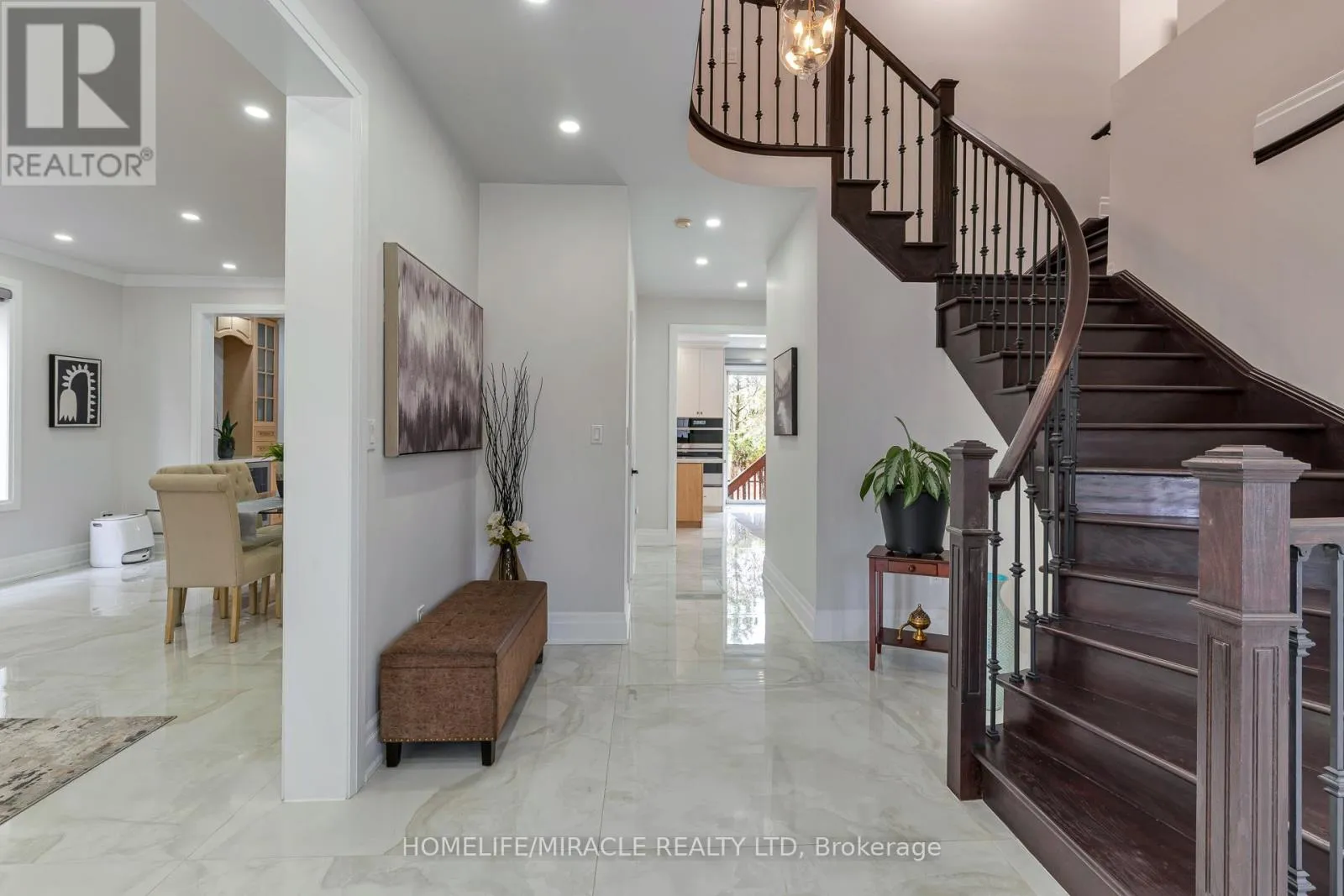 CALLOWAY / GLAZEBROOK Luxury and modern 4 bed,3.5 bath detach house situated on a premium lot backing onto trails and greenspace available for Sale in the prestigious and most sought-after Westmount community in Oakville. This fully renovated residence, transformed just 6 months ago with over $250,000 in premium upgrades, offers a rare turnkey opportunity for discerning buyers. Grand 4x4 designer tiles that flow seamlessly through the entrance, formal living and dining areas into a stunning, reimagined kitchen. Every detail has been curated to deliver both elegance and functionality. At the heart of the home is a custom Chef's kitchen, featuring top-of-the-line JennAir appliances, bespoke cabinetry, and impeccable finishes. A thoughtfully designed custom butler's pantry with quartz countertops adds both style and convenience-perfect for entertaining and everyday luxury. Upstairs, all bedrooms have been upgraded with rich hardwood flooring, creating a warm and cohesive living experience. The home's spa-inspired bathrooms elevate everyday living to a resort-like experience. Heated floors in all bathrooms Floor-to-ceiling designer tiling Luxurious steam spa Premium smart toilets Fully integrated smart home Smart-controlled lighting and motorized blinds throughout High-speed connectivity with LAN access in every room Enterprise-grade Wi-Fi powered by Ubiquiti equipment Additional highlights include: Pot lights throughout the entire home Recently upgraded heat pump and furnace, along with a 3-year-old water heater, ensuring efficiency and peace of mind This home is the perfect blend of luxury, technology, and thoughtful craftsmanship-ideal for buyers seeking a move-in-ready property with no compromises. A rare offering in Oakville-don't miss your opportunity to call this exceptional home yours. (id:27476)