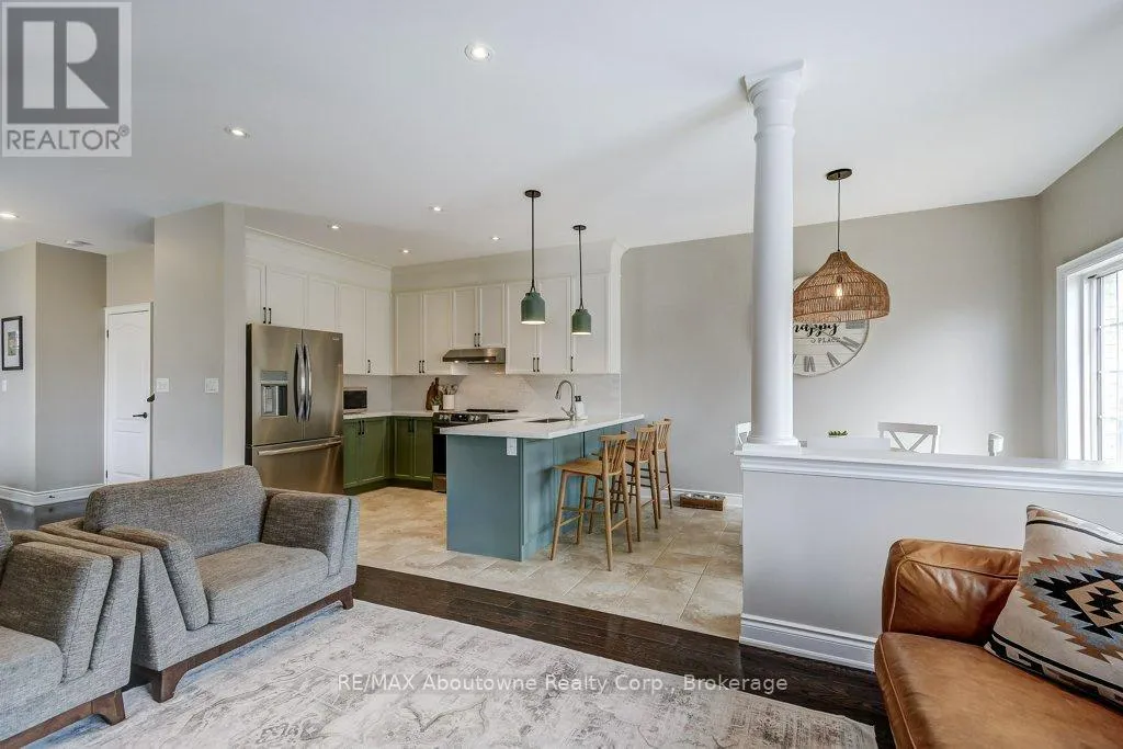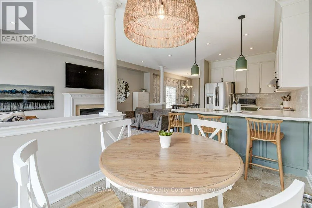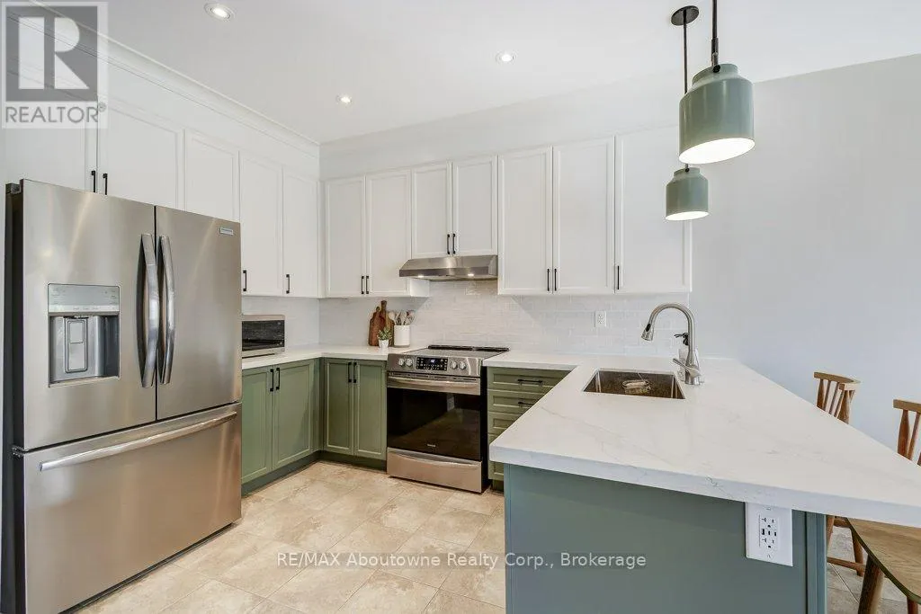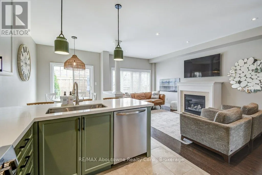 Cross Streets: Grand Oak to Greenwich. ** Directions: Dundas/Grand Oak to Greenwich. Welcome to this stunning executive end-unit Freehold Townhome in Oakville's highly sought-after Westmount community. This beautifully designed open-concept two-storey home offers 3+1 bedrooms and 3.5 bathrooms, featuring 9-foot ceilings and elegant finishes throughout. The upgraded eat-in kitchen showcases quartz countertops, stainless steel appliances, and ample cabinetry perfect for both everyday living and entertaining. The main level is enhanced with hardwood flooring, a cozy gas fireplace, and a central vacuum system. A sliding door walkout leads to a private deck and fully fenced yard. Upstairs, you'll find a spacious layout complete with a versatile nook-ideal for a computer or study area. The large primary bedroom includes a 4-piece ensuite, while two additional generously sized bedrooms share a full bathroom. The fully finished basement offers excellent extended family potential, featuring a second kitchen, laundry room, family area, 3-piece bathroom, bedroom and plenty of storage space. Additional highlights include an attached garage and interlock driveway providing extra parking. Ideally located close to Parks, Shopping, GO Transit and Oakville Trafalgar Memorial Hospital. tThis end-unit is Situated on a quiet street. (id:27476)