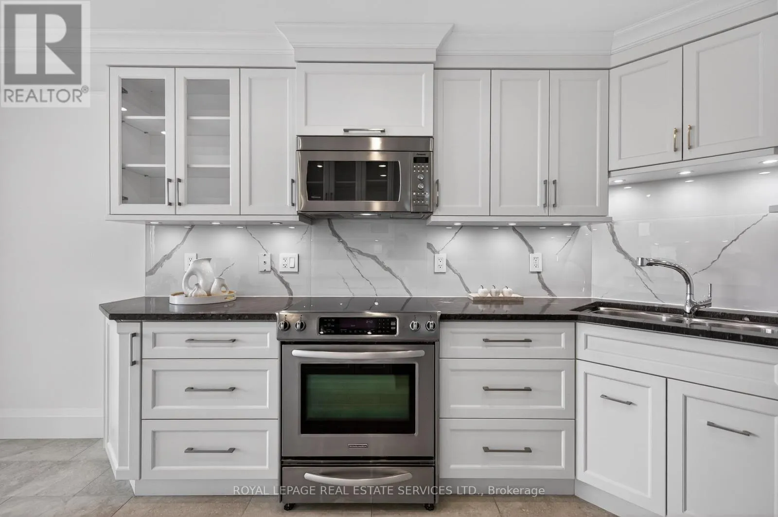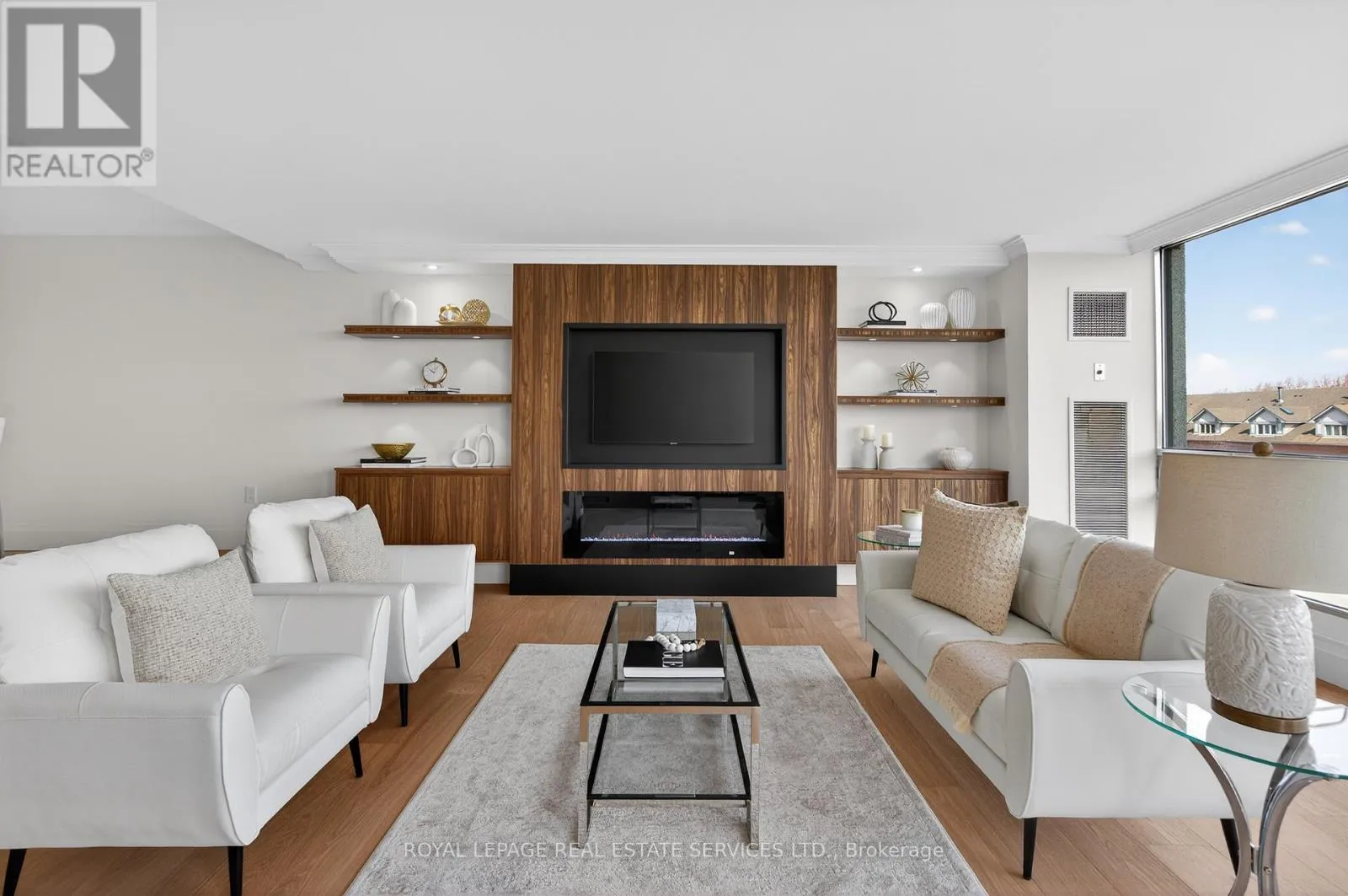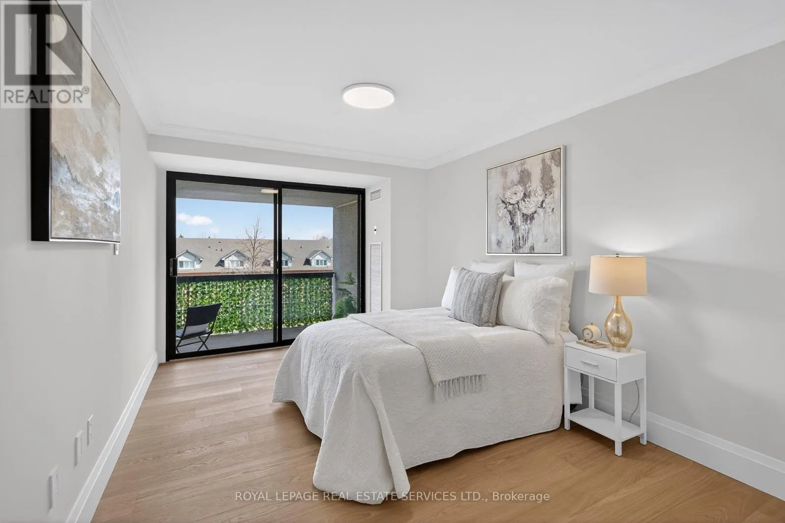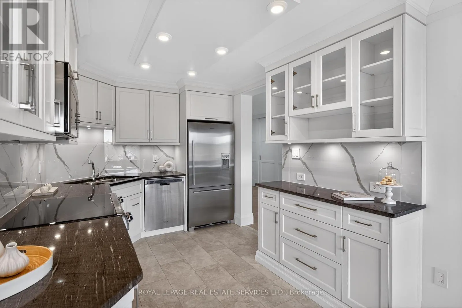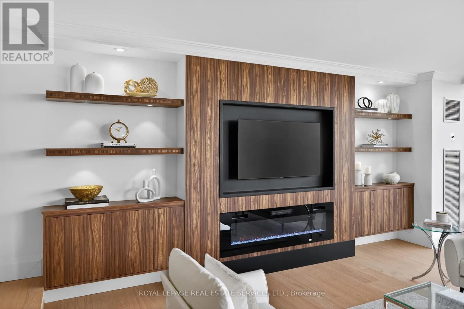 Cross Streets: Third Line To Marine Drive. ** Directions: Lakeshore Road West to Third Line To Marine Drive. Experience the best of living at #403 - 2170 Marine Drive. Completely reimagined through a comprehensive renovation, this luxury suite boasts a redesigned layout to enhance flow & functionality, with impeccable attention to detail. Ceilings have been raised to maximize height in key areas, creating a bright, open & airy feel rarely found in similar units. Significant upgrades include built-in storage solutions complemented by high-end quality finishes, custom millwork & designer fixtures throughout. Finished with 7.5" Canadian ash hardwood flooring, smooth ceilings, crown moulding, custom 84" doors & pot lighting. Both bathrooms have been reconfigured with upgraded plumbing & electrical, quartz counters, porcelain tile floors & sleek pocket doors. The foyer offers a large closet, walk-in storage room with custom shelving & stylish niche. The living room showcases a custom entertainment unit with TV niche & Dimplex electric fireplace, floor-to-ceiling windows & walk-out to the balcony. The kitchen is equipped with white shaker cabinetry, granite counters, porcelain backsplash & stainless steel appliances. The primary suite features a customized walkin closet & raised sitting area. The second bedroom offers a custom builtin wardrobe & balcony walk-out. Additional highlights include a laundry room with custom cabinetry, sink, quartz counter, new washer/dryer & upgraded quiet ceiling fan. Ennisclare II on the Lake offers exceptional amenities: gated with 24-hour security, indoor pool, exercise rooms, clubhouse, party rooms, billiards, tennis, workshop, outdoor seating, visitor parking & so much more. Situated on 5 acres of waterfront in Bronte Village, steps to Bronte Harbour, waterfront parks, trails, dining & shopping. Smoke-free community & dogs not permitted. Includes 1 parking space & exclusive locker. A thoughtfully crafted one-of-a-kind residence! VIEW THE PROPERTY FEATURES PAGE FOR MORE DETAILS & 3D IGUIDE HOME TOUR FOR MORE PHOTOS, FLOOR PLAN, VIDEO & BROCHUR (id:27476)