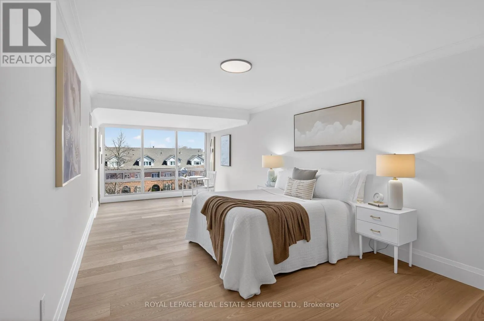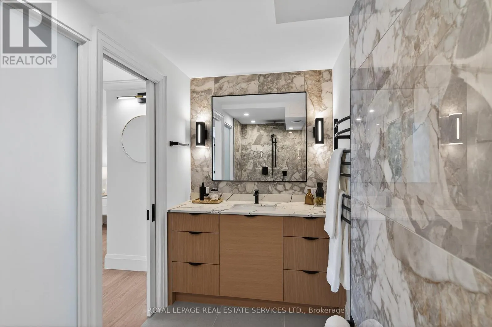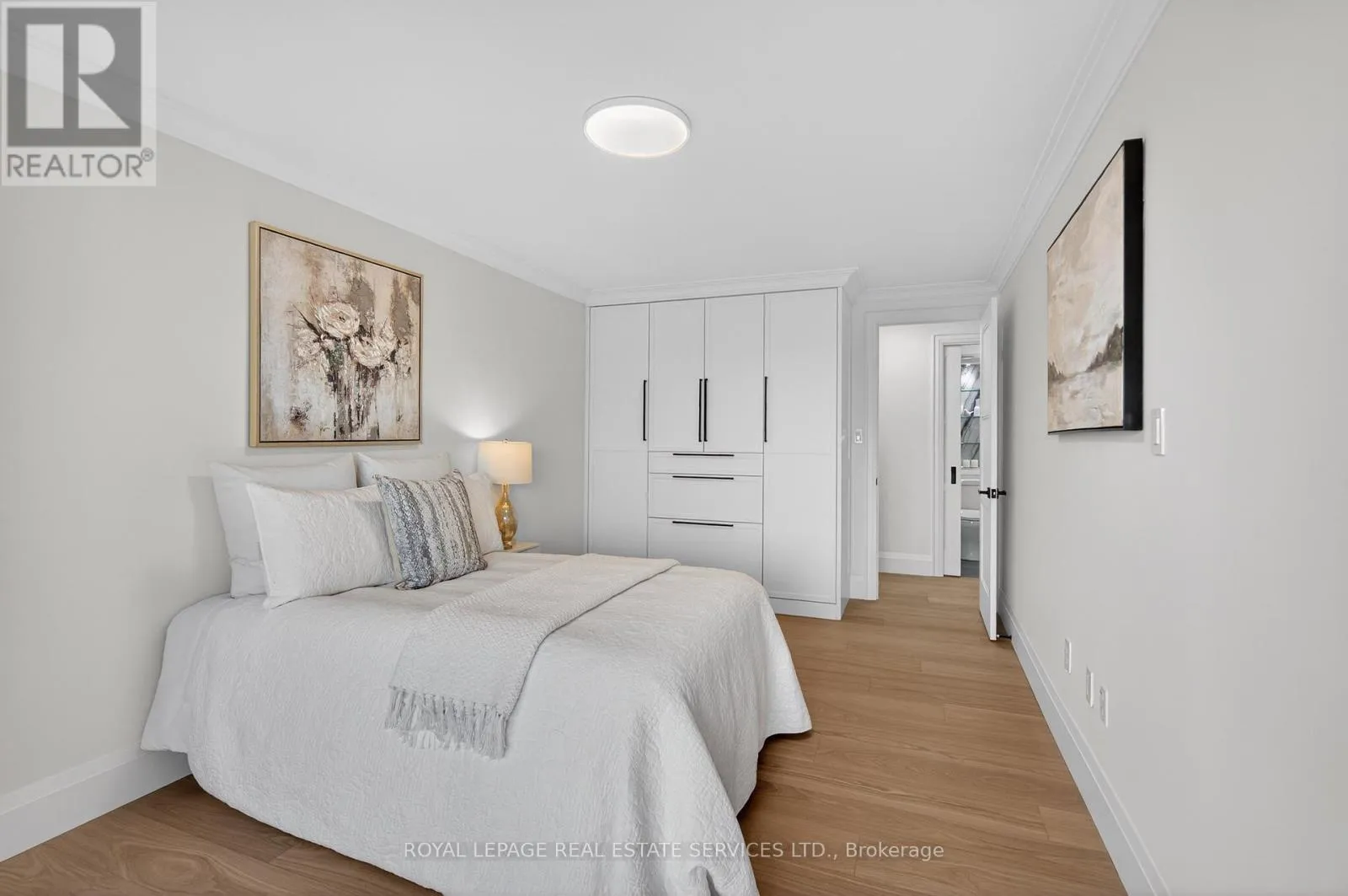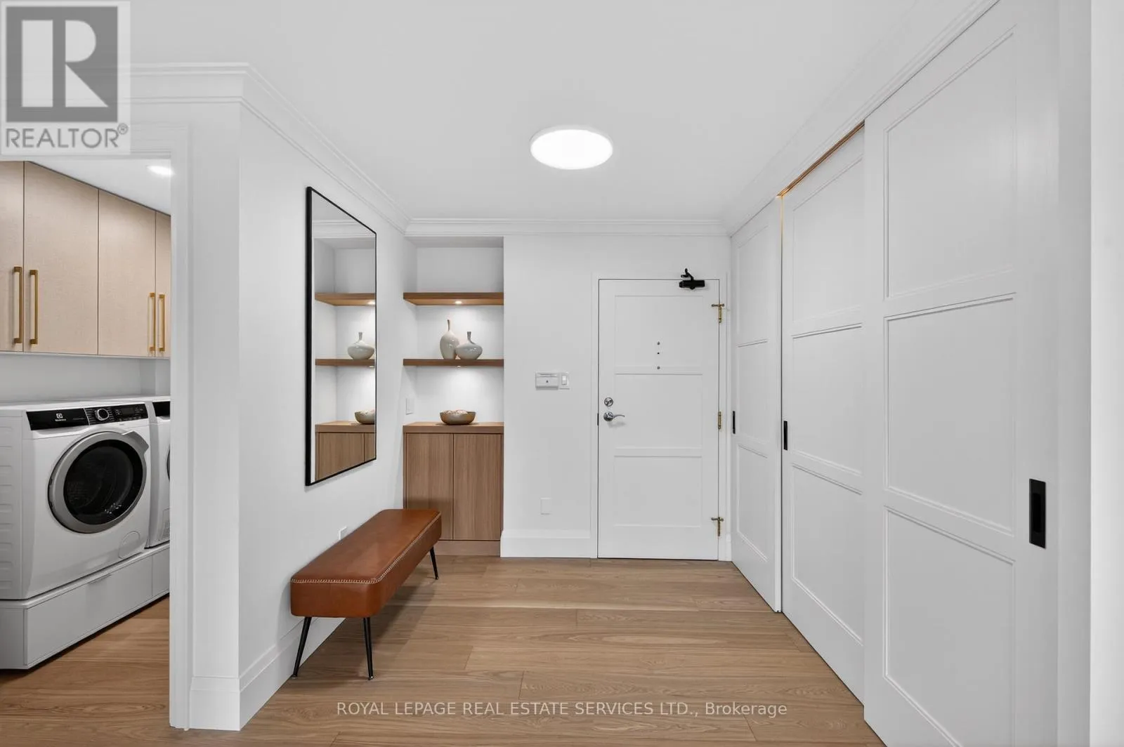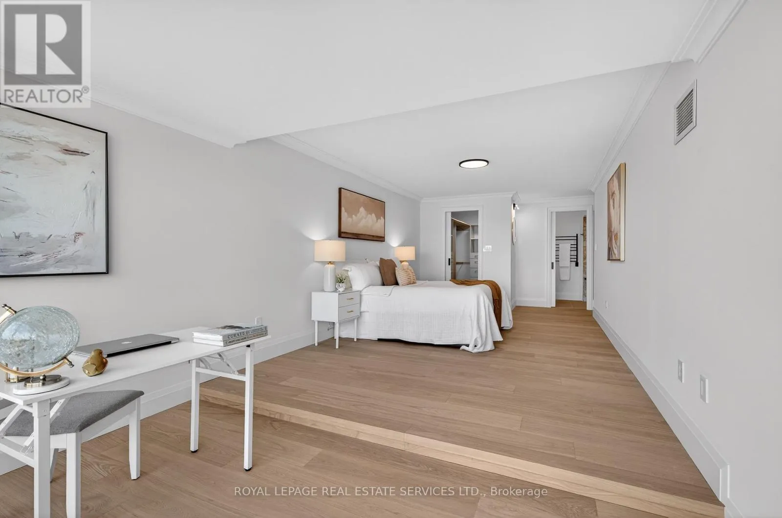 Cross Streets: Third Line To Marine Drive. ** Directions: Lakeshore Road West to Third Line To Marine Drive. Experience the best of living at #403 - 2170 Marine Drive. Completely reimagined through a comprehensive renovation, this luxury suite boasts a redesigned layout to enhance flow & functionality, with impeccable attention to detail. Ceilings have been raised to maximize height in key areas, creating a bright, open & airy feel rarely found in similar units. Significant upgrades include built-in storage solutions complemented by high-end quality finishes, custom millwork & designer fixtures throughout. Finished with 7.5" Canadian ash hardwood flooring, smooth ceilings, crown moulding, custom 84" doors & pot lighting. Both bathrooms have been reconfigured with upgraded plumbing & electrical, quartz counters, porcelain tile floors & sleek pocket doors. The foyer offers a large closet, walk-in storage room with custom shelving & stylish niche. The living room showcases a custom entertainment unit with TV niche & Dimplex electric fireplace, floor-to-ceiling windows & walk-out to the balcony. The kitchen is equipped with white shaker cabinetry, granite counters, porcelain backsplash & stainless steel appliances. The primary suite features a customized walkin closet & raised sitting area. The second bedroom offers a custom builtin wardrobe & balcony walk-out. Additional highlights include a laundry room with custom cabinetry, sink, quartz counter, new washer/dryer & upgraded quiet ceiling fan. Ennisclare II on the Lake offers exceptional amenities: gated with 24-hour security, indoor pool, exercise rooms, clubhouse, party rooms, billiards, tennis, workshop, outdoor seating, visitor parking & so much more. Situated on 5 acres of waterfront in Bronte Village, steps to Bronte Harbour, waterfront parks, trails, dining & shopping. Smoke-free community & dogs not permitted. Includes 1 parking space & exclusive locker. A thoughtfully crafted one-of-a-kind residence! VIEW THE PROPERTY FEATURES PAGE FOR MORE DETAILS & 3D IGUIDE HOME TOUR FOR MORE PHOTOS, FLOOR PLAN, VIDEO & BROCHUR (id:27476)
