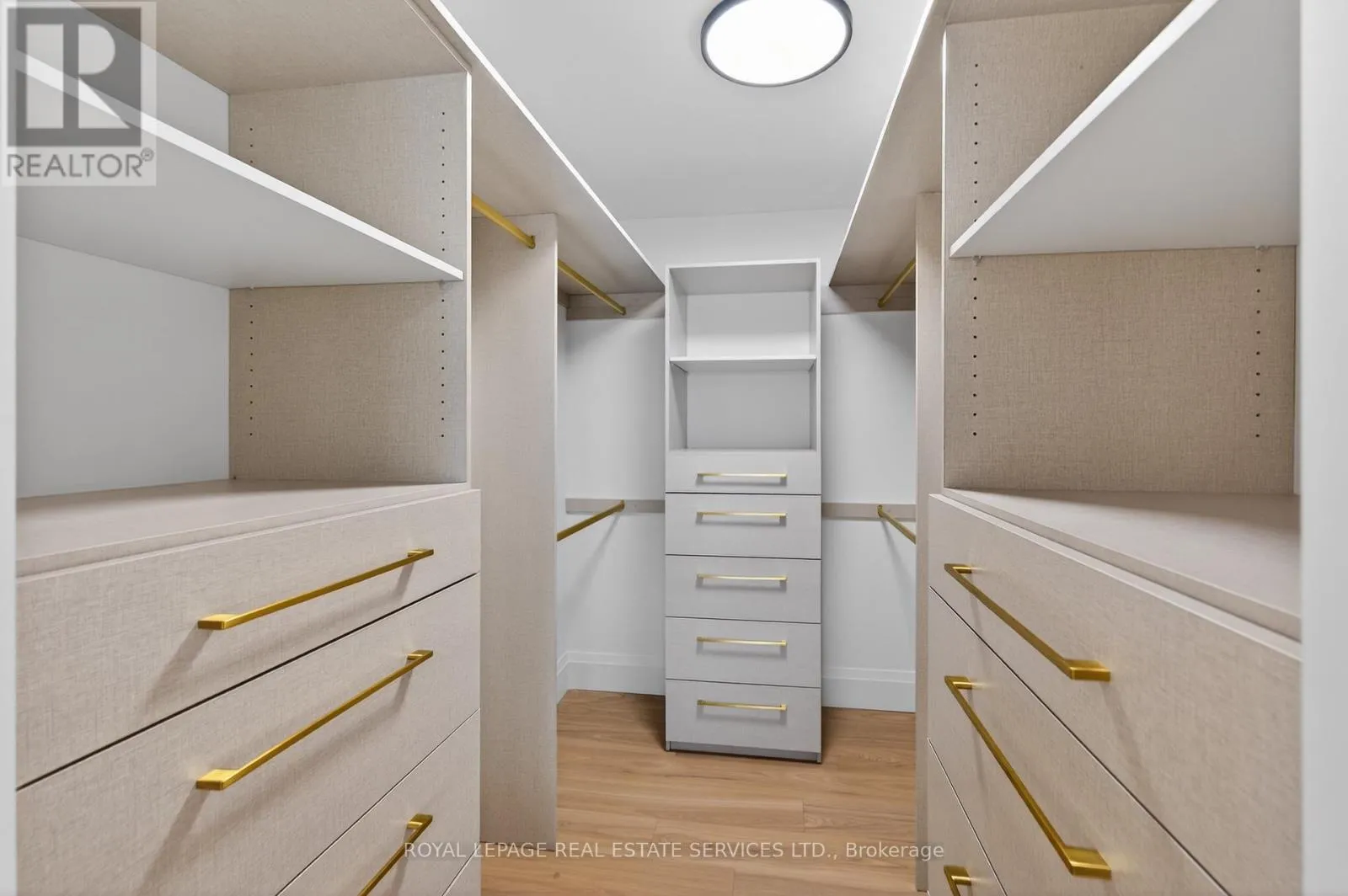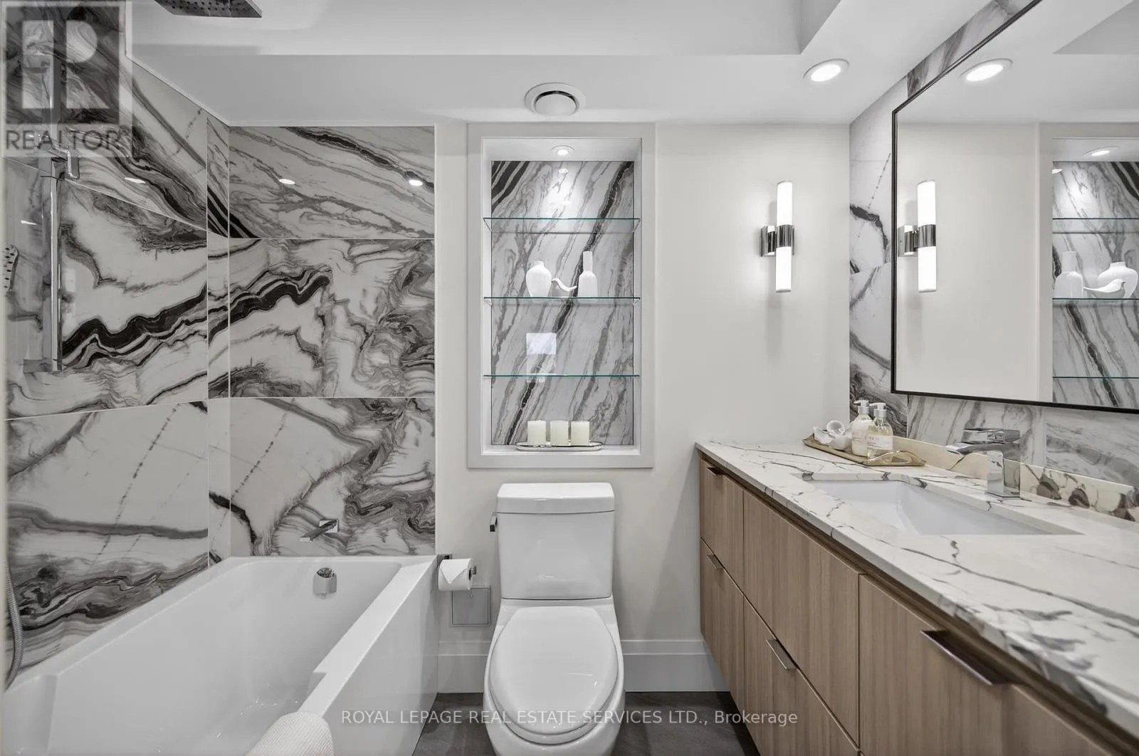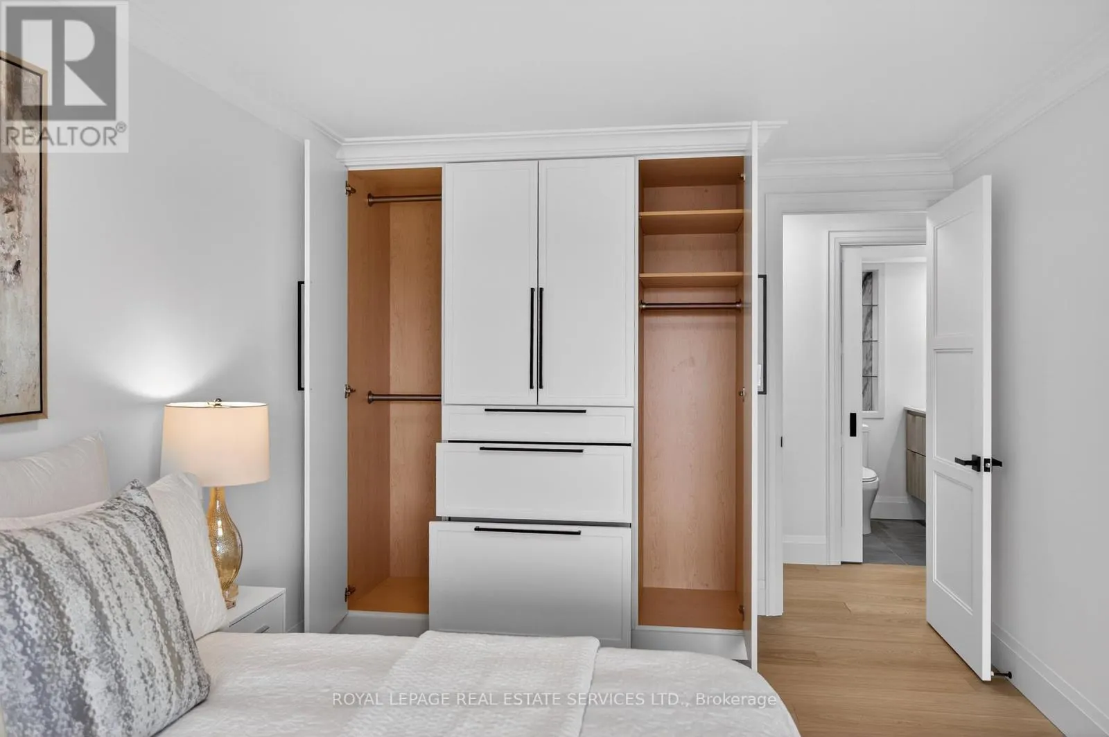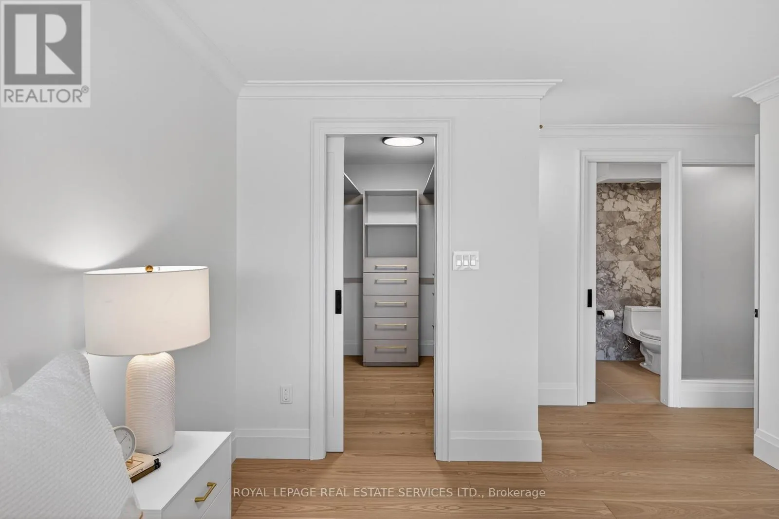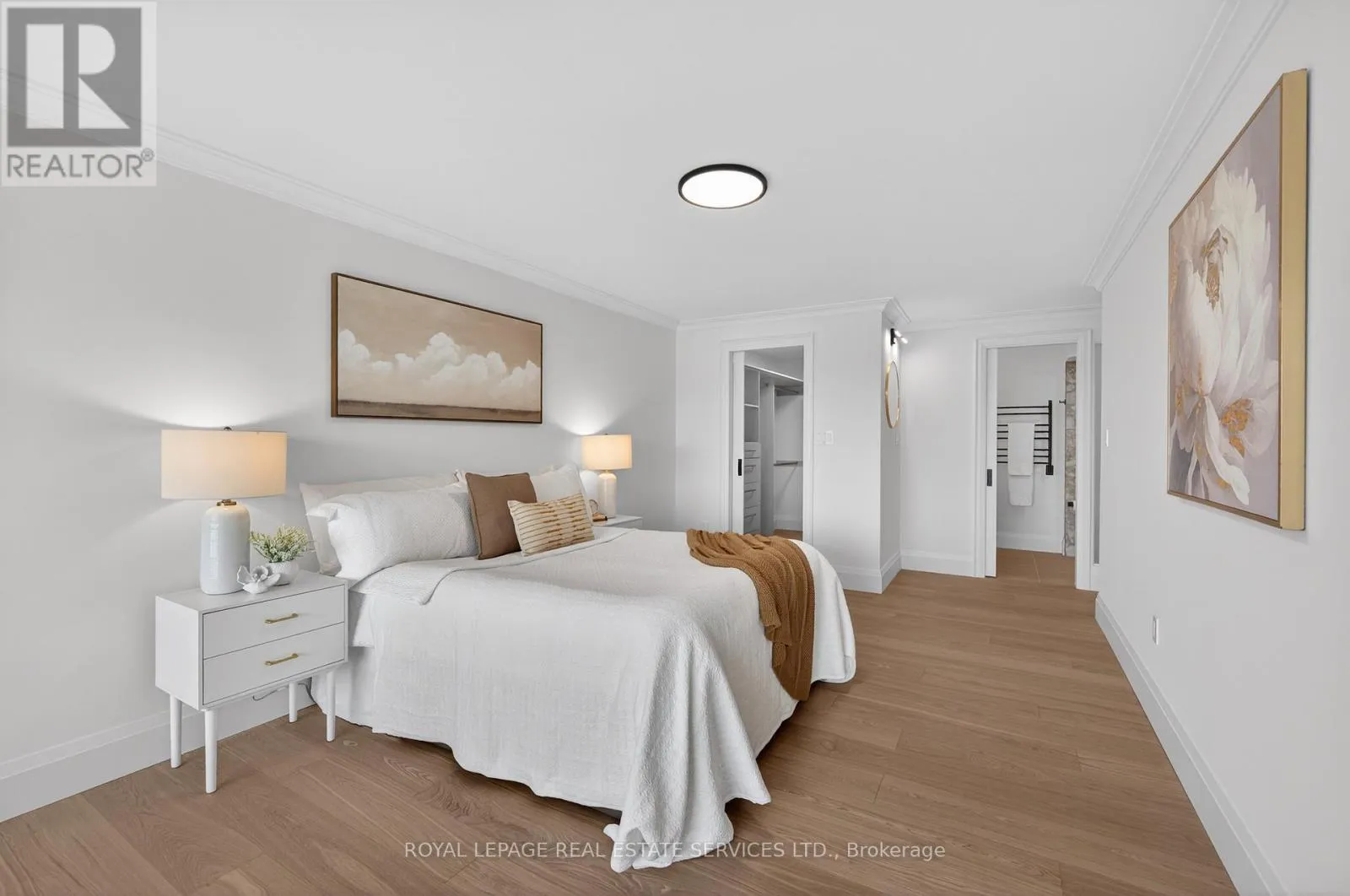 Cross Streets: Third Line To Marine Drive. ** Directions: Lakeshore Road West to Third Line To Marine Drive. Experience the best of living at #403 - 2170 Marine Drive. Completely reimagined through a comprehensive renovation, this luxury suite boasts a redesigned layout to enhance flow & functionality, with impeccable attention to detail. Ceilings have been raised to maximize height in key areas, creating a bright, open & airy feel rarely found in similar units. Significant upgrades include built-in storage solutions complemented by high-end quality finishes, custom millwork & designer fixtures throughout. Finished with 7.5" Canadian ash hardwood flooring, smooth ceilings, crown moulding, custom 84" doors & pot lighting. Both bathrooms have been reconfigured with upgraded plumbing & electrical, quartz counters, porcelain tile floors & sleek pocket doors. The foyer offers a large closet, walk-in storage room with custom shelving & stylish niche. The living room showcases a custom entertainment unit with TV niche & Dimplex electric fireplace, floor-to-ceiling windows & walk-out to the balcony. The kitchen is equipped with white shaker cabinetry, granite counters, porcelain backsplash & stainless steel appliances. The primary suite features a customized walkin closet & raised sitting area. The second bedroom offers a custom builtin wardrobe & balcony walk-out. Additional highlights include a laundry room with custom cabinetry, sink, quartz counter, new washer/dryer & upgraded quiet ceiling fan. Ennisclare II on the Lake offers exceptional amenities: gated with 24-hour security, indoor pool, exercise rooms, clubhouse, party rooms, billiards, tennis, workshop, outdoor seating, visitor parking & so much more. Situated on 5 acres of waterfront in Bronte Village, steps to Bronte Harbour, waterfront parks, trails, dining & shopping. Smoke-free community & dogs not permitted. Includes 1 parking space & exclusive locker. A thoughtfully crafted one-of-a-kind residence! VIEW THE PROPERTY FEATURES PAGE FOR MORE DETAILS & 3D IGUIDE HOME TOUR FOR MORE PHOTOS, FLOOR PLAN, VIDEO & BROCHUR (id:27476)