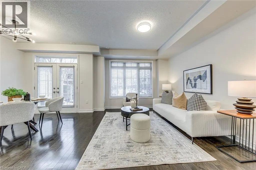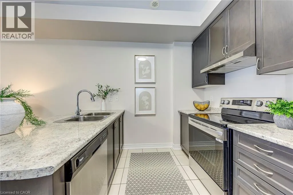 GREENWICH DR & PINE GLEN RD Absolutely Gorgeous Executive Freehold Townhome in Oakville's highly sought-after Westmount community, offering a perfect blend of style, comfort and unbeatable convenience. Enjoy a direct garage access from the spacious foyer.This beautifully upgraded 3-storey home features a premium stone and stucco exterior, open-concept main living level with 9' ceilings, rich dark hardwood floors, modern lighting, and a contemporary eat-in kitchen with breakfast bar, large countertops and stainless steel appliances, enhanced with a brand new range hood and stove (2025), all new faucets (2025), and LED lighting throughout (2025). The entire home has been freshly painted in 2026 and showcases new third-floor flooring (2025), creating a truly turnkey feel. Spacious living and dining areas walk out to a private balcony, ideal for relaxing or entertaining. The primary bedroom offers a walk-in closet, complemented by a generous second bedroom, upper-level laundry and a large bathroom. Located steps to parks, playgrounds, trails, community centre, hospital, shopping and everyday amenities, and just minutes to Bronte GO, Hwy 407, QEW and 403 for easy commuting. Situated in a family-friendly neighbourhood known for its highly ranked public and Catholic schools within the Westmount catchment, making it ideal for professionals, young families and investors alike. A move-in-ready home in one of Oakville's most convenient and well-connected communities. (id:27476)