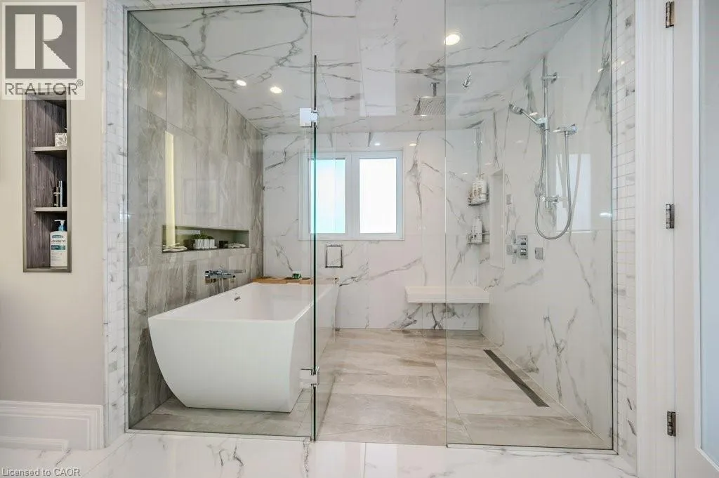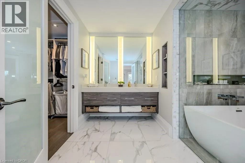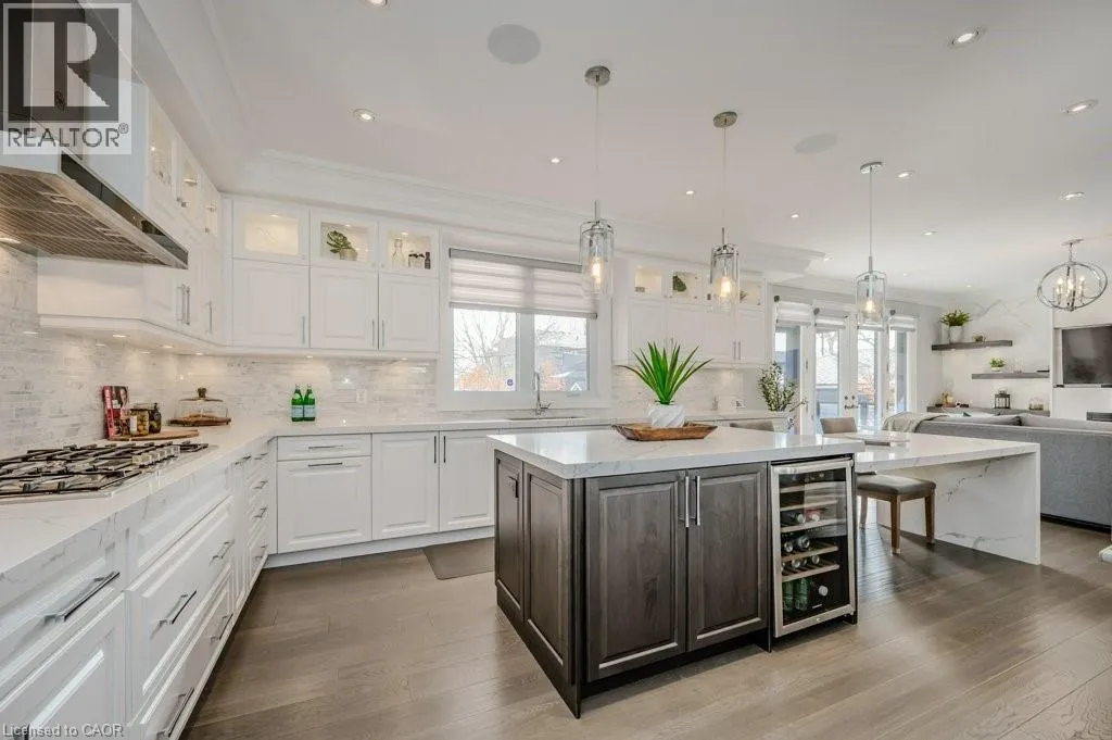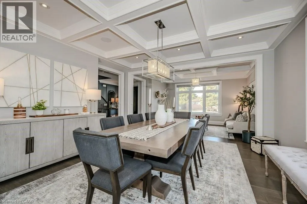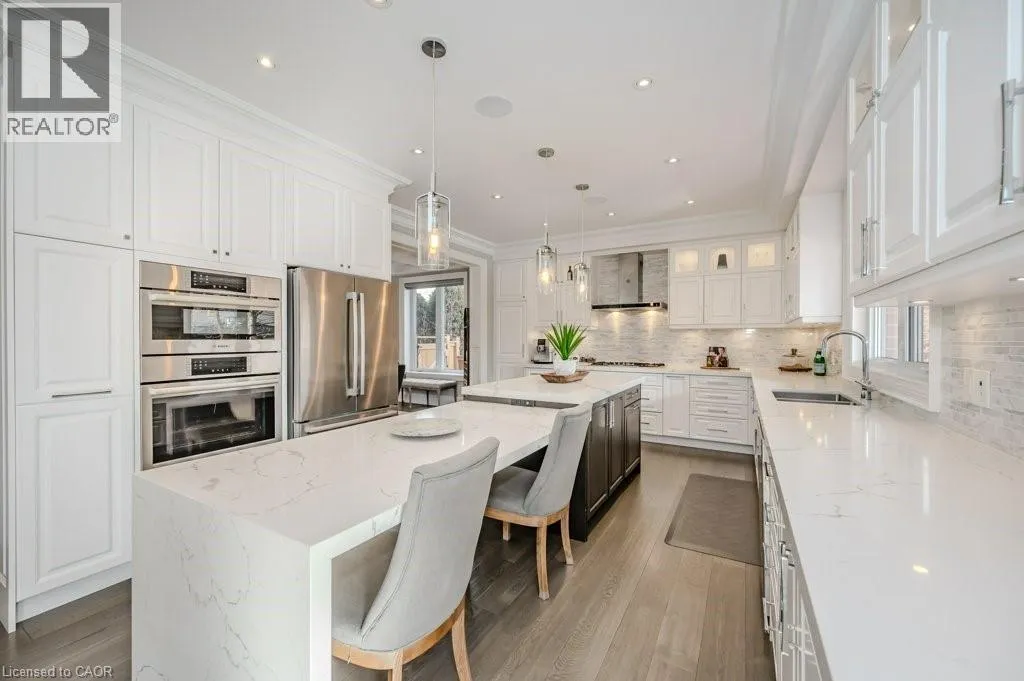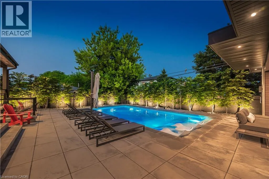 Welcome to a masterpiece of modern luxury in South West Oakville, where refined design meets a true resort-style lifestyle. This exceptional custom-built residence offers over 4,200 sq. ft. of meticulously crafted living space, defined by uncompromising quality and timeless detail throughout. From the moment you enter, architectural excellence is showcased through extensive custom millwork, intricate wall paneling, and bespoke cabinetry that bring warmth and sophistication to every space. The open-concept main floor is an entertainer's dream, anchored by a chef-inspired kitchen with oversized quartz countertops, premium integrated appliances, and seamless flow into the elegant family and dining areas. The primary retreat offers a serene escape with coffered ceilings, a spacious walk-in closet, and a spa-like six-piece ensuite featuring a freestanding soaker tub and private water closet. A rare walk-out basement-highly sought after in this neighbourhood-provides exceptional versatility for entertaining or multi-generational living, complete with a custom wall unit, electric fireplace, and high-efficiency systems. Over $600,000 in recent upgrades elevate the professionally landscaped grounds into a private outdoor oasis, framed by 40 mature European Beech trees and extensive interlock, highlighted by a 16' x 34' concrete (gunite)saltwater pool with tanning ledge and full Hayward automation. A custom cabana anchors the backyard featuring a 48 gas fireplace, Dekton counters, built-in BBQ, and commercial-grade refrigerator, creating a true resort experience. Additional features include a premium Bowers & Wilkins and Sonance AV system, 7-zone irrigation, designer LED landscape lighting, six-car driveway, heated epoxy garage with EV charging, and 6-camera security system. Ideally located steps from Lake Ontario and Oakville's top-ranked schools, this turnkey residence defines elevated luxury living. (id:27476)