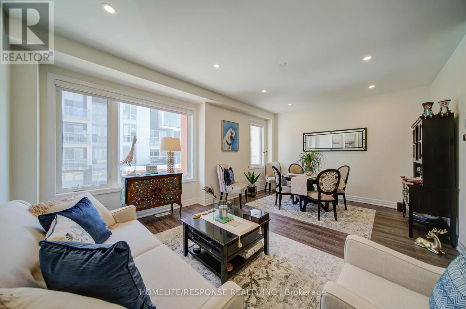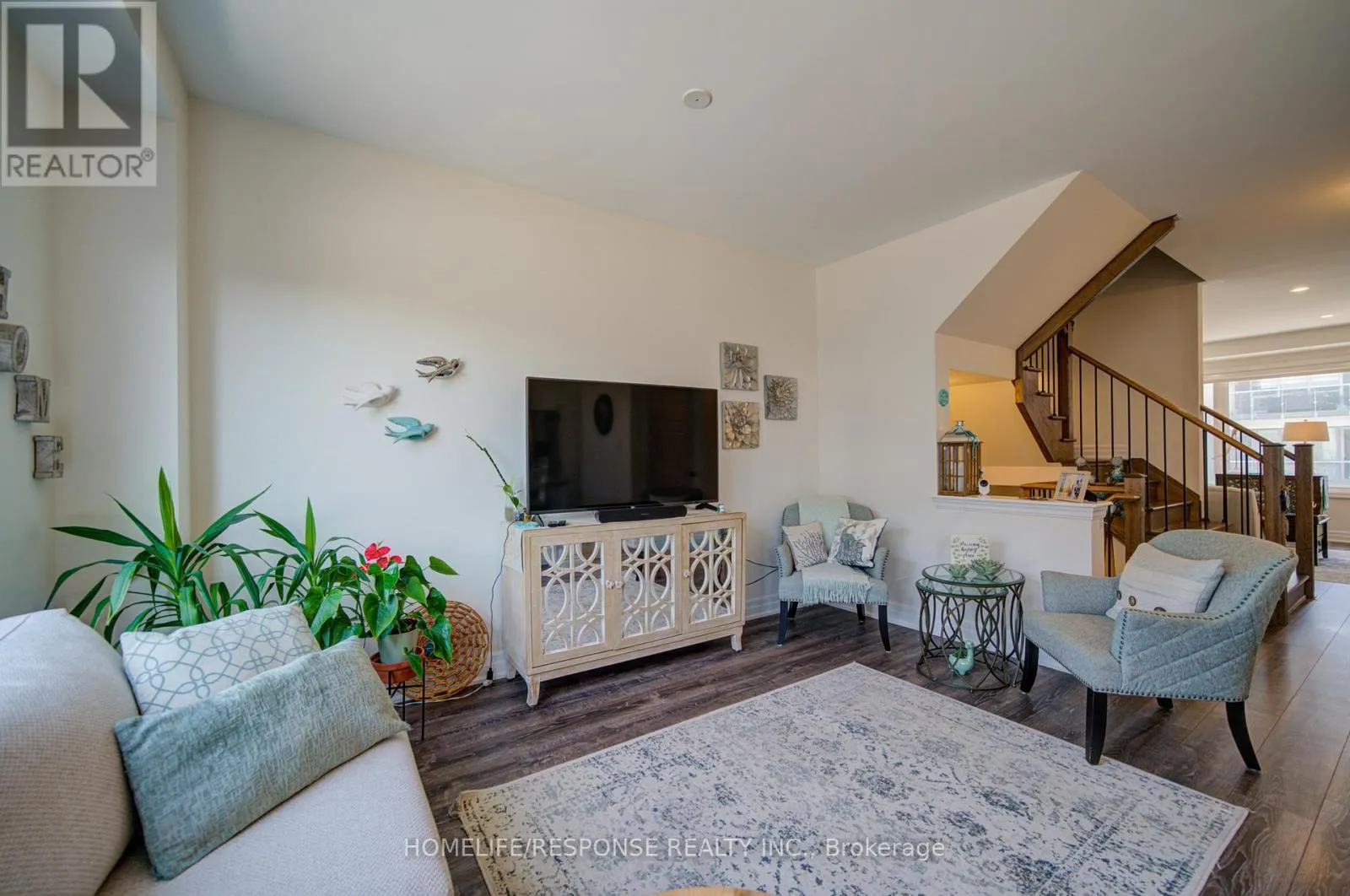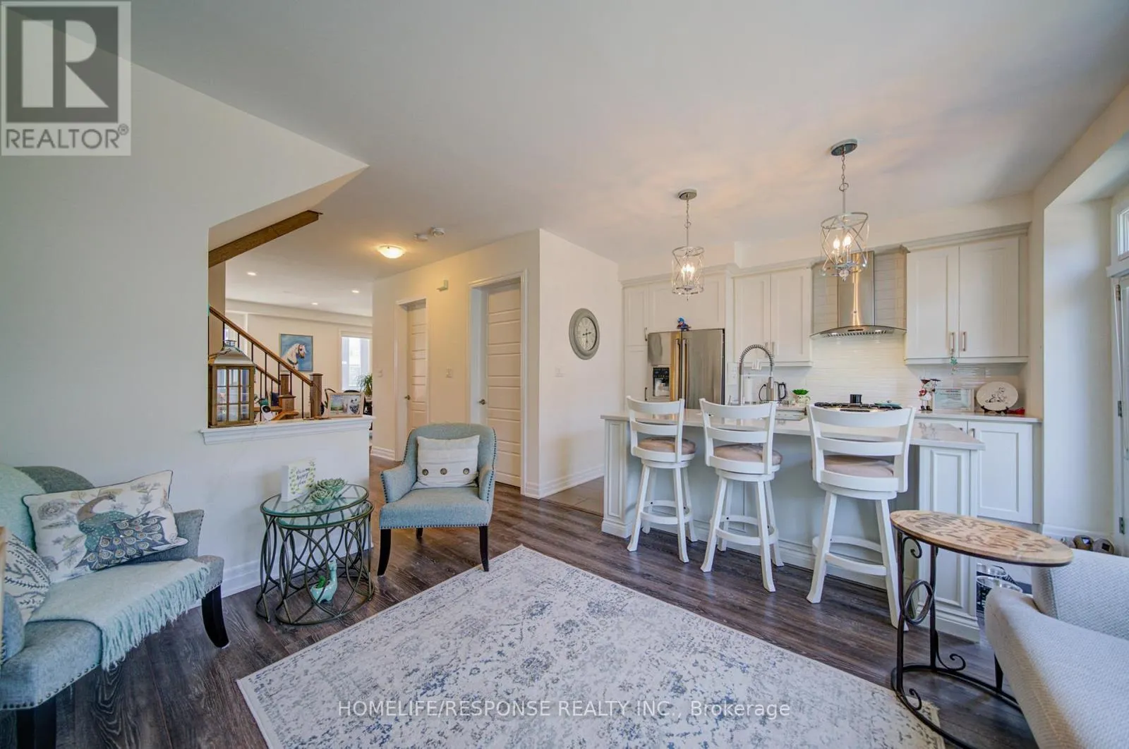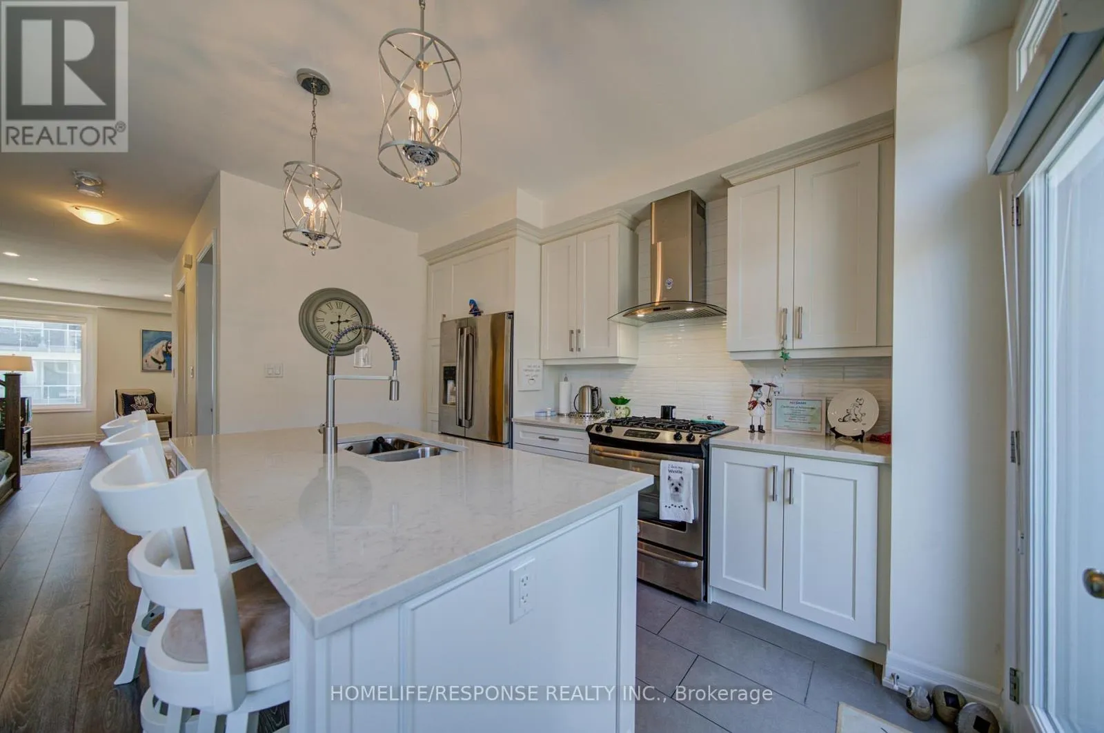Cross Streets: SIXTH LINE & DUNDAS ST. W. ** Directions: SIXTH LINE & DUNDAS ST. W. Highly upgraded executive townhouse in the prestigious Preserve community, featuring 3 bedrooms, 3 bathrooms, and a 2-car garage. Beautifully maintained and move-in ready with designer neutral décor throughout. Spacious main living area on the first floor filled with natural light, complete with stylish zebra blinds for adjustable brightness and privacy. Elegant family room with open-concept layout, large windows, tray ceiling, pot lights, and a sleek built-in fireplace with wall-mounted TV. Modern kitchen with island and breakfast bar, quartz countertops, upgraded stainless steel appliances, professional hood fan, and a stunning backsplash. Dining area with walk-out to a private balcony, perfect for entertaining. Featuring smooth 9-ft ceilings throughout all levels, a beautiful oak staircase, and premium finishes throughout. The primary bedroom offers a walk-in closet and a 4-piece ensuite. Ideally located close to top-rated schools, a new hospital, great shopping, and scenic trails. Don't Miss This One! (id:27476)