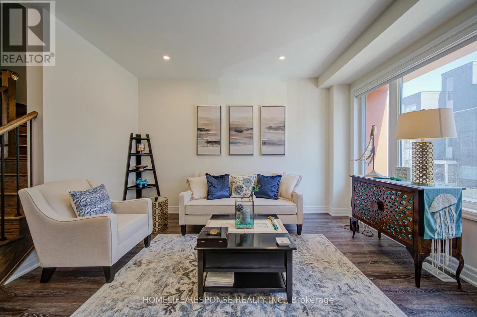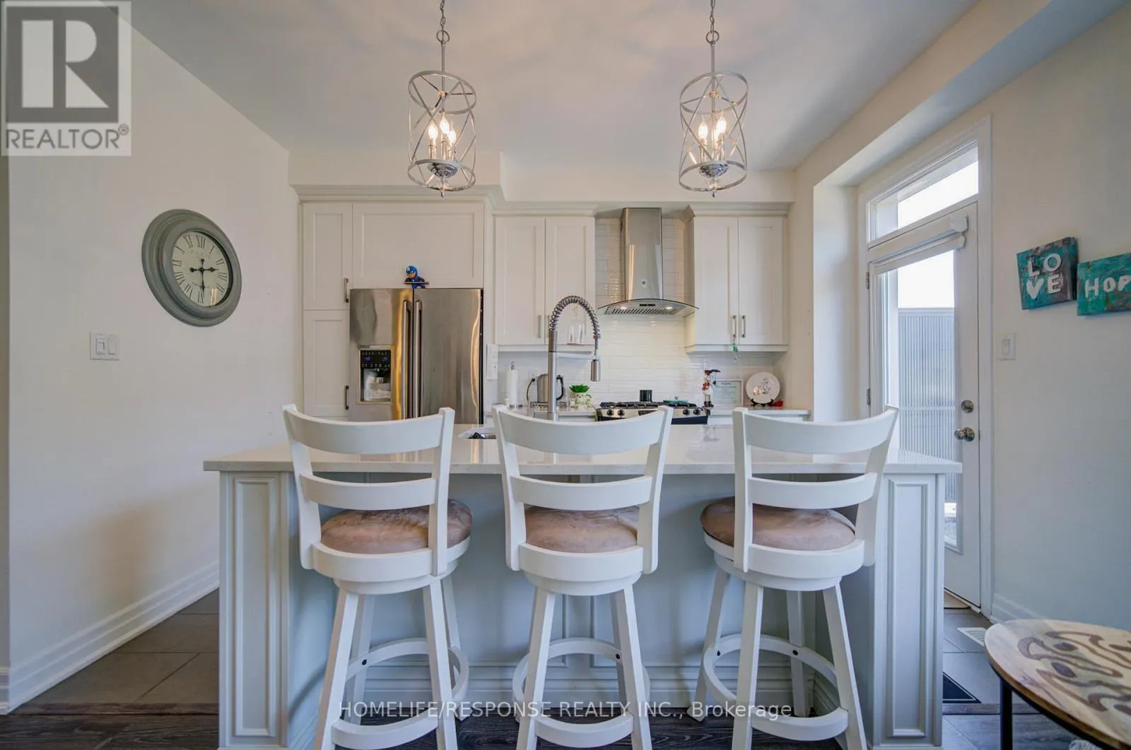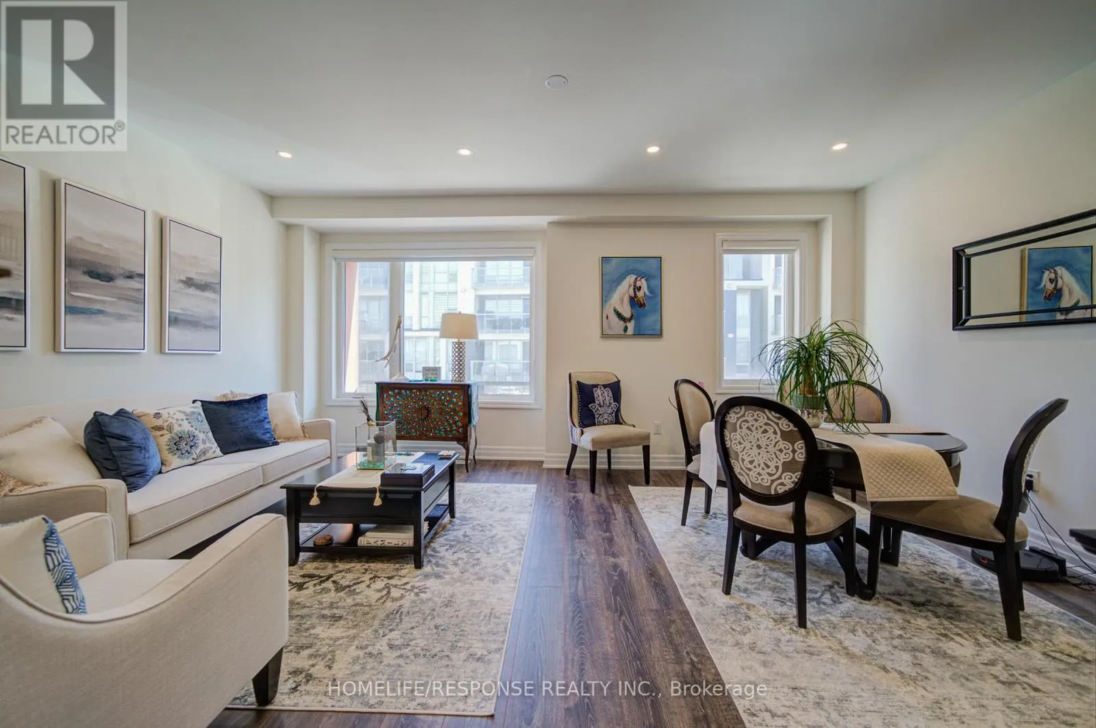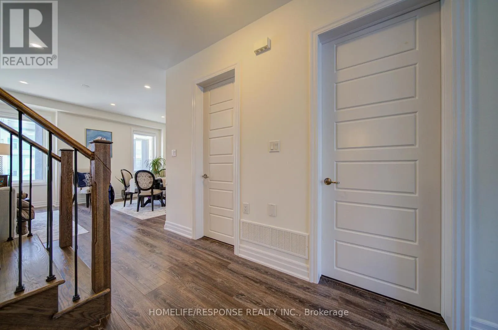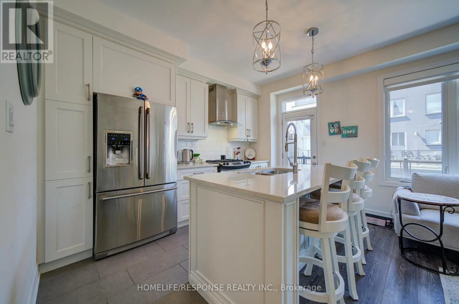 Cross Streets: SIXTH LINE & DUNDAS ST. W. ** Directions: SIXTH LINE & DUNDAS ST. W. Highly upgraded executive townhouse in the prestigious Preserve community, featuring 3 bedrooms, 3 bathrooms, and a 2-car garage. Beautifully maintained and move-in ready with designer neutral décor throughout. Spacious main living area on the first floor filled with natural light, complete with stylish zebra blinds for adjustable brightness and privacy. Elegant family room with open-concept layout, large windows, tray ceiling, pot lights, and a sleek built-in fireplace with wall-mounted TV. Modern kitchen with island and breakfast bar, quartz countertops, upgraded stainless steel appliances, professional hood fan, and a stunning backsplash. Dining area with walk-out to a private balcony, perfect for entertaining. Featuring smooth 9-ft ceilings throughout all levels, a beautiful oak staircase, and premium finishes throughout. The primary bedroom offers a walk-in closet and a 4-piece ensuite. Ideally located close to top-rated schools, a new hospital, great shopping, and scenic trails. Don't Miss This One! (id:27476)