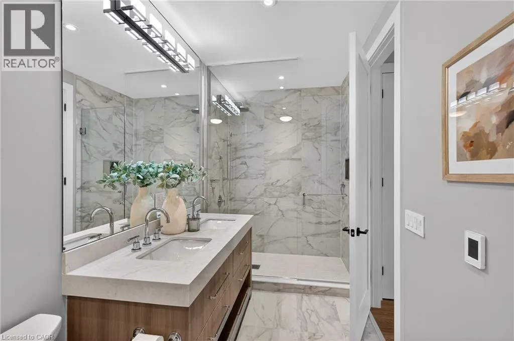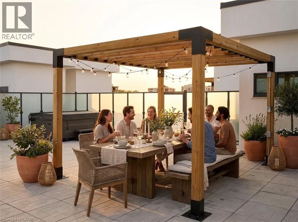 Lakeshore to N on Maurice (just East of Dorval) Opportunities like this are rare in South Oakville. Penthouse-level residence at The Berkshire offering approximately 2,200 sqft of interior living space plus 1,550 sqft of private exterior living and 3 side-by-side parking. The layout delivers three full bedrooms, each with its own ensuite, a full den/office, separate powder room, full coat closet, pantry, and 10' ceilings. With over $180,000 in upgrades throughout. Every inch accounted for. The floorpan was reconfigured to ensure you have a proper laundry room and more storage. The outdoor space bridges the gap between a backyard lifestyle and the simplicity of condo living. Enjoy a large west-facing balcony plus a private rooftop terrace featuring a pergola, gas BBQ hookup, 6-seater hot tub w/ BT speakers, and front row seats to the sunset. No towers looking down. Real privacy. Parking is unmatched with three underground spaces (not tandem), all with EV rough-ins. Nearly impossible to find at this valuation. Only 55 units in the building, with amenities including a shared rooftop deck, social/party room, fitness studio two floors below, and 24-hour security. Ideal for a lock-and-leave lifestyle with added security features. One block to groceries and Trafalgar Community Centre, and approximately a 15 minute walk to downtown Oakville, the harbour, and top-rated restaurants. This is a lifestyle upgrade for buyers who want space, privacy, and flexibility without the maintenance of a detached home. (id:27476)