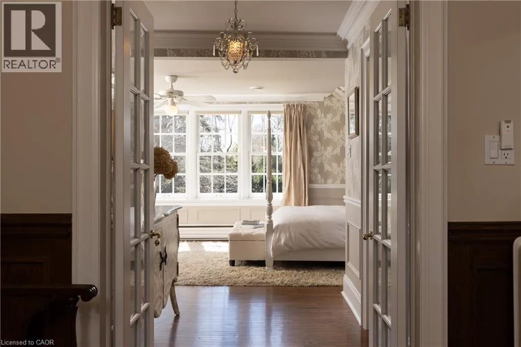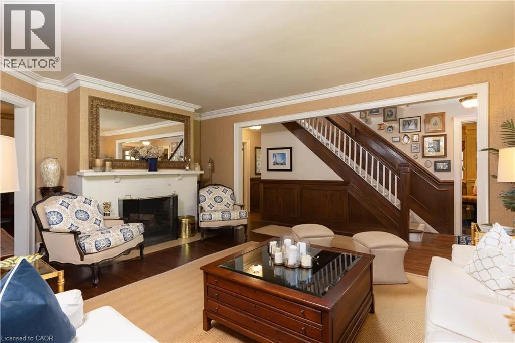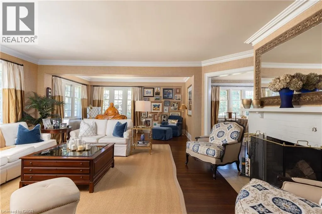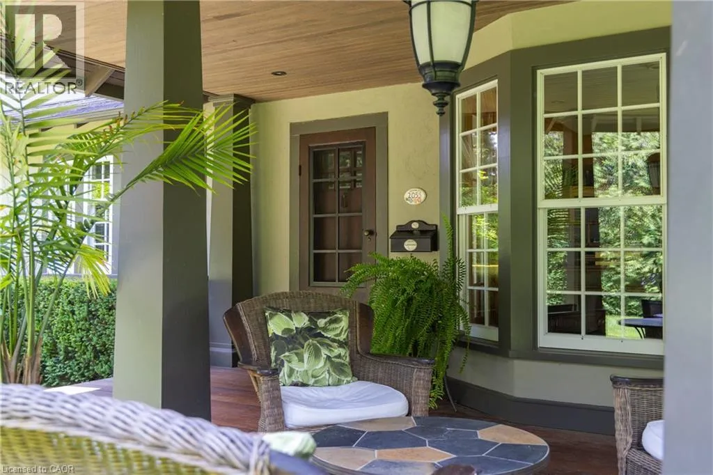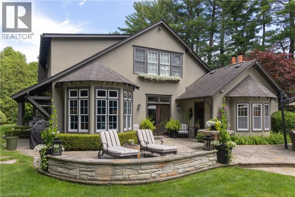 Private Lane off Lakeshore Road E. Just east of Maple Grove Dr Nestled at the end of a private laneway on .996 acre in sought-after South East Oakville,tranquility awaits. This Arts and Crafts-style home, boasting a wrap-around veranda,sits amidst nearly an acre of meticulously manicured gardens. Step inside this charming 4-bdrm residence,offering over 3600 sq ft of living space, and be enveloped in its timeless character.The sun-drenched kitchen is a chefs dream, featuring an AGA stove,step down to the breakfast area with multiple walkouts to the gardens, seamlessly blending indoor and outdoor living.The great room is the perfect place to relax in front of the fire at any time of the day.Entertain with ease in the expansive living and dining room, while a tucked-away main floor office provides privacy. Upstairs, the large principal bedroom overlooks the backyard and gardens, boasting a built-in vanity area, bookcase, custom walk-in closet, and a luxurious 3-piece ensuite. Two additional generously sized bedrooms share a timeless 4-pc bath, while the fourth bedroom, currently used as a gym and laundry area, offers flexibility to suit your needs. Outside, is a dining gazebo and stone patio area, complete with a wood fireplace, that set the stage for al fresco entertaining amidst the natural beauty of majestic evergreens and perennials. A vegetable garden provides a farm-to-table experience, while a potting shed stands ready to house all your gardening tools. An oversized detached double car garage offers ample storage, with an unfinished coach house space above, roughed in for plumbing and electrical, awaiting your vision to become a work at home office, gym, guest suite, or in-law quarters. Experience the rare tranquility this home brings on an estate-sized lot. Live in/renovate/build, the possibilities are endless. Ideally located steps from the lake, parks, and a short distance to all Downtown Oakville has to offer, including great public and private schools. LUXURY CERTIFIED. (id:27476)