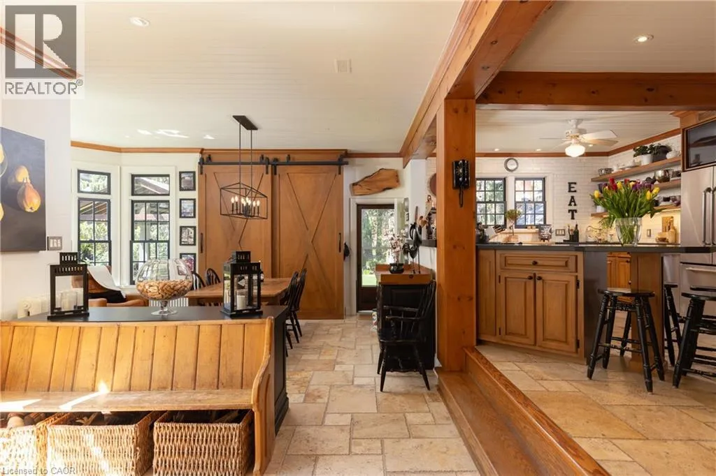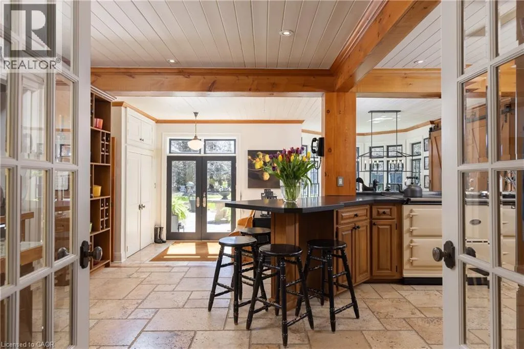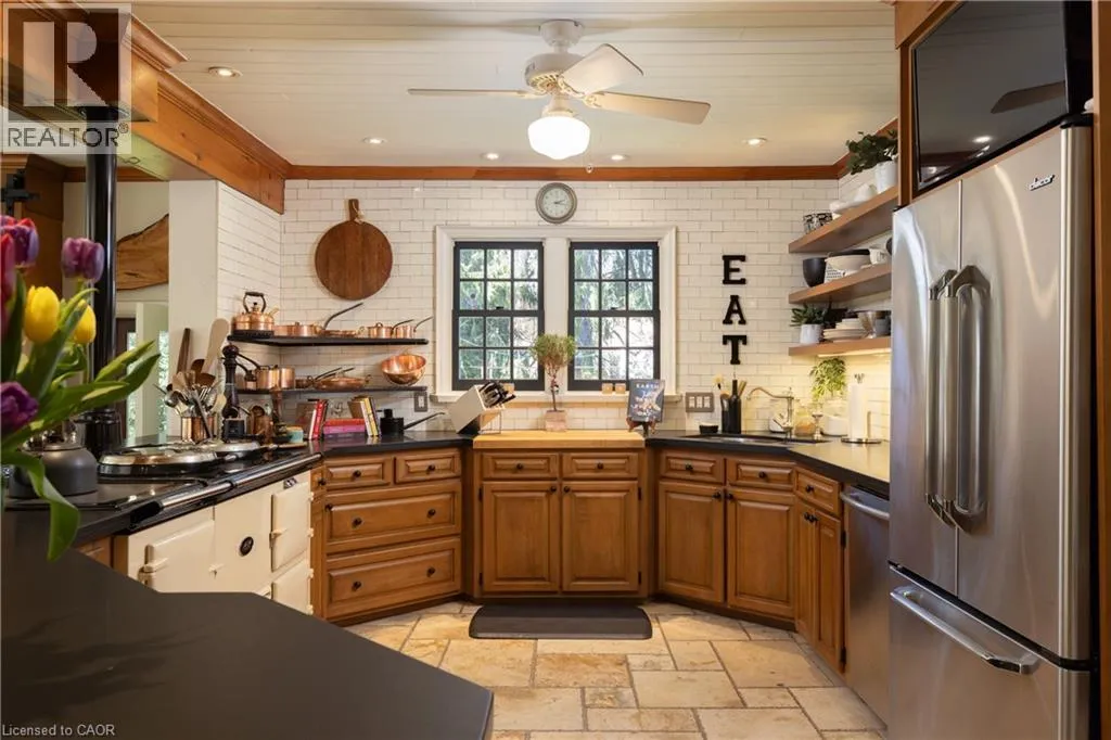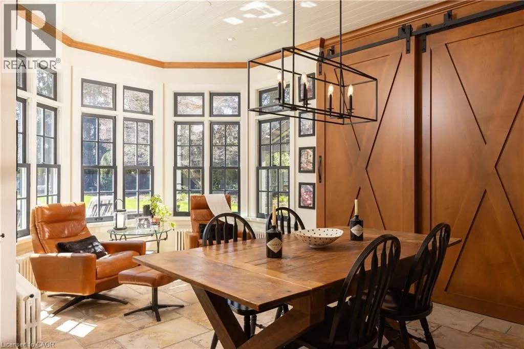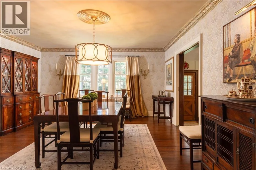 Private Lane off Lakeshore Road E. Just east of Maple Grove Dr Nestled at the end of a private laneway on .996 acre in sought-after South East Oakville,tranquility awaits. This Arts and Crafts-style home, boasting a wrap-around veranda,sits amidst nearly an acre of meticulously manicured gardens. Step inside this charming 4-bdrm residence,offering over 3600 sq ft of living space, and be enveloped in its timeless character.The sun-drenched kitchen is a chefs dream, featuring an AGA stove,step down to the breakfast area with multiple walkouts to the gardens, seamlessly blending indoor and outdoor living.The great room is the perfect place to relax in front of the fire at any time of the day.Entertain with ease in the expansive living and dining room, while a tucked-away main floor office provides privacy. Upstairs, the large principal bedroom overlooks the backyard and gardens, boasting a built-in vanity area, bookcase, custom walk-in closet, and a luxurious 3-piece ensuite. Two additional generously sized bedrooms share a timeless 4-pc bath, while the fourth bedroom, currently used as a gym and laundry area, offers flexibility to suit your needs. Outside, is a dining gazebo and stone patio area, complete with a wood fireplace, that set the stage for al fresco entertaining amidst the natural beauty of majestic evergreens and perennials. A vegetable garden provides a farm-to-table experience, while a potting shed stands ready to house all your gardening tools. An oversized detached double car garage offers ample storage, with an unfinished coach house space above, roughed in for plumbing and electrical, awaiting your vision to become a work at home office, gym, guest suite, or in-law quarters. Experience the rare tranquility this home brings on an estate-sized lot. Live in/renovate/build, the possibilities are endless. Ideally located steps from the lake, parks, and a short distance to all Downtown Oakville has to offer, including great public and private schools. LUXURY CERTIFIED. (id:27476)