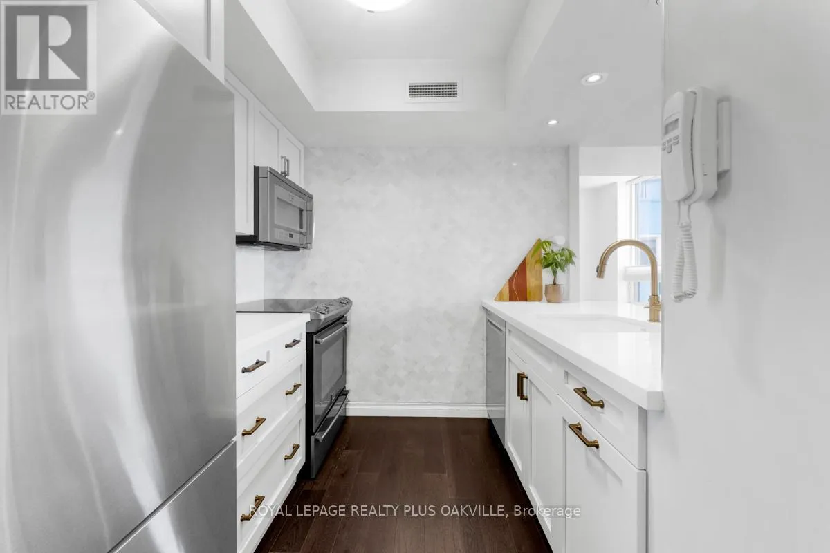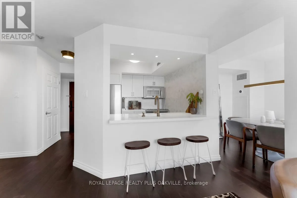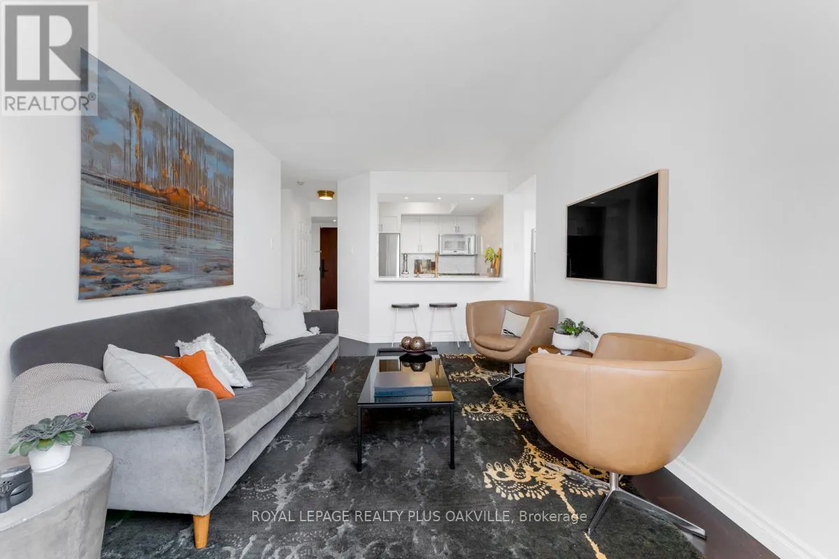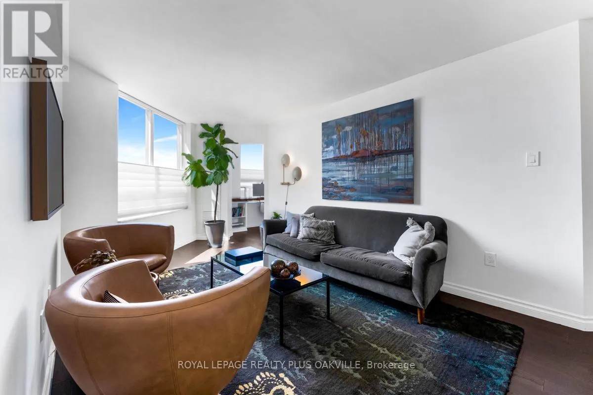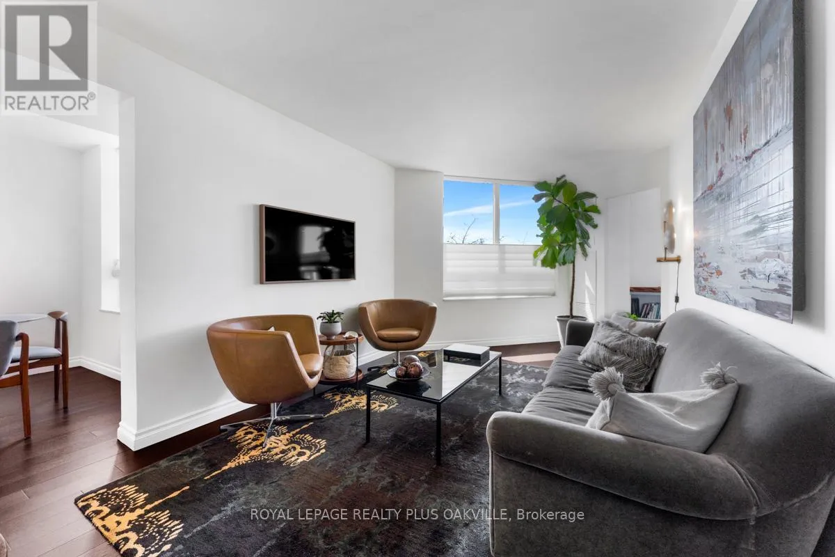 Cross Streets: George and Robinson. ** Directions: One block south of lakeshore, west of Dunn. Welcome to this beautifully updated 2-bedroom, 2-bath, with parking condo right on Oakville's renowned Town Square. With tasteful finishes and a timeless design, this residence offers elegant living in one of the most walkable and coveted locations in town. Enjoy sunset views from your covered terrace, steps from boutique shops, acclaimed dining, the lake, marina, and the Oakville Centre for the Performing Arts. The building itself has been fully refreshed inside, blending classic sophistication with modern comfort. Includes one parking space, with guest parking available. A rare opportunity to live in the heart of Old Oakville without the million-dollar price tag. (id:27476)