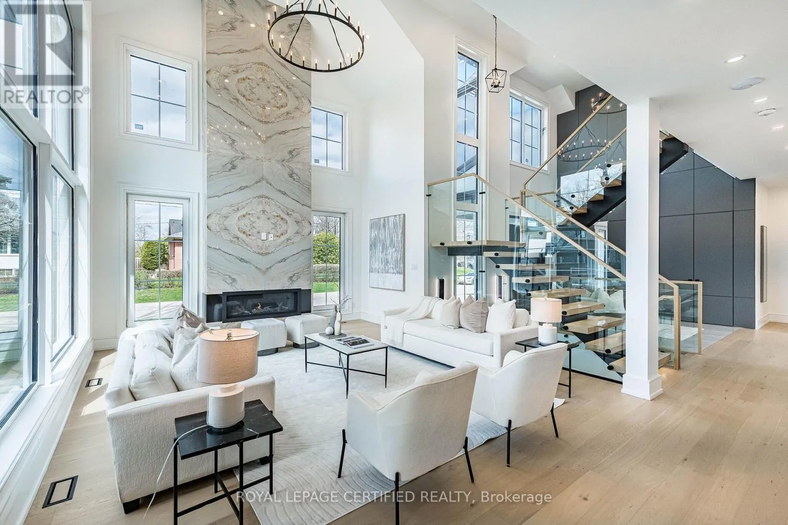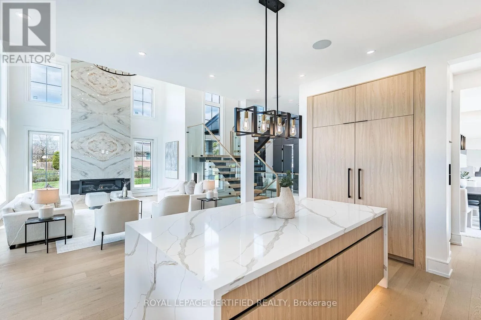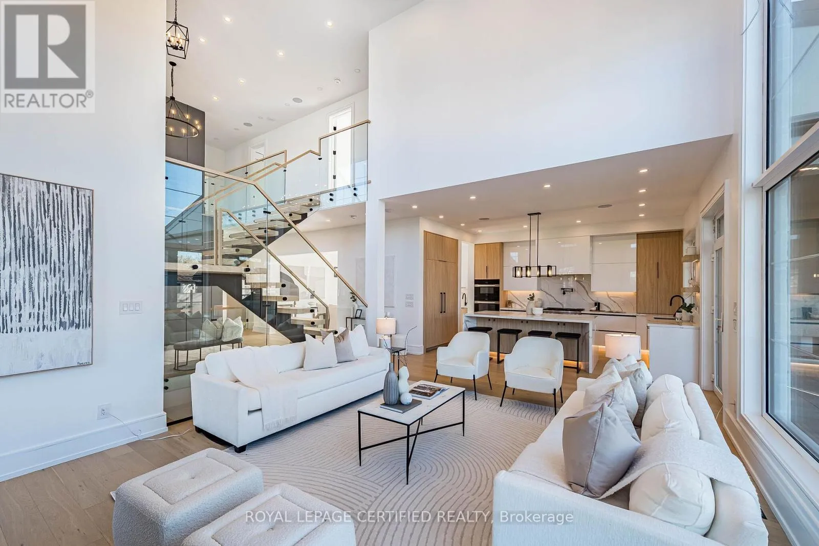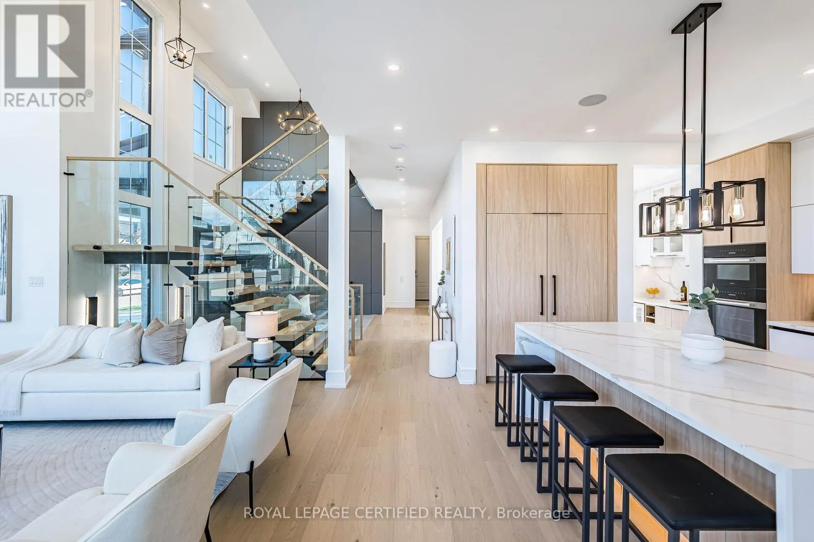 Cross Streets: Third Line/Bridge Road. ** Directions: Google Map. Experience uncompromising luxury in this newly built, architecturally striking residence where every detail has been meticulously curated and no expense has been spared. Designed and built by its owner-an architect-as his primary residence, this 5000 + sqfts of living space custom home reflects exceptional attention to detail and uncompromising quality throughout. From the moment you enter, the level of craftsmanship is immediately evident-featuring a sun- filled main floor office, soaring cathedral ceilings, and dramatic floor-to-ceiling triple- glazed windows and doors that flood the home with natural light. Designed for both elegance and functionality, the heart of the home is a bespoke chef's kitchen showcasing premium Miele appliances, custom cabinetry, and refined finishes, seamlessly complemented by a secondary kitchen and a fully finished lower level with matching attention to detail. The grand two-storey living space is anchored by a statement fireplace, while smart home integration enhances everyday living with built-in sound, security, and climate systems. This home is rich with high-end features, including heated flooring at the main entrance and in the primary ensuite with Wi-Fi control, an electric vehicle charger in the garage, and thoughtfully designed systems throughout. All bedrooms offer private ensuites with custom glass showers and premium fixtures, while the primary retreat provides a spa-like experience with elevated finishes and comfort. The lower level continues to impress with oversized windows allowing abundant daylight, along with a custom bar, home theatre, gym, and additional living space. It also includes a convenient secondary (backup) laundry and provisions for a full cooking kitchen, offering excellent flexibility for extended family or future use. A second-floor laundry adds everyday convenience and functionality. *** (id:27476)