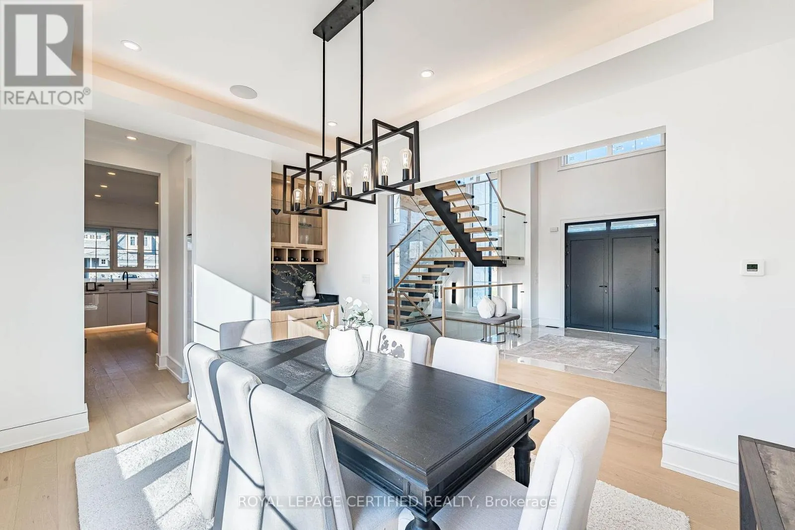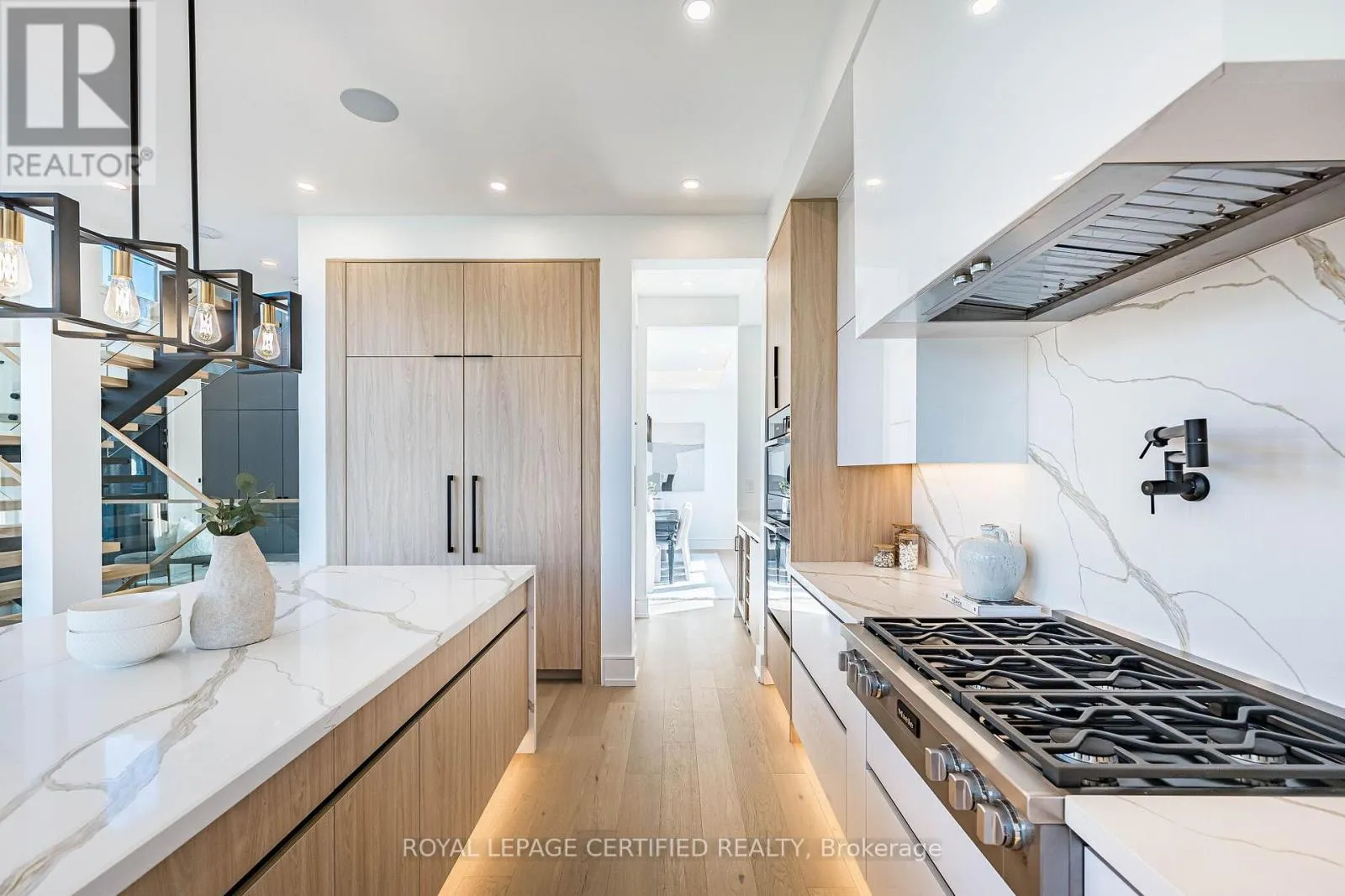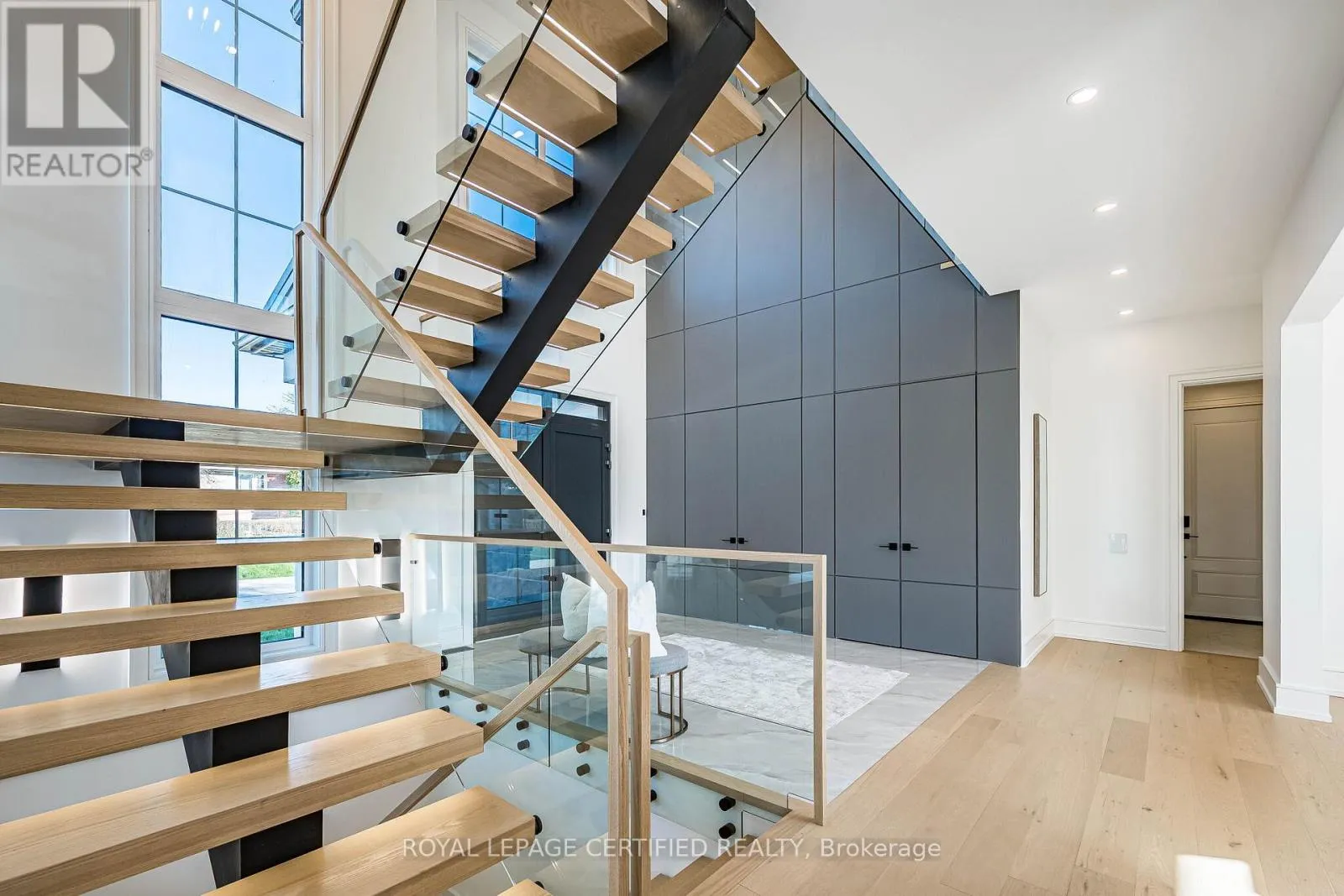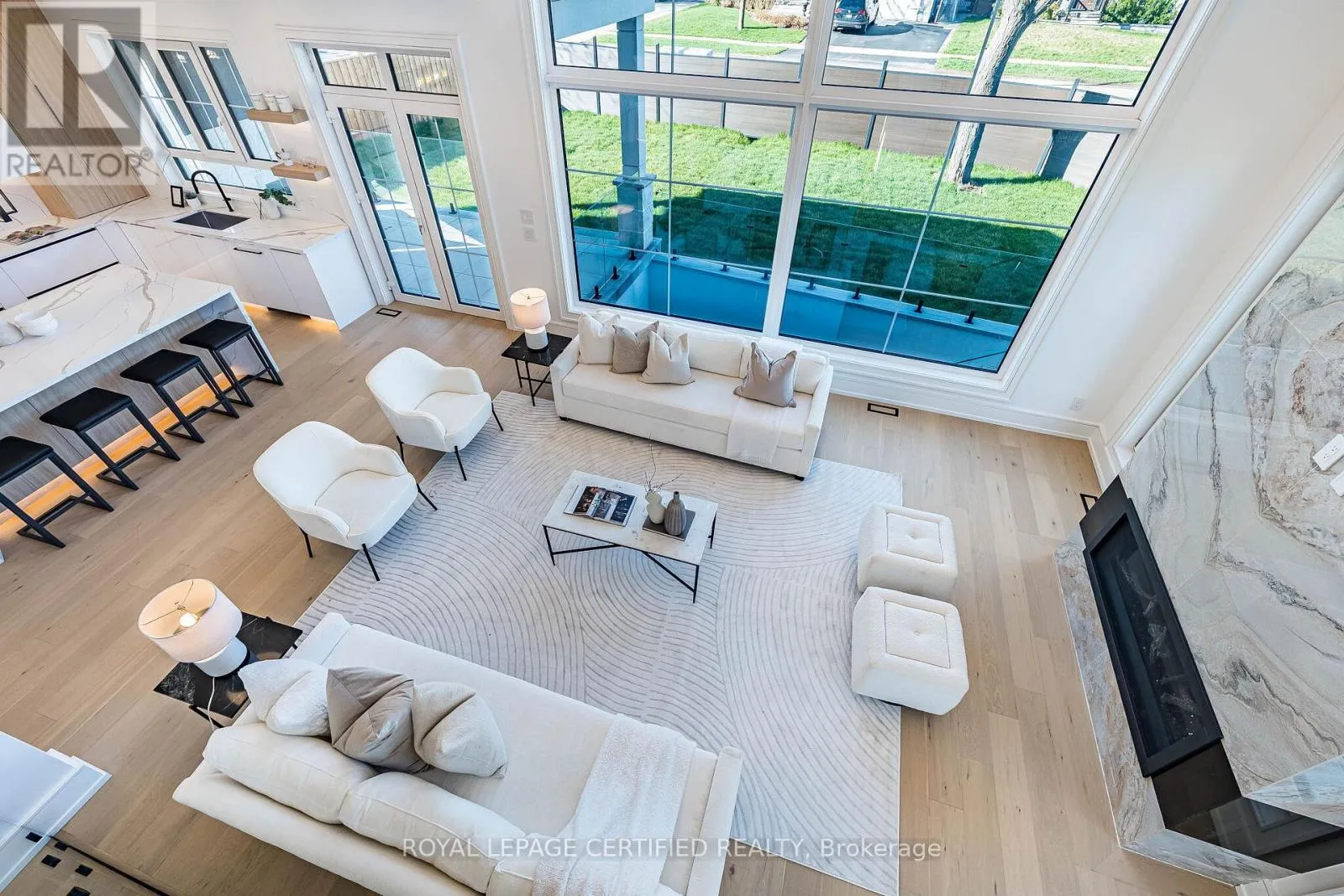 Cross Streets: Third Line/Bridge Road. ** Directions: Google Map. Experience uncompromising luxury in this newly built, architecturally striking residence where every detail has been meticulously curated and no expense has been spared. Designed and built by its owner-an architect-as his primary residence, this 5000 + sqfts of living space custom home reflects exceptional attention to detail and uncompromising quality throughout. From the moment you enter, the level of craftsmanship is immediately evident-featuring a sun- filled main floor office, soaring cathedral ceilings, and dramatic floor-to-ceiling triple- glazed windows and doors that flood the home with natural light. Designed for both elegance and functionality, the heart of the home is a bespoke chef's kitchen showcasing premium Miele appliances, custom cabinetry, and refined finishes, seamlessly complemented by a secondary kitchen and a fully finished lower level with matching attention to detail. The grand two-storey living space is anchored by a statement fireplace, while smart home integration enhances everyday living with built-in sound, security, and climate systems. This home is rich with high-end features, including heated flooring at the main entrance and in the primary ensuite with Wi-Fi control, an electric vehicle charger in the garage, and thoughtfully designed systems throughout. All bedrooms offer private ensuites with custom glass showers and premium fixtures, while the primary retreat provides a spa-like experience with elevated finishes and comfort. The lower level continues to impress with oversized windows allowing abundant daylight, along with a custom bar, home theatre, gym, and additional living space. It also includes a convenient secondary (backup) laundry and provisions for a full cooking kitchen, offering excellent flexibility for extended family or future use. A second-floor laundry adds everyday convenience and functionality. *** (id:27476)