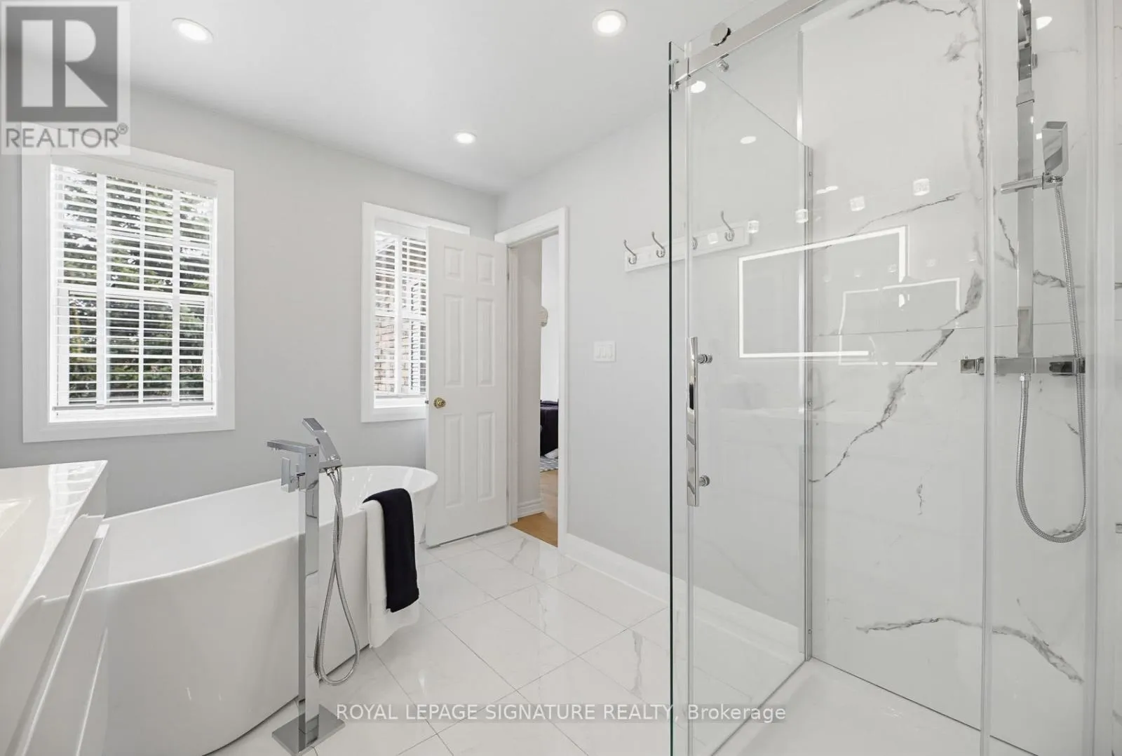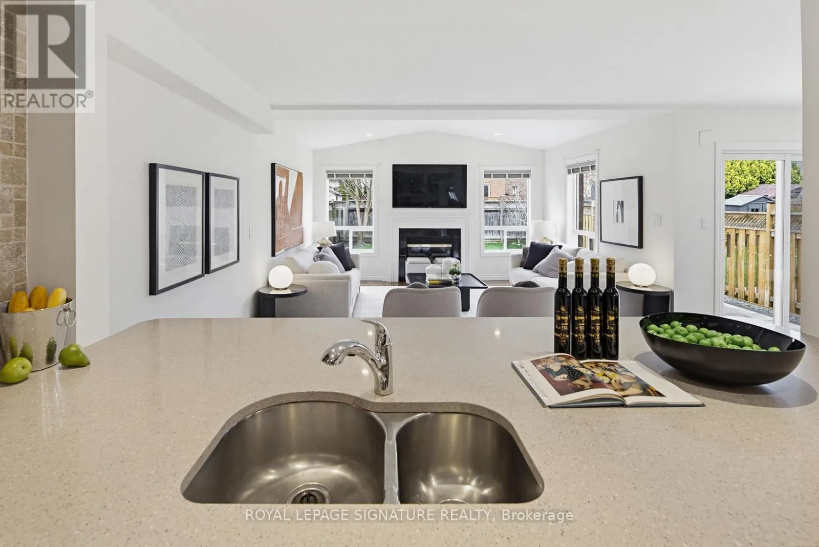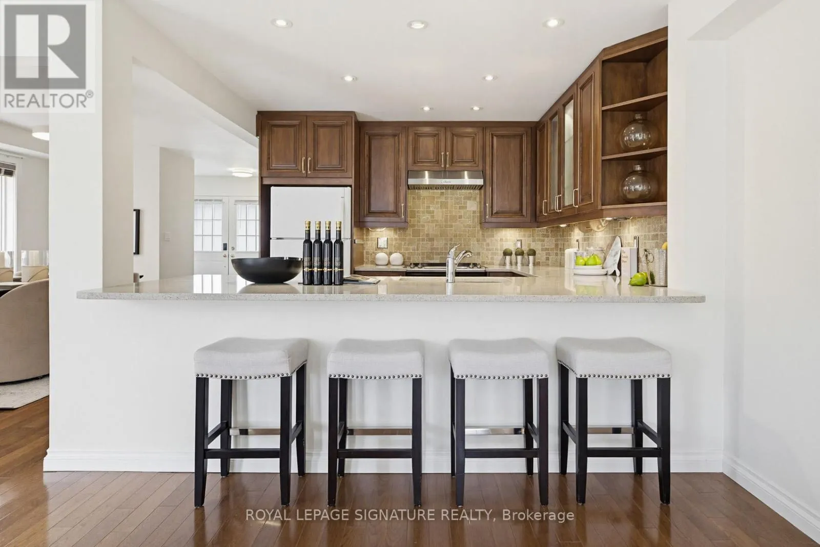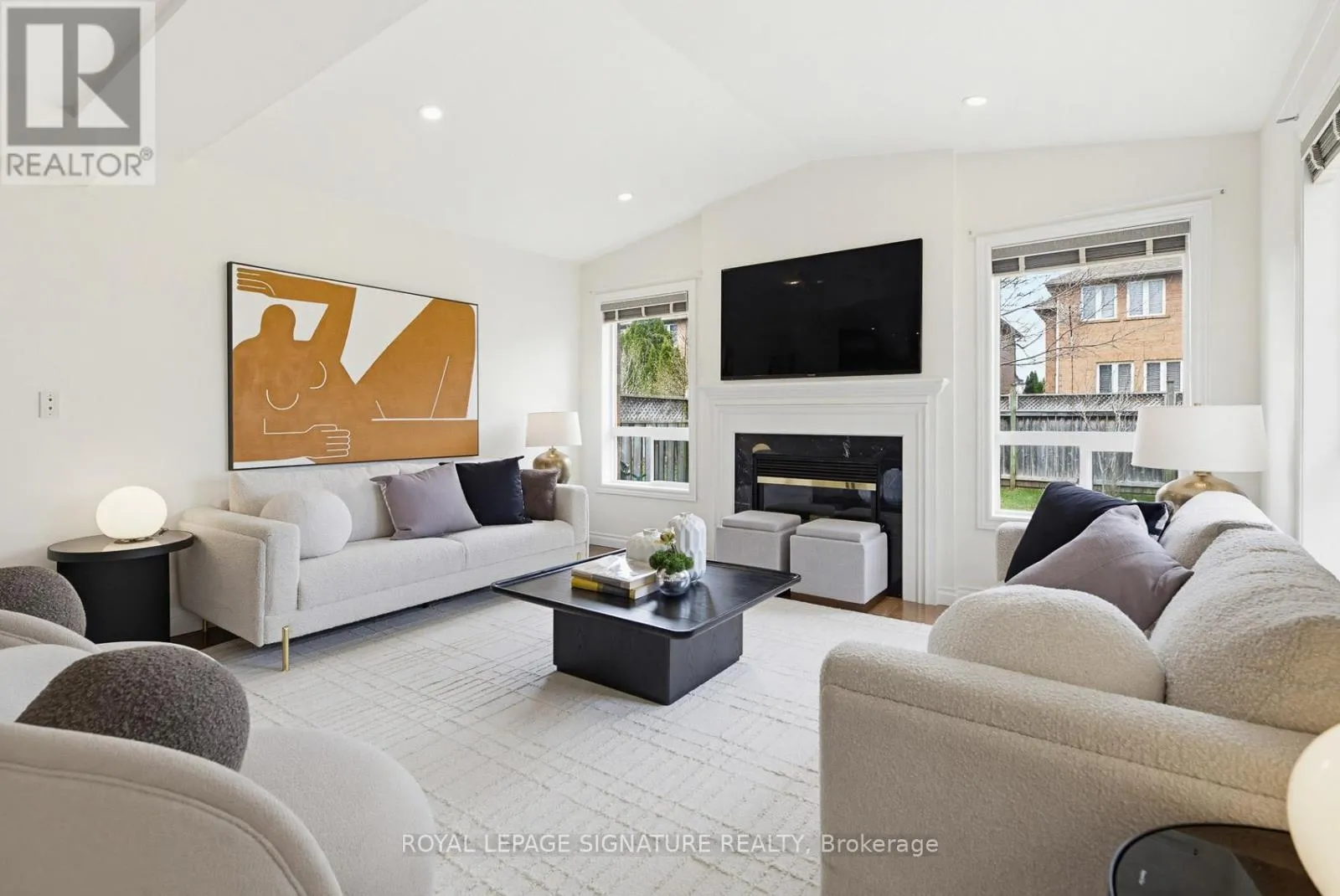 Cross Streets: WOODRIDGEWAY & EIGHTH LINE. ** Directions: WOODRIDGEWAY & EIGHTHLINE. Set on a quiet, family-friendly court in prestigious Iroquois Ridge North, this beautifully maintained 3-bedroom detached home delivers 1,894 square feet of thoughtfully renovated livingspace in one of Oakville's most sought-after school districts. Step inside to find richhardwood flooring throughout the main level, where an open-concept living room anchored by aclassic fireplace flows seamlessly into a formal dining area and private main-floor office.The kitchen is the heart of the home, featuring granite countertops, custom cabinetry, a full height tile backsplash, breakfast bar seating, and a suite of nearly-new stainless steel appliances (stove, dishwasher, and range hood all recently replaced). Upstairs, the spacious primary retreat is a true escape with a fully renovated spa-inspired 4-piece ensuite featuring a freestanding soaker tub, oversized glass shower, and vanity, along with a walk-in closet andprivate balcony walkout. Two generously sized additional bedrooms share a stylish renovated 3-piece bath with custom standing shower, and a convenient main-floor 2-piece powder room completes the layout. Enjoy summer evenings in the fully fenced private backyard with mature landscaping, a patio perfect for entertaining, and room for kids and pets to roam (fence and patio are newly built). Additional highlights include a full partially finished basement offering endless potential, attached single-car garage with private driveway parking for two. Heat pump & forced-air gas heating, and central air conditioning. Unbeatable location within walking distance to top-ranked Iroquois Ridge High School, Munn's Public School, Iroquois Ridge Community Centre, parks, trails, shopping, and transit, with quick access to the QEW, 403, and407. Move-in ready, meticulously cared for in a neighbourhood that rarely disappoints. (id:27476)