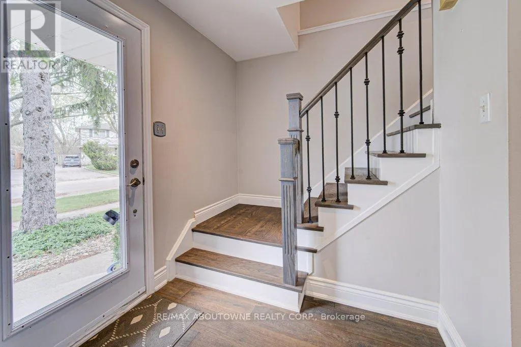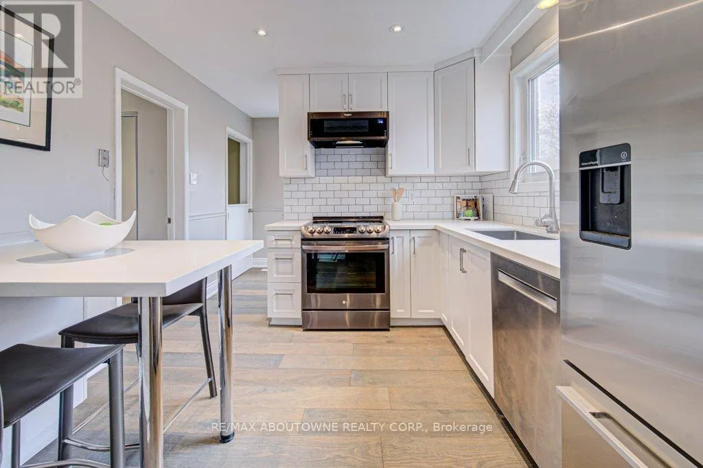 Cross Streets: Oxford/Otter. ** Directions: Upper Middle/Oxford/Otter. Impressive 4-bedroom, two-storey home located on a quiet cul-de-sac in the highly desirable College Park community of Oakville. This exceptionally well-maintained property features a custom granite kitchen with stainless steel appliances, and hardwood flooring throughout. The bright living room includes a cozy fireplace, complemented by a separate dining area, a convenient 2-piece bathroom, and a side entrance leading to a private backyard patio. The upper level offers four generously sized bedrooms, one currently configured as a walk-in closet but easily convertible back, along with a 4-piece bathroom featuring a glass shower & soaker tub,. The finished lower level includes a spacious recreation room, large laundry area, and ample storage. Ideally situated within walking distance to top-rated schools including Sunningdale Public School and White Oaks High School (IB Program), as well as Sheridan College, Oakville Place, Oakville Golf Club, GO Transit, major highways, shopping, and parks. A fantastic opportunity in a sought-after family-friendly neighbourhood. Don't miss this one! (id:27476)