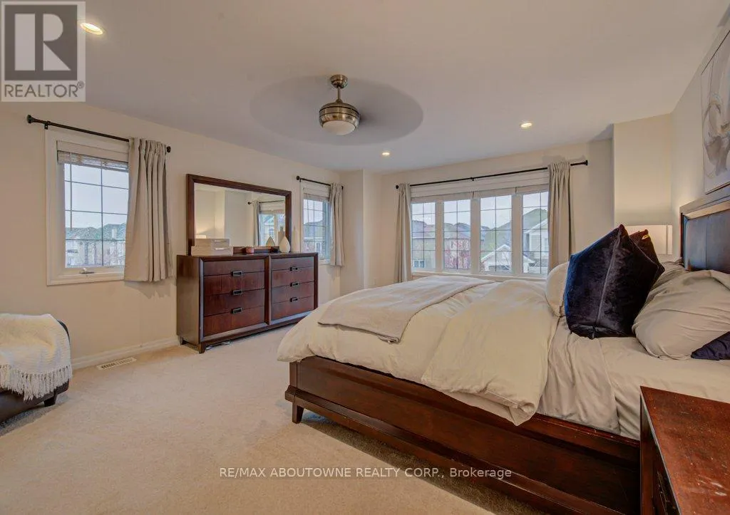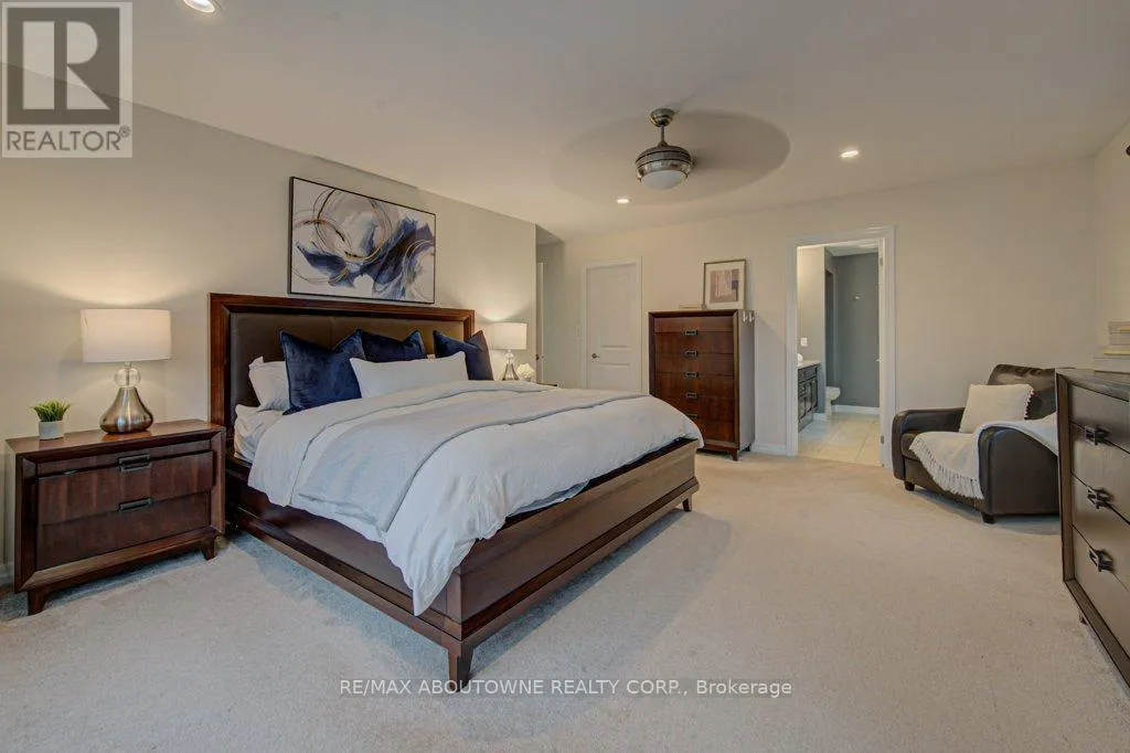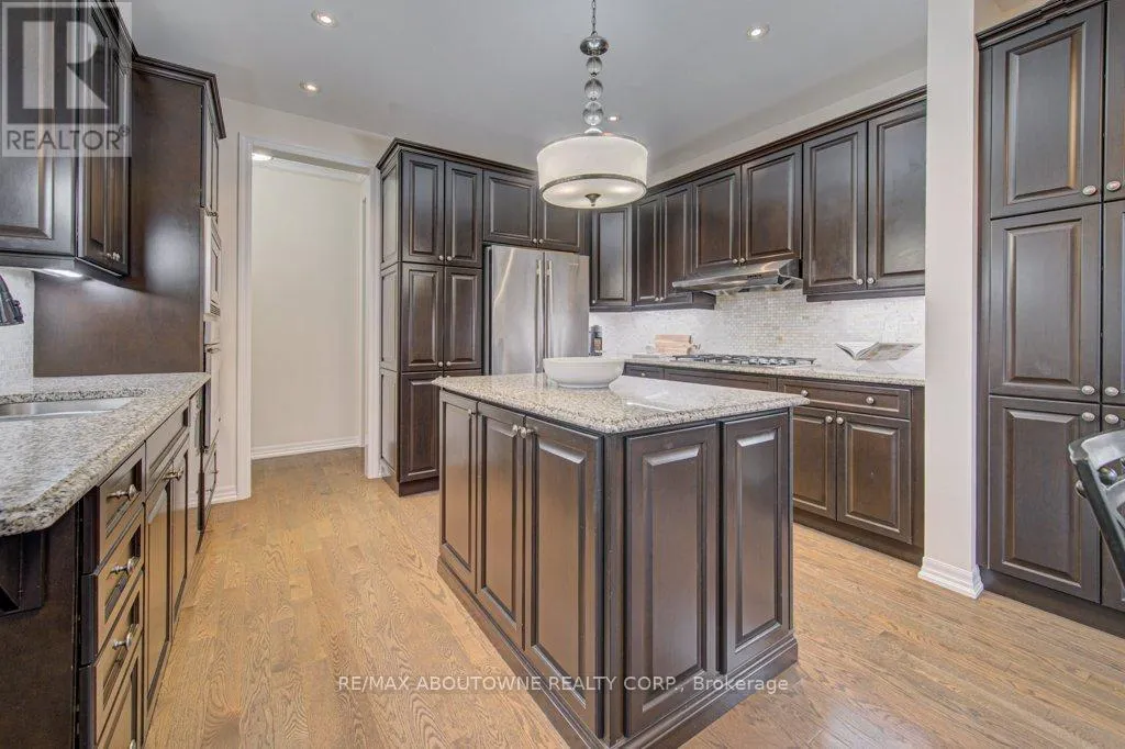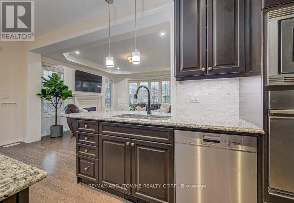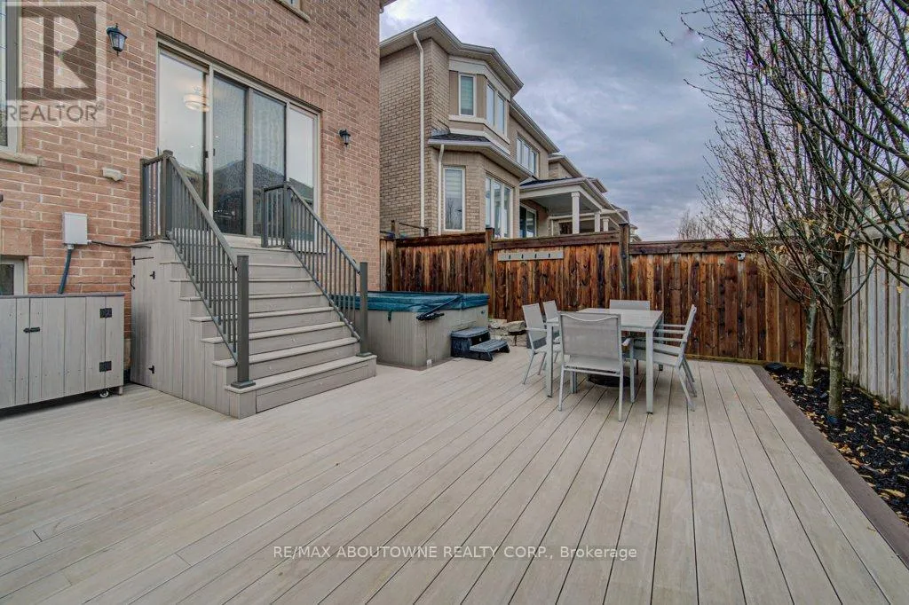 Cross Streets: Preserve/Cherryhurst. ** Directions: Dundas/Preserve/Cherryhurst. Stunning detached 4+1 bedroom 2-storey home in The Preserve, one of Oakville's most sought-after Uptown neighbourhoods. This meticulously maintained residence is loaded with upgrades throughout. The main level features 9' ceilings, hardwood floors, crown moulding, custom eat-in kitchen with centre island, breakfast bar, high-end stainless steel appliances, built-in pantry, granite countertops, and a walk-out to an incredible backyard complete with a synthetic deck, hot tub, and children's playground-perfect for entertaining and family living. Enjoy a spacious family room with coffered ceiling and a gas fireplace, along with a separate dining room, elegant living room with a second gas fireplace, and a convenient 2-piece powder room completing the main level. The upper level offers four generously sized bedrooms, including a bright and expansive primary suite with a walk-in closet and a luxurious 5-piece ensuite featuring a glass shower, soaker tub, and double sinks. The second and third bedrooms offer semi-ensuite access, along with an additional 4-piece bathroom, upper-level laundry, and a versatile hallway nook ideal for a home office or study area. The finished lower level boasts a large recreation area with built-in cabinet and bar fridge, a fifth bedroom (currently used as an exercise room) with a 2-piece ensuite, and ample storage space. A convenient location close to top ranked schools, shopping, parks & trails, Sixteen Mile Rec., highway and GO access. Don't miss out! (id:27476)