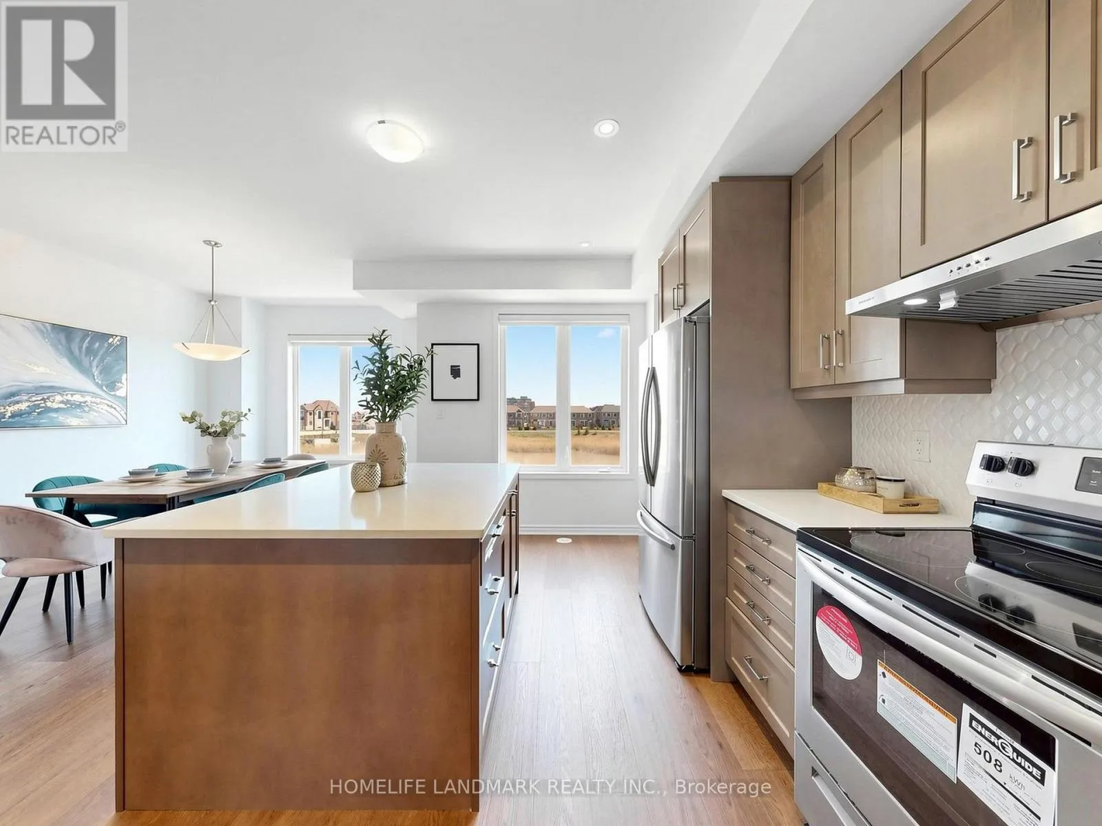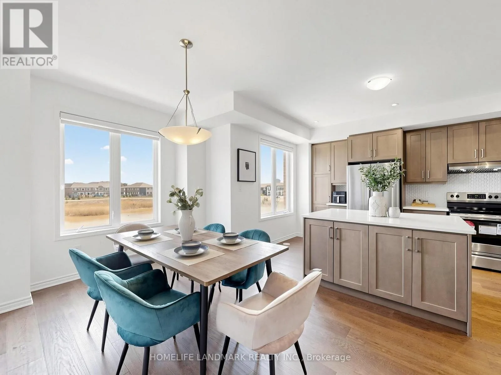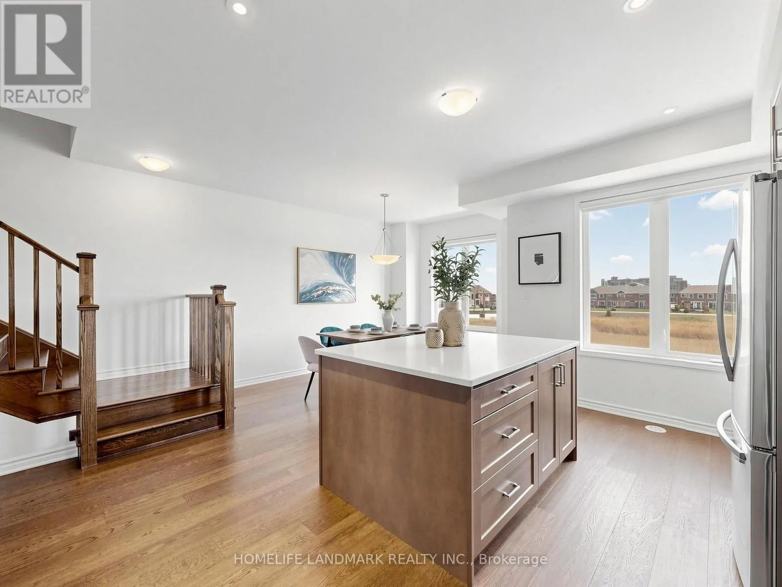 Cross Streets: 8th Line & Dundas St. ** Directions: John Mckay Blvd & Dundas St. 100% Freehold. This Stunning 4 Bed Executive Townhouse In Sought-After Upper Joshua Creek. Executive Features Include Wide Hardwood Throughout, Super Bright South Facing, 9 Ft Ceilings, Electric Fireplace in Family Room, Duo Use Living Room or Office. It also comes with Coveted Open Plan Layout, Generous 19Ft Wide Double Car Garage With Auto Opener, Large Kitchen With Fantastic Centre Island, Quartz Counters, S/S Appliances, Trendy Backsplash, And 3 Full Bathrooms Plus A Powder Room. Other Features Include The Large 4th Floor Terrace for Relax, and Unbelievable Magnificent Views Of John McKay Pond on all levels. Don't Miss Your Chance To Live In A Pristine Condition Home! Walking Distance to the New Elementary School, High Ranking Secondary School with IB Program. (id:27476)