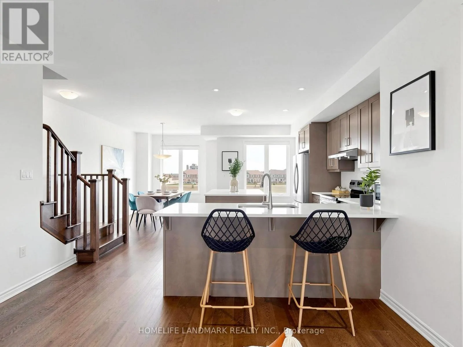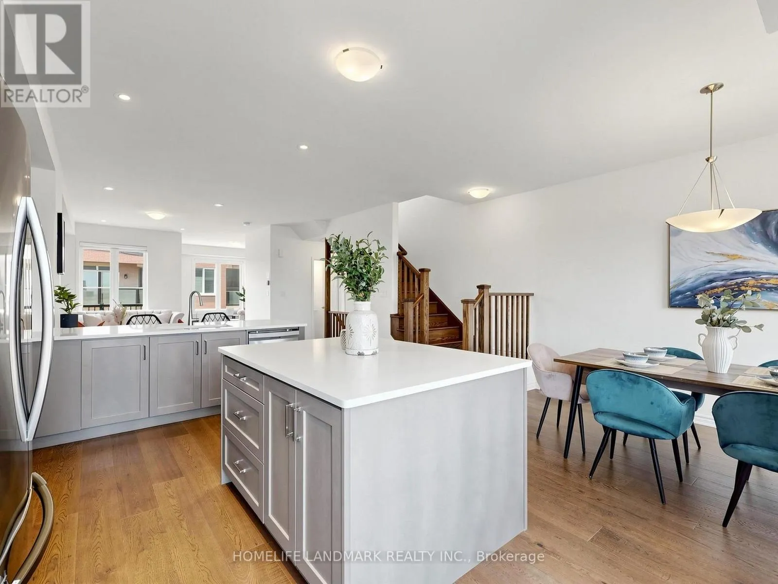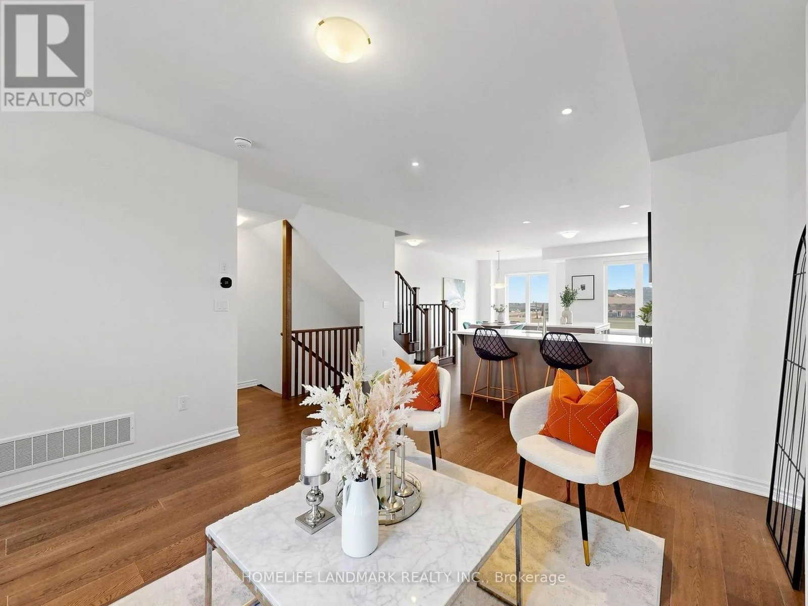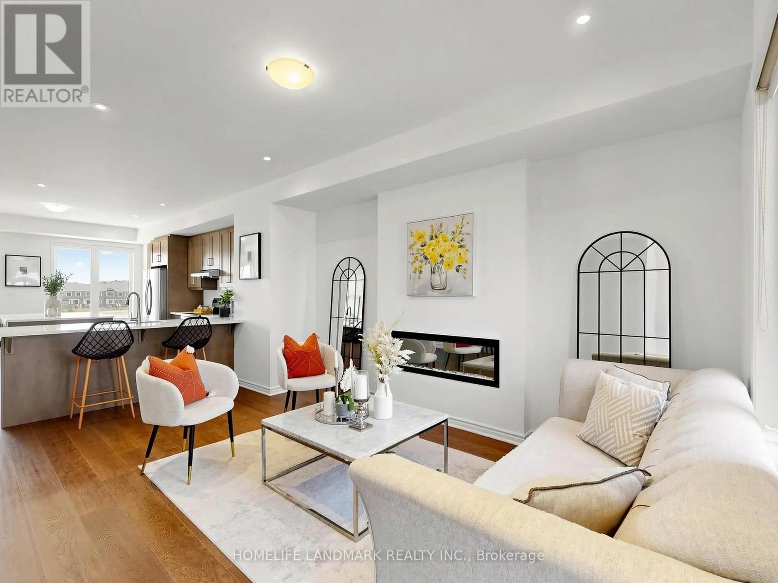 Cross Streets: 8th Line & Dundas St. ** Directions: John Mckay Blvd & Dundas St. 100% Freehold. This Stunning 4 Bed Executive Townhouse In Sought-After Upper Joshua Creek. Executive Features Include Wide Hardwood Throughout, Super Bright South Facing, 9 Ft Ceilings, Electric Fireplace in Family Room, Duo Use Living Room or Office. It also comes with Coveted Open Plan Layout, Generous 19Ft Wide Double Car Garage With Auto Opener, Large Kitchen With Fantastic Centre Island, Quartz Counters, S/S Appliances, Trendy Backsplash, And 3 Full Bathrooms Plus A Powder Room. Other Features Include The Large 4th Floor Terrace for Relax, and Unbelievable Magnificent Views Of John McKay Pond on all levels. Don't Miss Your Chance To Live In A Pristine Condition Home! Walking Distance to the New Elementary School, High Ranking Secondary School with IB Program. (id:27476)