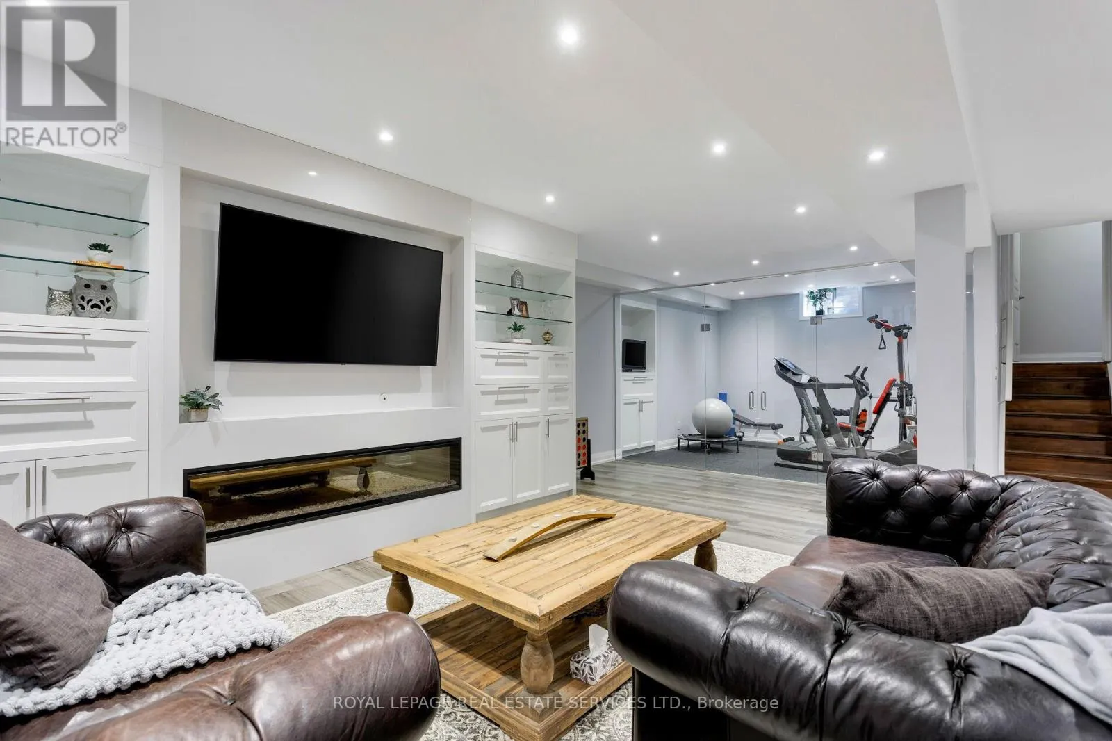 Cross Streets: Liptay & Colonel William Pkwy. ** Directions: Colonel William Pkwy- Liptay Ave. Discover luxury living in this Branthaven executive home in Oakvilles prestigious Bronte Creek neighbourhood, just steps from trails, Colonel William Woods Park, & Bronte Creek Provincial Park ideal for hiking, biking, & family adventures. This exceptional Bronte Creek real estate gem sits on a re-landscaped lot with a stone & stucco facade, stone tile walkways, manicured gardens, soffit lighting, & a private backyard oasis featuring a saltwater pool, sheer descent waterfall, & extensive stone patio for outdoor entertaining. Inside, exceptional upgraded living space includes 4+1 bedrooms, 4.5 bathrooms, & a professionally finished basement (2020) with a recreation room, wet bar, glass-enclosed gym, a fifth bedroom, & a modern 3-piece bath. Elegant finishes, wide-plank hardwood floors, crown mouldings, designer tiles, custom cabinetry, custom blinds, California shutters, & stone countertops are complemented by 9-foot ceilings & expansive windows. The main level offers formal living & dining rooms, a custom kitchen with premium appliances, a dramatic two-storey family room with fireplace, a private office, a dream laundry room & chic powder room. Upstairs features 4 spacious bedrooms & 3 spa-like bathrooms, including a primary retreat with a 5-piece ensuite boasting a lavish soaker tub & separate glass shower. Recent upgrades include 2 updated upstairs bathrooms, new second level laminate floors & baseboards, 100 new pot lights, updated fire stones in the electric fireplace, integrated wall vents, designer feature wall in the dining room, fresh paint, new door hardware, & a Tesla charger added to the garage. Located minutes from top-rated schools, shopping, restaurants, Oakville Trafalgar Hospital, & major highways, this showpiece family home in Bronte Creek offers luxurious living in a prime Oakville location. (id:27476)