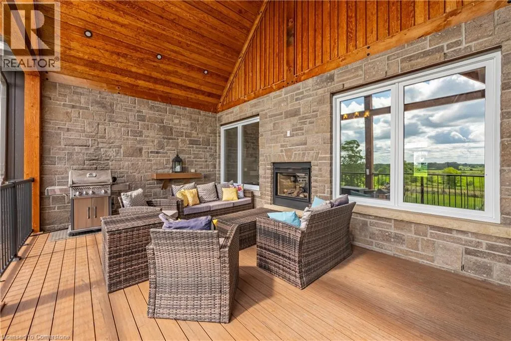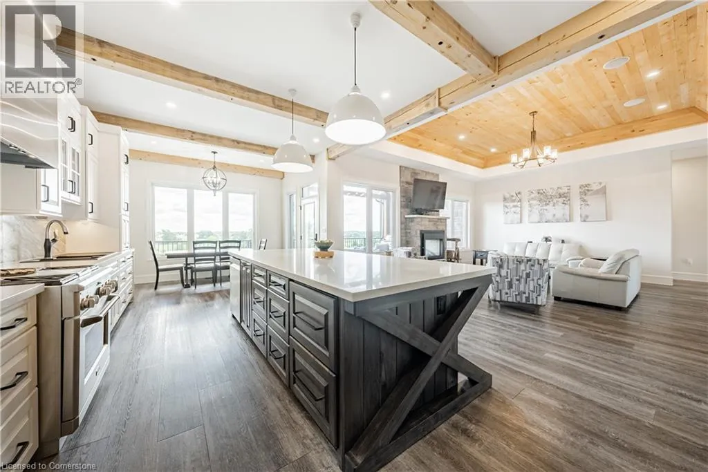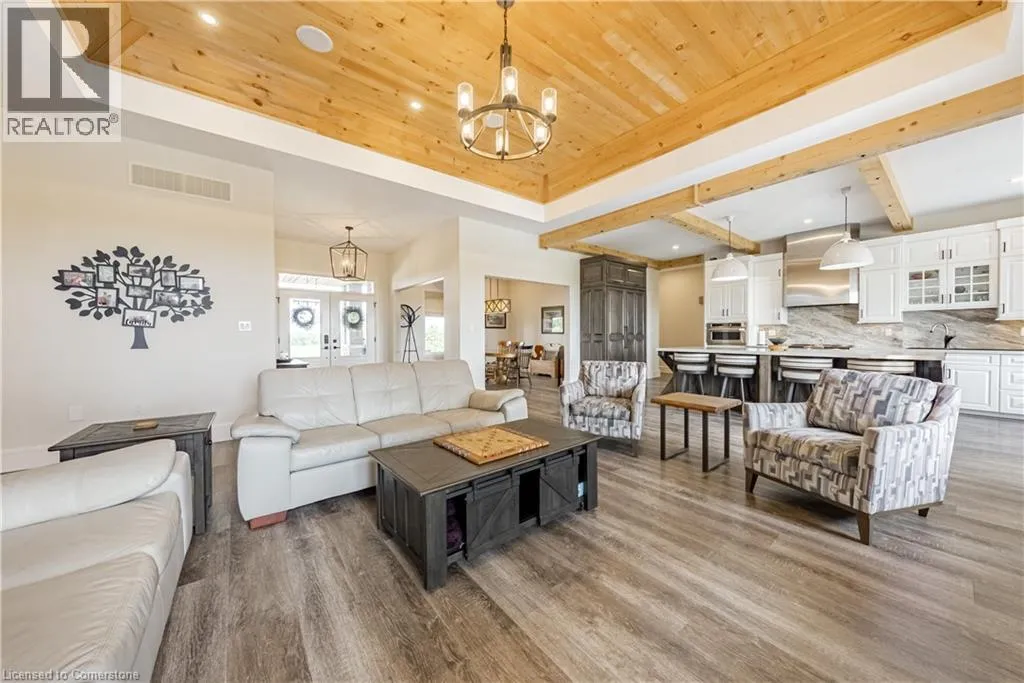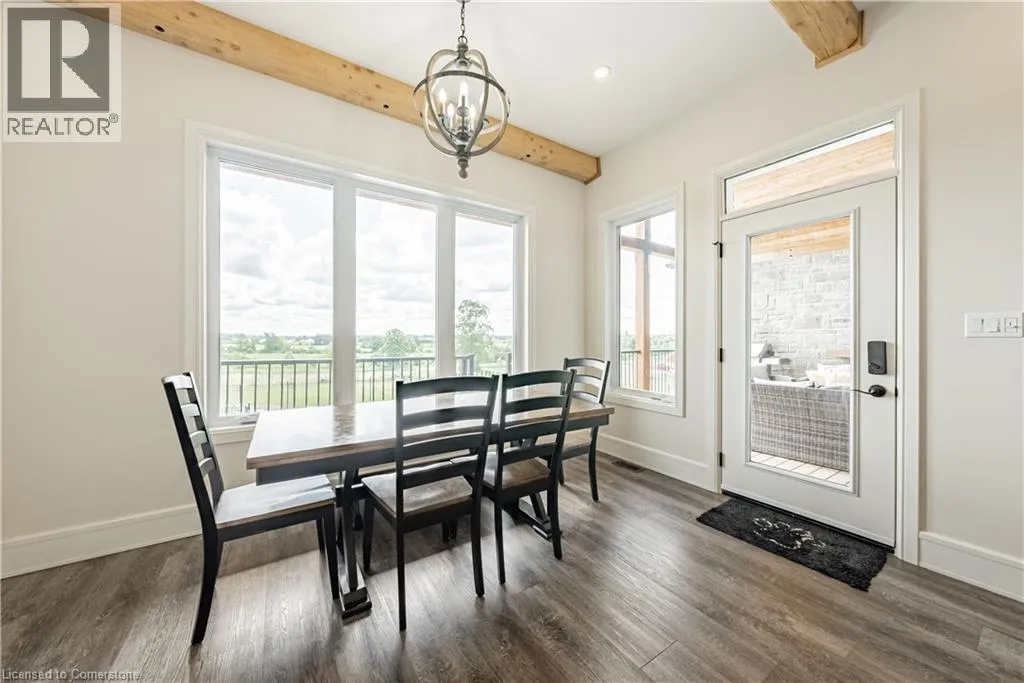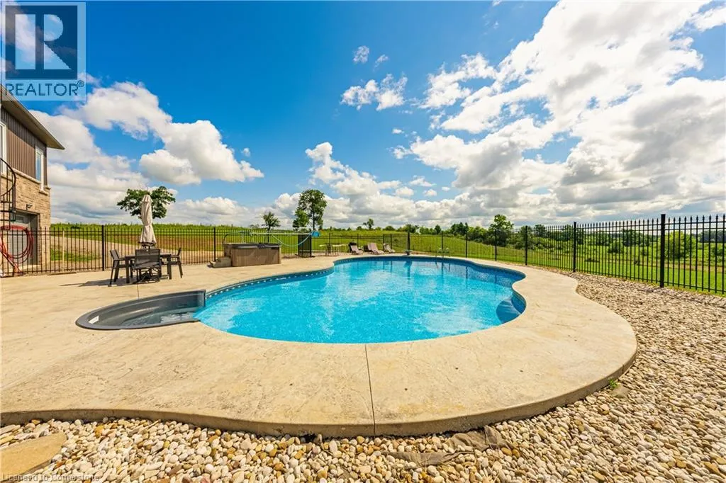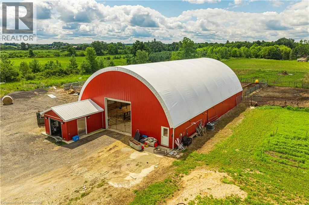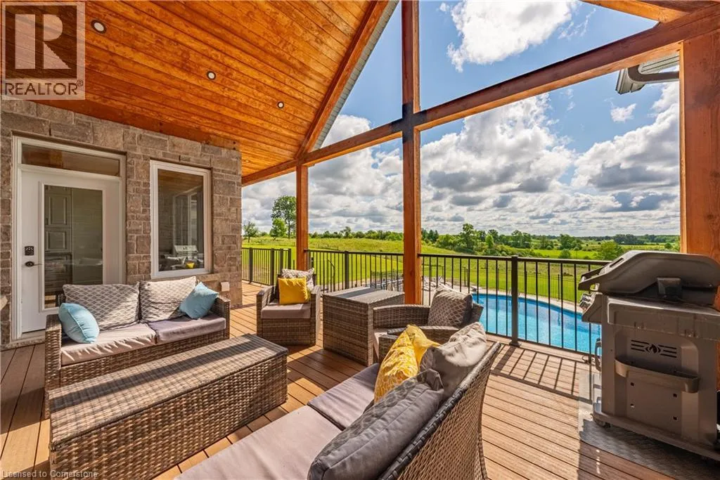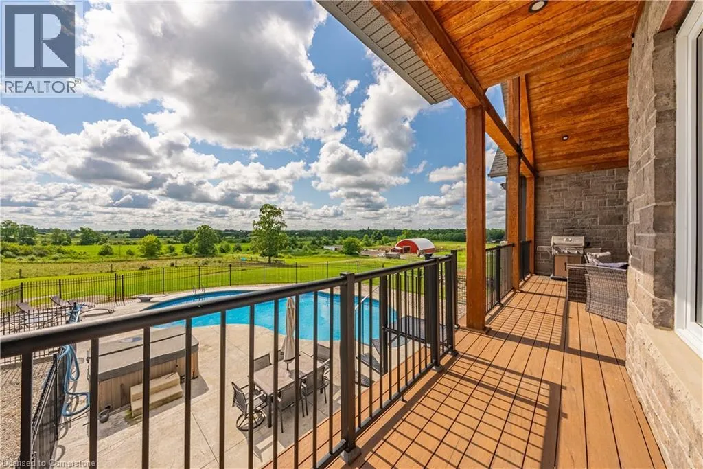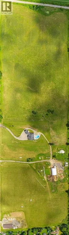 Highway # 54 to Middleport Road Welcome to your dream estate! This custom-built bungalow offers over 5,500 sq ft of luxurious living space, set on 43 acres of picturesque land. The meticulously designed home boasts three distinct living spaces, perfect for intergenerational living or hosting guests. The main floor features an open concept layout with a high-end kitchen flowing into the great room. A natural gas double-sided fireplace enhances the living room and outdoor balcony, that overlooks the heated saltwater pool. Four generously sized bedrooms include a primary suite with a 5-piece ensuite and walk-in closet, plus three more bedrooms, one with a 3-piece ensuite and two sharing a Jack and Jill 5-piece bathroom. The upstairs loft offers a private escape with a kitchenette, bedroom, 3-piece bath, and separate entrance. The basement features a separate entrance as well, two bedrooms, 3-piece bath, kitchenette, and large living area. It also connects to a lower 4th garage with a 2-piece bathroom. Property highlights include a 50' x 84' barn, perfect hobby farm set-up and a 5,659 sq ft shop with offices and a spacious workshop. The shop includes two washrooms and a spacious loft for storage. This home offers many rare amenities and is a must-see. Contact us today for more details and don't miss out on the opportunity to own this one-of-a-kind property! Additional features available in supplements. (id:27476)