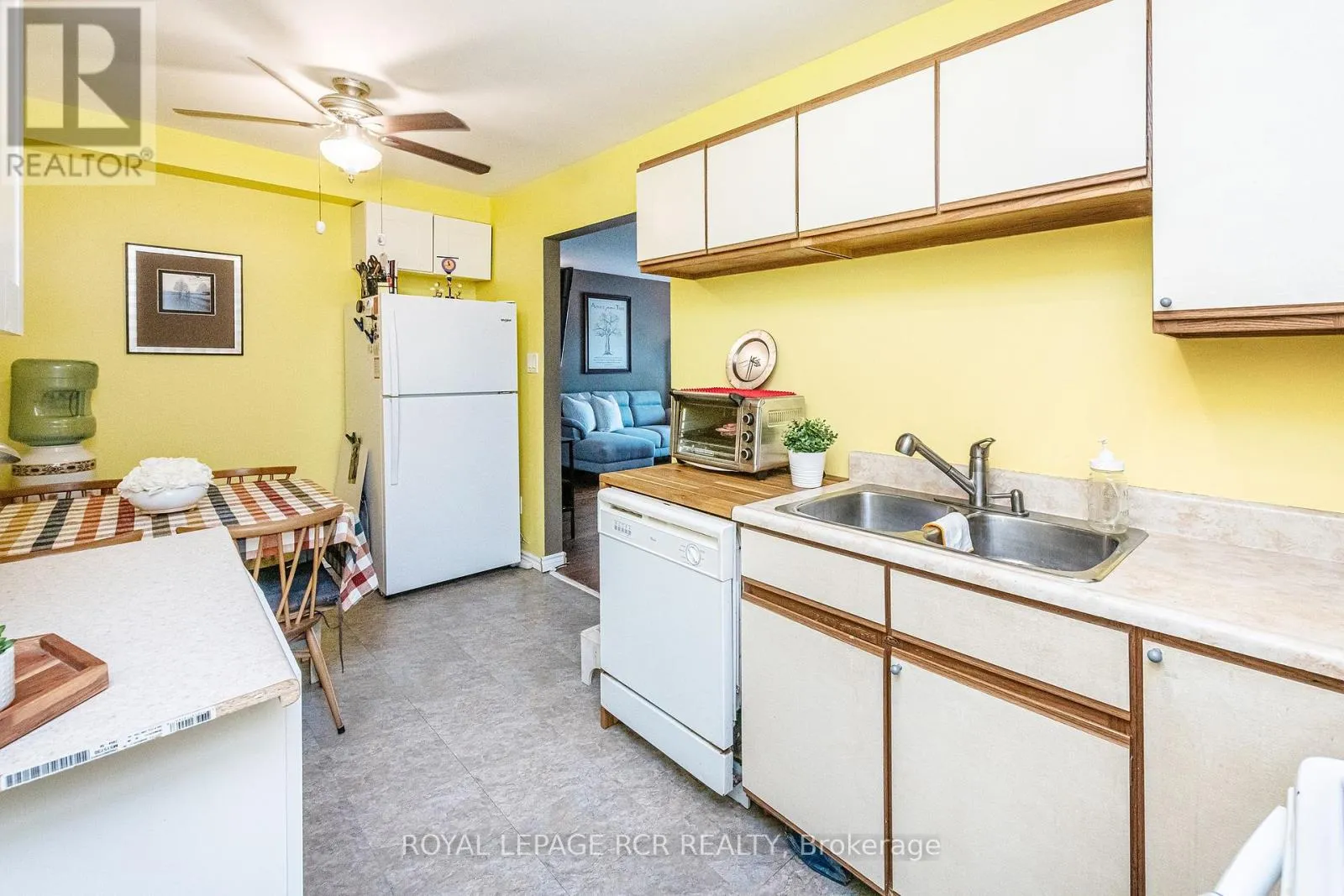Cross Streets: Parkview/Lawrence. ** Directions: Parkview to Lawrence. Perfect Starter or family Home with In-Demand 3-Car Parking! Welcome to this charming 3-bedroom, 2-bath townhouse ideally located near schools, Everykids Park, and convenient transit options making it perfect for young families or first-time buyers. Step inside to discover rich hardwood flooring that flows through the bright living room complimented by the bay window. Eat-in kitchen boast vinyl flooring, butcher block counter top. The upper level offers three generous bedrooms all with hardwoods and Main 4pc bath. The partially finished basement includes a versatile rec room, ideal for movie nights, a playroom, home office, or gym. And the best part? In-demand parking for 3 cars with an attached garage and space for two more vehicles in the private driveway, you'll have the convenience and flexibility that's hard to come by in townhouse living. Don't miss this well-maintained home in a fantastic neighborhood with all the essentials nearby! (id:27476)
