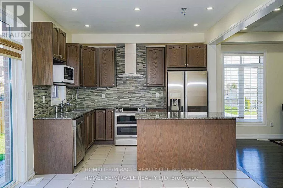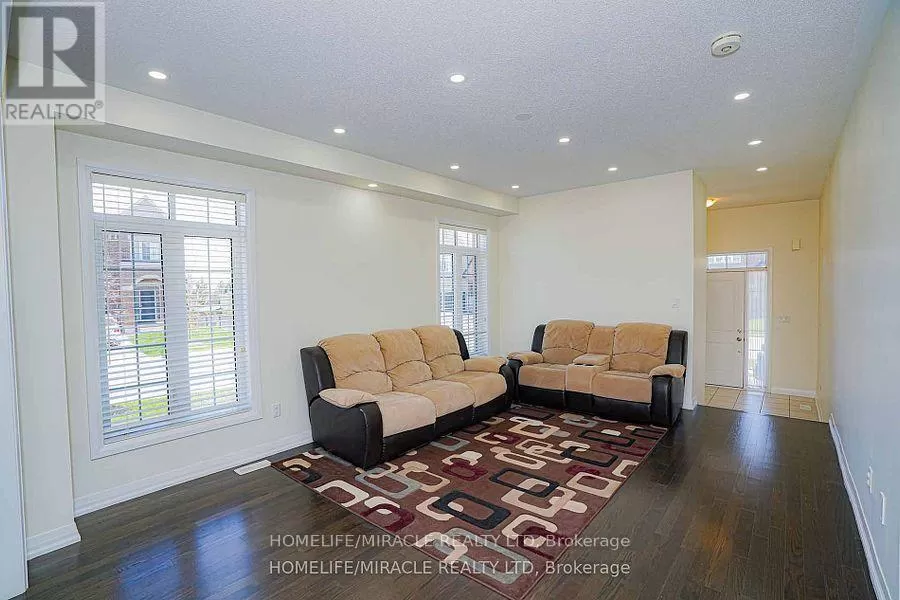 Parkinson Crescent & Drew Brown Blvd Stunning corner detached home with exceptional curb appeal and a thoughtfully designed layout, perfect for family living and entertaining. Enjoy a spacious family room with a cozy fireplace, a kitchen featuring a large island, and a versatile separate dining room paired with a generous living area. Beautiful hardwood flooring spans the main floor, complemented by elegant tile in the kitchen. Upstairs, you'll find three well-sized bedrooms, including a luxurious master suite with a 5-pc ensuite and a walk-in closet with custom organizers. The finished legal basement with separate entrance includes living area, one bedroom, a full kitchen, and a washroom ideal for extended family or rental income. Soaring 9-ft ceilings throughout main floor add to the sense of space. Additional features include a practical mudroom, dedicated separate laundry room (above ground and basement), and freshly painted interiors. Exterior highlights include a full brick facade, spacious front and back yards, exterior pot lights, a fully fenced yard, and an attached 2-car garage. A true gem on a premium lot move-in ready and not to be missed! (id:27476)