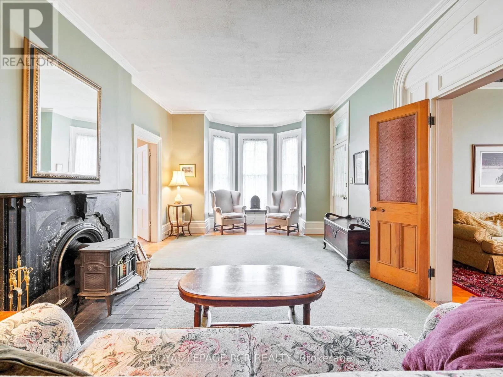 Cross Streets: First Street - Third Avenue. ** Directions: First Street to Third Avenue. Admired for over 140 years, this sprawling & stately home is a must see. A unique property with endless possibility located in the heart of town. Timeless, quality construction & details thru out including original doors, trim, floors & staircases, spacious principal rooms & ceiling height, multiple walkouts from the main level to mature and private lot- 164 ft. x 187 ft., approximately .70 acre with the house sited in centre of lot. Enjoy a grand foyer & front hall, dedicated library, formal living room with original fireplace and walkout to covered side porch. Enjoy entertaining in an expansive dining room with 2nd original fireplace or retreat to read a book in the cozy den. The kitchen offers lots of space for preparing meals & a large breakfast area with glass walkout door to side patio. The rear main floor laundry room offers a private 2 piece powder room and walkout to yard. The elegant front staircase leads to an open landing area and primary bedroom with walk-in closet & 3 piece ensuite bath, as well as main bath with whirlpool tub & additional bedrooms. The 2nd or rear staircase leads to a charming suite with bright & spacious living/dining room, kitchen, 4th bedroom and full bath - an ideal space for guests or extended family & can be closed off from the rest of the 2nd floor space. Outside you find lots of parking area, an enormous yard with mature trees and rear storage/driveshed. Rare opportunity for a property of this size in a downtown Orangeville location. (id:27476)