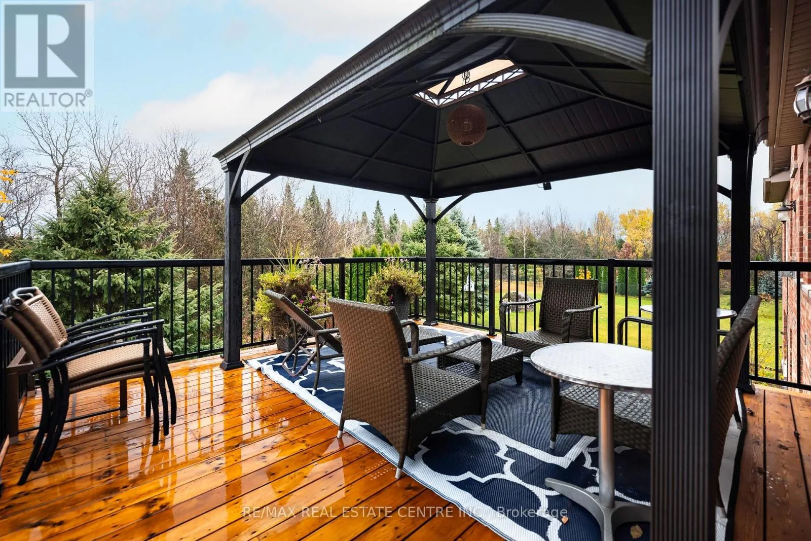 B Line & E Garafraxa-Caledon Townline Nestled on a quiet cul-de-sac known as Credit Springs Estates, this bungalow brings together space, light, and a setting that feels worlds away yet close to everything. Backing onto conservation and framed by mature trees, it offers 2 + 2 bedrooms, 3 baths, and 2,573 square feet (MPAC) of thoughtfully finished space. Inside, clean lines and warm finishes create a calm, natural flow. The main living area opens to a wall of windows that fill the home with light and views of the surrounding greenery. The kitchen blends form and function with granite counters, a large island, and direct access to a bright reading room and deck with gazebo-perfect for quiet mornings or evening gatherings. A formal dining room and a well-planned butler's pantry add a touch of everyday luxury. The primary suite feels private and comfortable with its own ensuite and treetop view. Downstairs, the walk-out basement adds flexibility with two bedrooms, a full bath, and open living space, while still leaving plenty of storage. Set in one of Orangeville's most exclusive neighbourhoods, this is a home for those who value nature, quiet streets, and easy living-just minutes from local shops, restaurants, and quick connections to Highways 9 and 10. (id:27476)