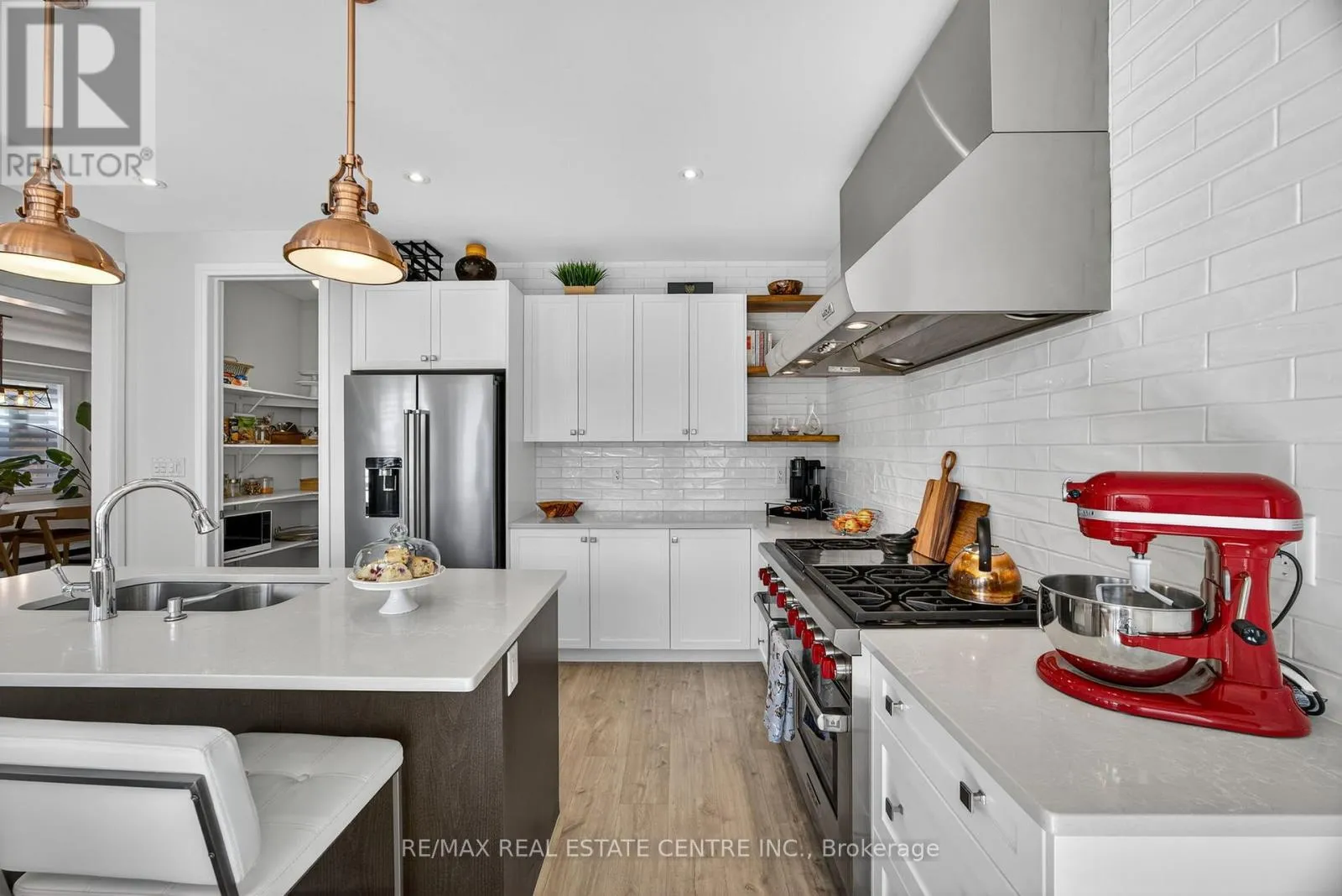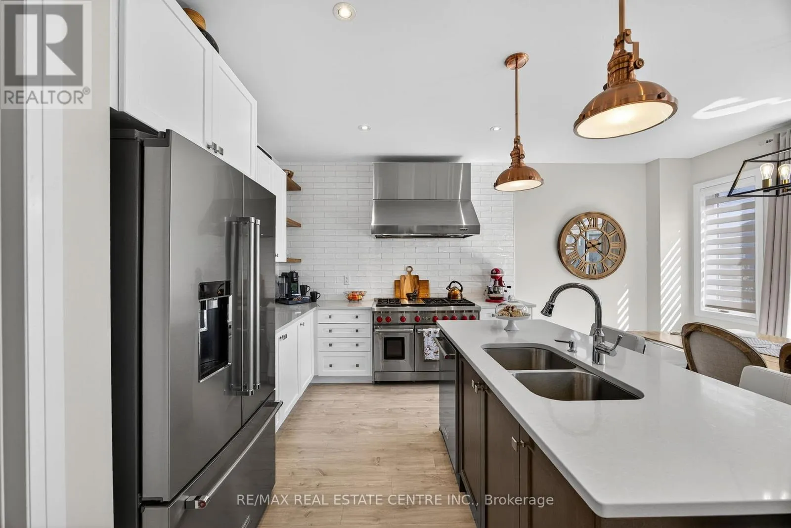 Cross Streets: Drew Brown & Parkinson. ** Directions: Hansen to Parkinson to Drew Brown Blvd. The largest model in this desirable enclave offering 2,990 Sq Ft of elegant, upgraded living space plus an unfinished walkout basement full of potential. Beautiful all-brick exterior on a 45-foot premium lot with no sidewalk in front and walking trails behind. Step inside from the covered front porch into a designer foyer with slatted wood accents, sculptural lighting, and a clear sense of sophistication. The main floor features 9 ft ceilings, 8 ft doors, and wide openings that create an open, airy feel throughout. A private office, formal dining room, and bright living area with gas fireplace flow seamlessly into the chef's kitchen, showcasing a 6-burner Wolf double oven, quartz counters, wraparound backsplash, and a walk-in pantry, along with thoughtful extras like a breakfast bar island with upgraded pendant lighting and a reverse osmosis system. Southern exposure fills the kitchen, living room, and yard with natural light all day, while the unfinished walkout basement offers endless potential-perfect for an in-law suite, recreation area, or home gym. The main level features hard-surface flooring throughout, complemented by upgraded lighting and window treatments.Upstairs, four bedrooms and three full baths include a primary retreat with double-door entry, a massive walk-in closet, and a luxury ensuite with glass shower, soaker tub, double sinks, and a smart toilet.Set in a family-friendly community surrounded by ponds, parks, schools, and shops, this home combines elegant design, everyday comfort, and endless versatility. (id:27476)