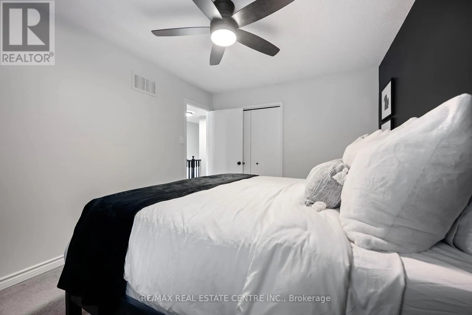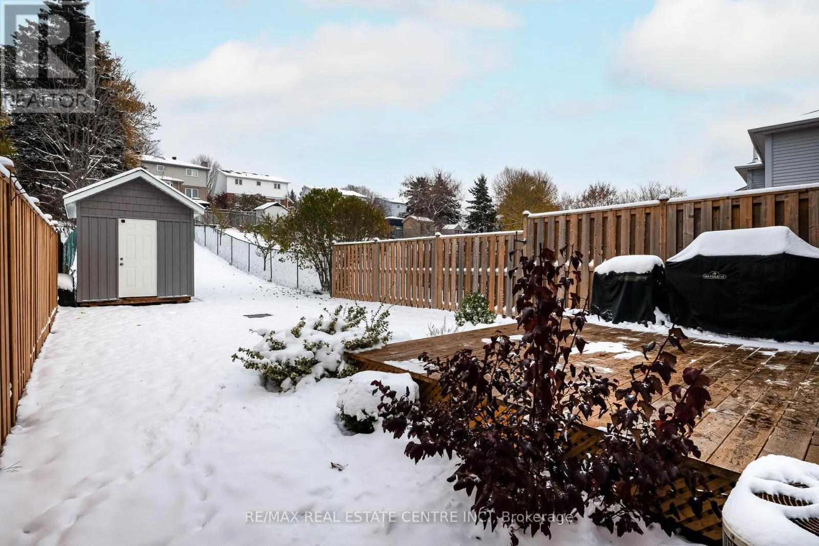Cross Streets: Buena Vista Dr/ Lakeview Crt. ** Directions: Hwy 10 to Buena Vista Dr to Lakeview Crt. Welcome to your beautifully renovated boho-inspired semi in Orangeville! This stylish home offers a modern aesthetic with a custom feature wall, vibrant live plant accents, and a bright, open-concept main floor perfect for everyday living and entertaining. The kitchen is a chef's dream, featuring newer white cabinetry, stainless steel appliances, and a functional layout. Upstairs you'll find three generous bedrooms along with a tastefully updated bathroom (2023). Step outside to the fully fenced backyard and enjoy the new deck (2024), large 12'x8' storage shed, and gas BBQ line, ideal for relaxing or hosting friends and family.This home is loaded with updates for peace of mind including siding, soffit, fascia and eaves (2023), newer windows and patio door, roof (2018), newer garage door and front entry door, furnace with humidifier (2014), and driveway (2020) that accommodates three vehicles. Basement offers a rough-in for a second bathroom, great future potential. Located close to local amenities, shopping, parks, and Island Lake Conservation Area (with beach area), plus school bus pick-up and public transit right at the end of the street. This location truly checks off all the boxes.Move-in ready, fully updated, thoughtfully designed! This is the one you've been waiting for. (id:27476)