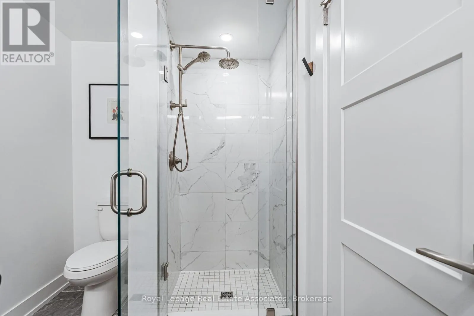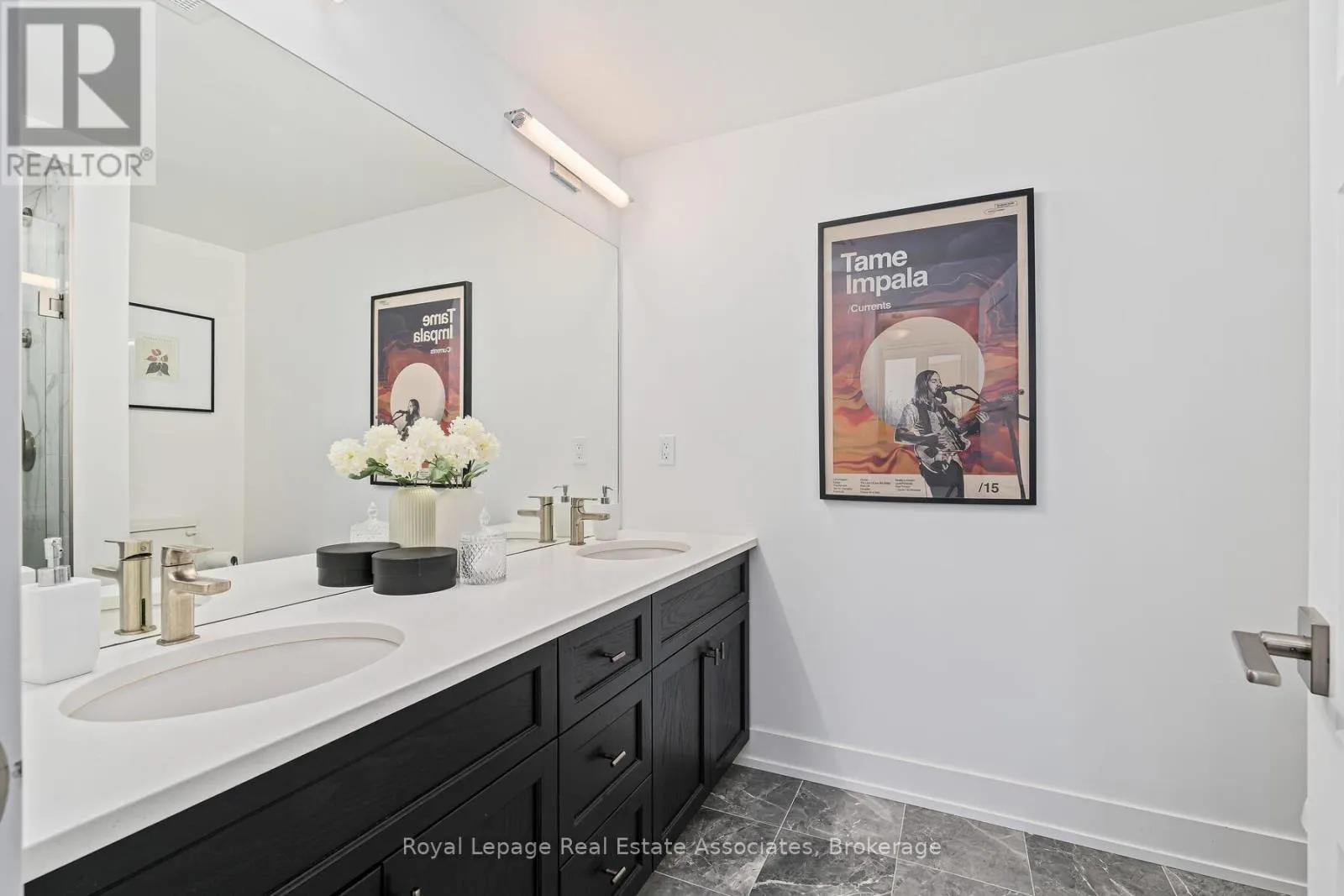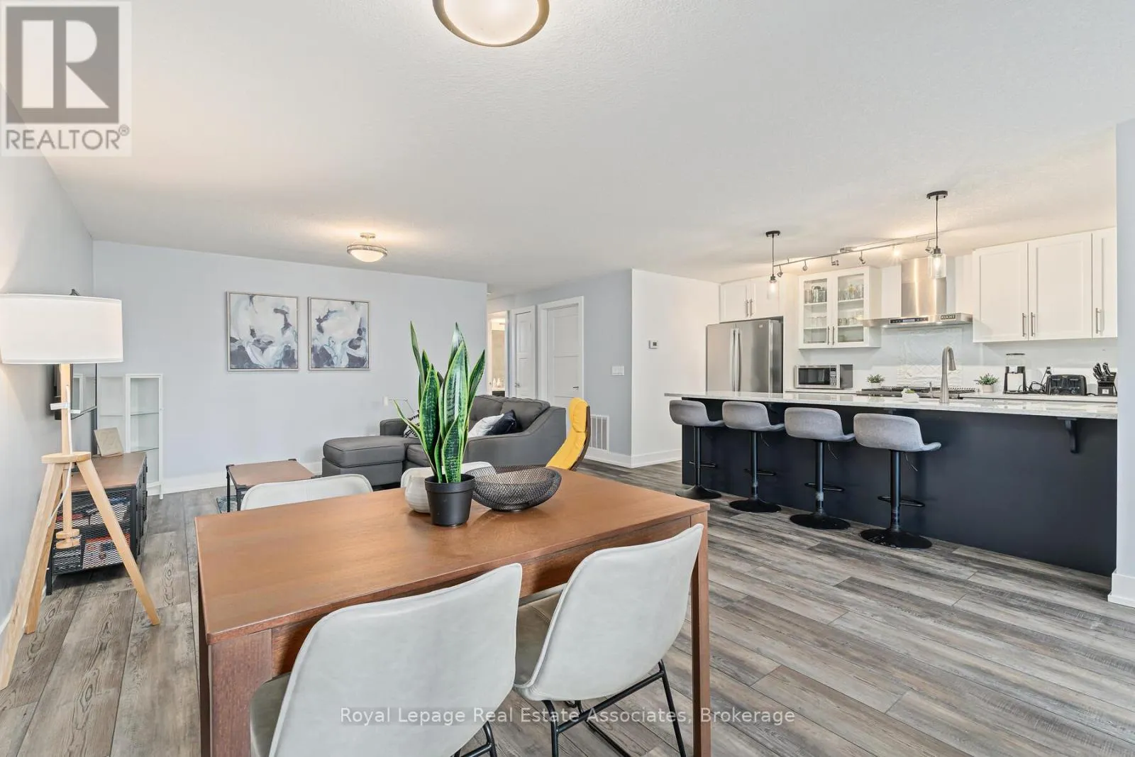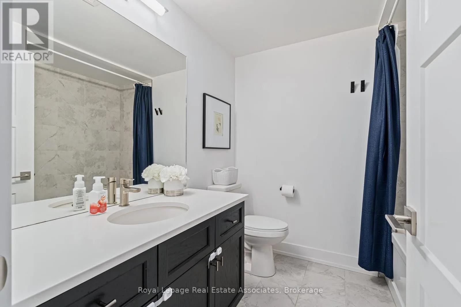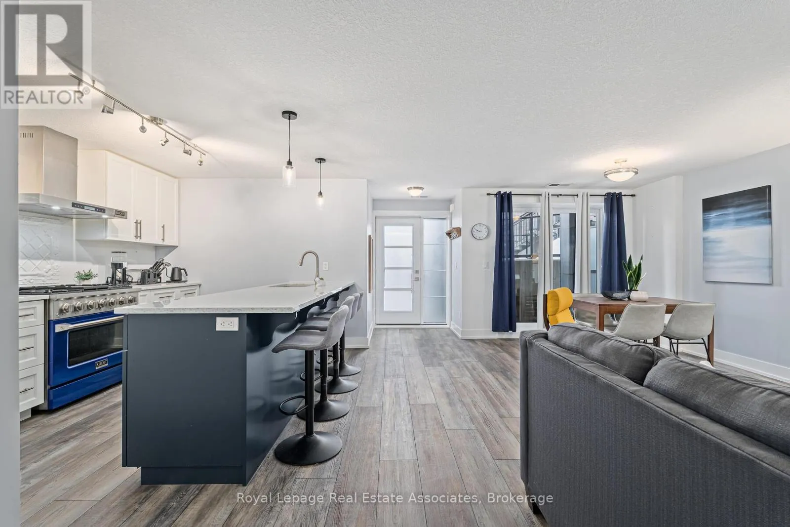 Cross Streets: Broadway/Centre St. ** Directions: Broadway/Dawson Rd. Built in 2021, this bright and beautifully maintained 2-bedroom, 2-bathroom apartment with 2 parking spots, in a highly walkable location, is ideal for first-time homebuyers, downsizers, or investors. Nestled in a quiet, safe, and friendly neighbourhood just minutes from the heart of downtown Orangeville, the home features an open-concept layout with luxury vinyl flooring throughout. The kitchen is thoughtfully designed with quartz countertops, stainless steel appliances, a gas stove, a double sink, ample cabinetry, and a peninsula with seating. The spacious living and dining area is perfect for relaxing or entertaining, with a convenient walkout to the terrace, perfect for barbecues and enjoying the warmer months. The primary bedroom includes a walk-in closet and a 4-piece ensuite with a quartz countertop and a double sink, while the second bedroom offers a double closet and easy access to the secondary 4-piece bathroom, also finished with quartz countertop and tile flooring. Enjoy low-maintenance living with a well-managed condo corporation that handles exterior maintenance, roofing, windows, doors, snow removal, landscaping, window washing, garbage removal, and visitor parking. With charming streets, local shops, restaurants, and seasonal community events nearby, everything you need is within easy reach. (id:27476)