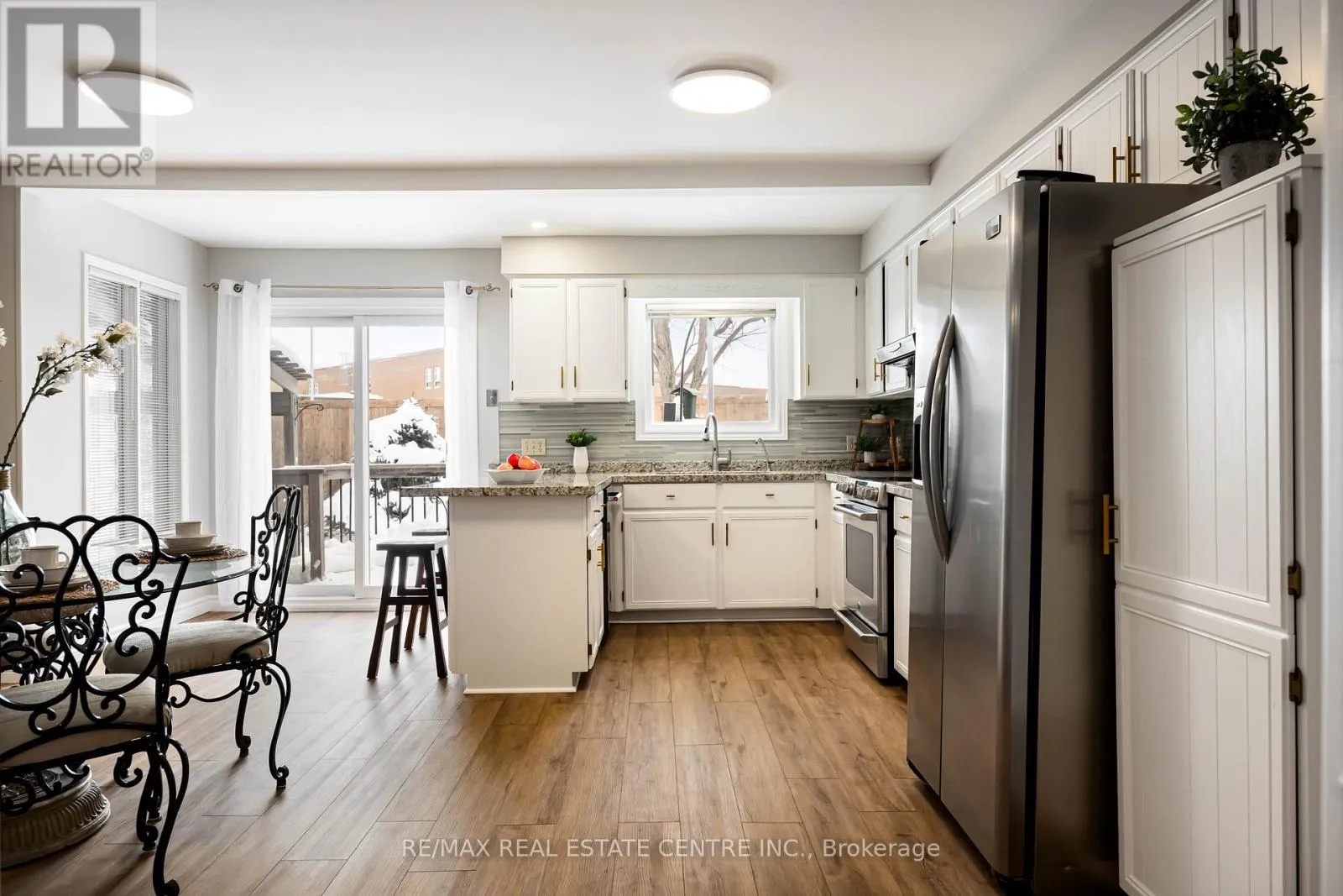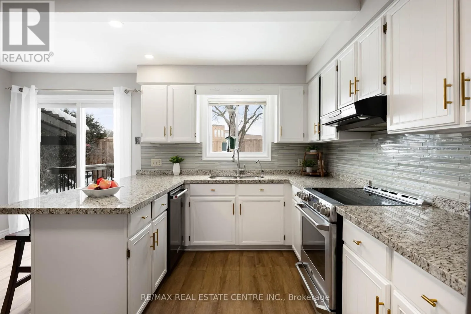 Cross Streets: Passmore & Meadow. ** Directions: Blind Line - College - Meadow - Passmore. Welcome to this elegant detached home located in the desirable Credit Meadows neighbourhood. Set on a quiet, family-friendly street, this well-maintained property offers space, warmth, and functionality for a growing family.The main floor features new flooring (2026) and professional paint throughout the home (2026), a cozy stone fireplace, and an open-concept eat-in kitchen combined with the living room, complete with granite countertops, updated appliances, a large pantry, and walk-out to the patio and private backyard. A separate family room and formal dining room provide additional living and entertaining space. Main-floor laundry offers convenient access to the outdoors.Upstairs, the spacious layout includes four bright bedrooms, highlighted by a generous primary suite with 2 piece ensuite. The finished basement offers a large recreation room, an additional bathroom, and a workshop.Enjoy a mature, landscaped backyard with trees, perennials, garden shed, small pond, and a deck featuring a covered hot tub-perfect for relaxing or entertaining. Walking distance to elementary and high schools, and close to parks and nature trails.A quiet setting. A spacious home. A perfect place to grow. (id:27476)